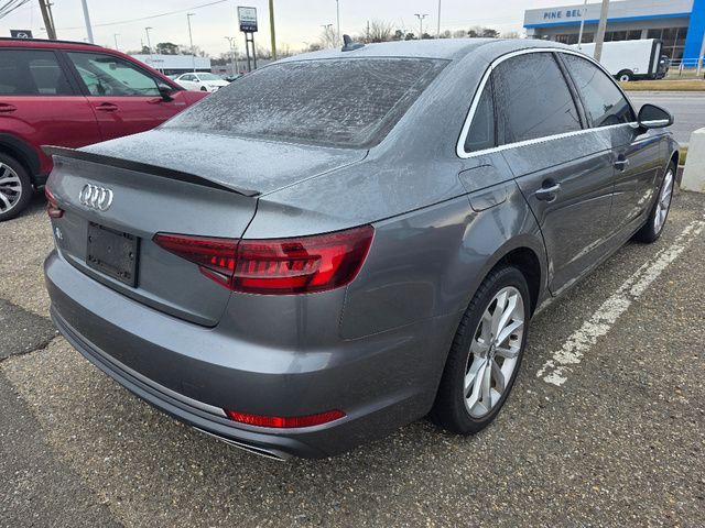 Stock Number: L013052, VIN Number: WAUGMAF48KN013052, Style Name: Premium 40 TFSI 4Dr Sedan, Make: Audi, Model: A4, Model Year: 2019, Type: Sedan, Vehicle Trim: 2.0T Premium, Interior Color: Black, Exterior Color: Monsoon Gray Metallic, Body Type: Sedan, MPG Automatic City: 27, MPG Automatic Highway: 34, Engine Description: 2.0L I4 TFSI DOHC, Fuel Type: Gasoline, Fuel Induction: DI, Valves Per Cylinder: 4, Aspiration: Turbocharged, Transmission: 7-Speed Automatic S Tronic, Wheels Rims: Aluminum Alloy, Wheels Spare Rim Type: Steel, Drive Train Type: Fronttrak, Independent Suspension: Four-Wheel, Stabilizer Bar: Front And Rear, Clock, Compass, External Temp, Low Fuel Level, Tachometer, Front Wipers: Speed Sensitive, Variable Intermittent, Rain Sensing, Rear Defogger, Sunroof: One-Touch Open/Close, Sliding Sunshade, Anti-Trapping, Power Glass, Tilt/Slide, Antenna Type: Mast, Audio System: AM/FM, HD Radio, Voice Operated, Speakers: 9, Drivers: Heated, Drivers Height: Power, Drivers Lumbar: 4-Way Power Lumbar, Drivers Power: 12, Passenger: Heated, Passenger Height: Power, Passenger Power: 8, Seating Capacity: 5, Front Seat Type: Bucket, Upholstery: Leather, Center Armrest, Folding: Split, Cargo Nets, Center Console: Front Console With Armrest And Storage, Illuminated, Cruise Control, Cupholders: Front, Rear, Overhead Console: Front, Power Outlets: 12V Front, Seatback Storage, Steering Adjustment: Tilt And Telescopic, Steering Power: Variable/Speed-Proportional, Steering Wheel Control: Audio, Cruise Control, Phone, Multi-Function, Paddle Shifter, Voice Control, Universal Remote Transmitter: Homelink - Garage Door Opener, Auto Dimming Mirrors, Power Mirrors, Reverse Tilt Mirror, Power Door Locks: Anti-Lockout, Auto-Locking, Windows: Power Windows, Air Conditioning: Automatic Climate Control, Air Filtration, Trunk Lights, Center Console Trim: Wood, Dash Trim: Wood, Door Trim: Wood, Mats: Rear, Front, Reading Lights: Front, Rear, Shift Knob: Leather, Alloy, Steering Wheel Trim: Leather, Vanity Mirrors: Dual Illuminating, Bumpers: Body-Color, NHTSA Passenger Grade: Good, NHTSA Driver Grade: Good, NHTSA Side Impact Front Grade: Excellent, NHTSA Side Impact Back Grade: Excellent, NHTSA Roll Over Resistance Rating: Excellent, ABS: 4-Wheel, Anti Theft System: Vehicle Immobilizer, Brake Assist, Safety Locks, Daytime Running Light: LED, Headlights Auto Delay, Front Headrests: 2, Adjustable, Rear Headrests: 3, Adjustable, Safety Signal Mirrors, Safety Stability Control, Trunk Release, Driver and Passenger Airbag, Side Airbag, Stability Control, Front Head Room: 38.9 Inches, Front Shoulder Room: 55.9 Inches, Front Leg Room: 41.3 Inches, Rear Head Room: 37.4 Inches, Rear Leg Room: 35.7 Inches, Rear Shoulder Room: 54.5 Inches, Luggage Capacity: 13.0 Cu.Ft., Maximum Seating: 5, Length: 186.1 Inches, Width: 79.6 Inches, Height: 56.2 Inches, Wheelbase: 110.0 Inches, Max Gross Vehicle Weight: 4619 Lbs., Curb Weight: 3450 Lbs.