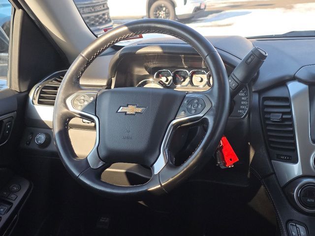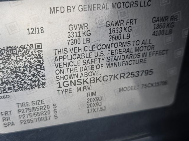 Stock Number: S253795, VIN Number: 1GNSKBKC7KR253795, Style Name: 4X4 LT 4Dr SUV, Make: Chevrolet, Model: Tahoe, Model Year: 2019, Type: SUV, Vehicle Trim: LT, Interior Color: Black, Exterior Color: Shadow Gray Metallic, Body Type: SUV, MPG Automatic City: 15, MPG Automatic Highway: 21, Engine Description: Ecotec3 5.3L V8, Fuel Type: Gasoline, Fuel Induction: DI, Valves Per Cylinder: 2, Aspiration: Naturally Aspirated, 4WD Type: Part Time W/ On Demand Setting, Transmission: 6-Speed Automatic Electronic With Overdrive, Wheels Rims: Polished Aluminum Alloy, Wheels Spare Rim Type: Steel, Drive Train Type: 4WD, Independent Suspension: Front, Stabilizer Bar: Front And Rear, Clock, External Temp, Low Fuel Level, Tachometer, Front Wipers: Variable Intermittent, Rain Sensing, Rear Defogger, Rear Wiper: Intermittent, With Washer, Antenna Type: Diversity, Mast, Audio System: AM/FM, HD Radio, Voice Operated, Touch Screen Display, Premium Brand: Bose, Speakers: 8, Drivers: Heated, Drivers Height: Power, Drivers Lumbar: Power, Drivers Power: 10, Passenger: Heated, Passenger Lumbar: Power, Passenger Power: 6, Seating Capacity: 8, Front Seat Type: Bucket, Upholstery: Leather-Trimmed, Center Armrest, Folding: Split, Folding Thirdrow Seat: Split, Flat, Thirdrow Seat Type: 40-60 Split Bench, Adjustable Pedals: Power, Cargo Nets, Center Console: Front Console With Armrest And Storage, Cruise Control, Cupholders: Front, Rear, Overhead Console: Front, Power Outlets: 12V Cargo Area, 12V Rear, 115V Rear, 12V Front, Seatback Storage, Steering Adjustment: Tilt And Telescopic, Steering Power, Steering Wheel Control: Audio, Cruise Control, Phone, Multi-Function, Voice Control, Universal Remote Transmitter: Garage Door Opener, Auto Dimming Mirrors, Power Mirrors, Reverse Tilt Mirror, Power Door Locks: Anti-Lockout, Auto-Locking, Windows: Power Windows, Satellite Communication: Onstar, Voice Guided Directions, Memory Features Number Of Drivers: 2 Driver, Air Conditioning: Automatic Climate Control, Air Filtration, Trunk Lights, Mats: Rear, Front, Reading Lights: Front, Rear, Steering Wheel Trim: Leather, Vanity Mirrors: Dual Illuminating, Aux Transmission Cooler, Bumpers: Body-Color, Running Boards, NHTSA Passenger Grade: Good, NHTSA Driver Grade: Good, NHTSA Side Impact Front Grade: Excellent, NHTSA Side Impact Back Grade: Excellent, NHTSA Roll Over Resistance Rating: Average, ABS: 4-Wheel, Anti Theft System: Alarm, Vehicle Immobilizer, Brake Assist, Safety Locks, Daytime Running Light: LED, Headlights Auto Delay, Front Headrests: 2, Adjustable, Rear Headrests: 2, Adjustable, Third Row Headrests: 2, Adjustable, Safety Stability Control, Driver And Passenger Airbag, Side Airbag, Stability Control, Trailer Hitch, Front Head Room: 42.8 Inches, Front Hip Room: 60.8 Inches, Front Shoulder Room: 64.8 Inches, Front Leg Room: 45.3 Inches, Rear Head Room: 38.7 Inches, Rear Hip Room: 60.3 Inches, Rear Leg Room: 39.0 Inches, Rear Shoulder Room: 65.1 Inches, Luggage Capacity: 15.3 Cu.Ft., Maximum Seating: 8, Length: 204.0 Inches, Width: 80.5 Inches, Height: 74.4 Inches, Wheelbase: 116.0 Inches, Ground Clearance: 7.9 Inches, Max Gross Vehicle Weight: 7300 Lbs., Curb Weight: 5602 Lbs.