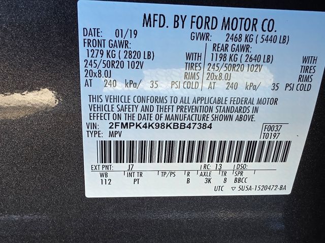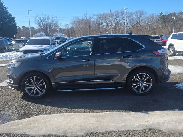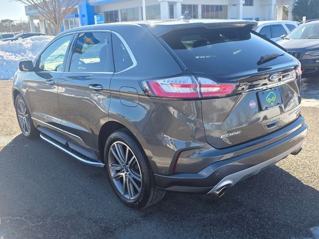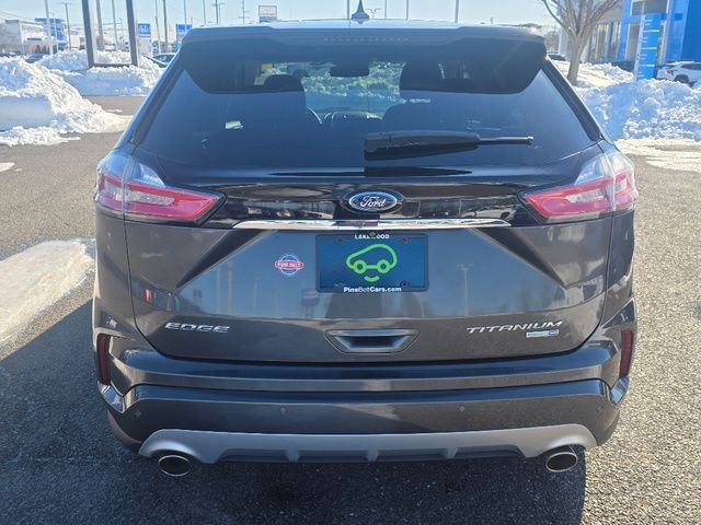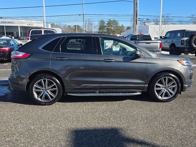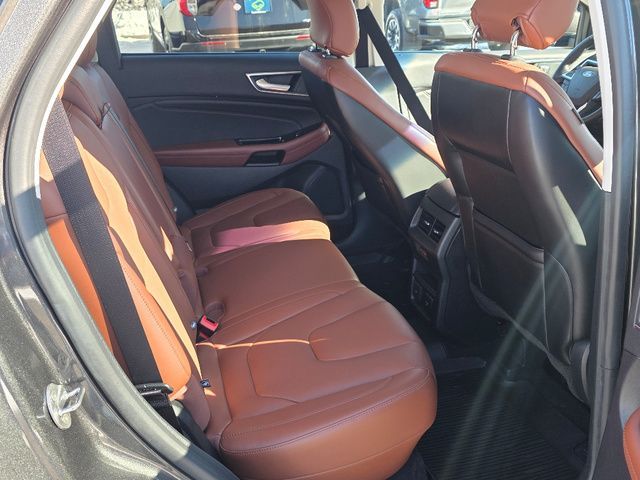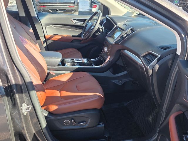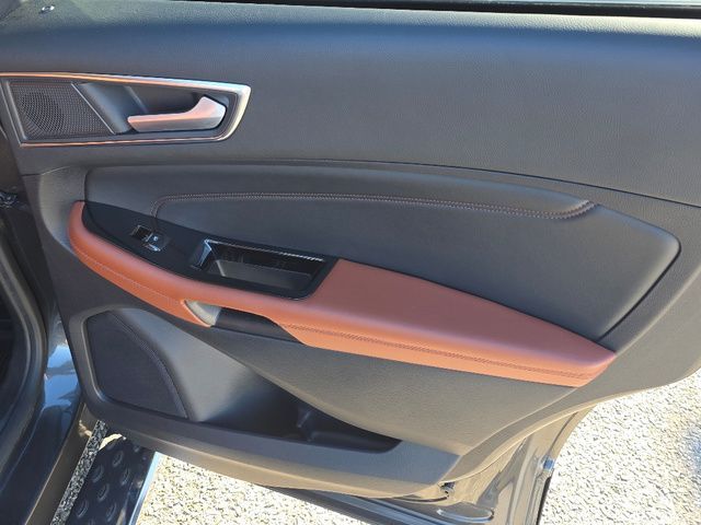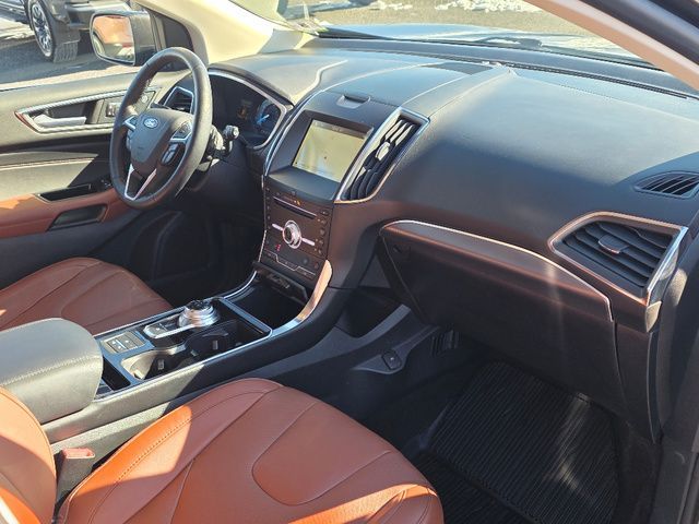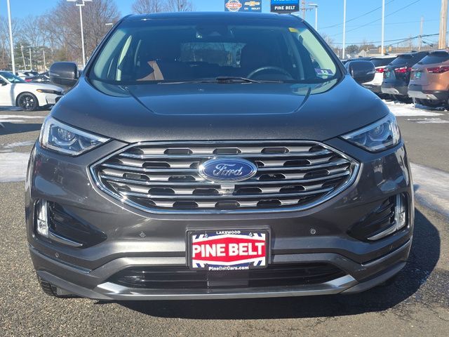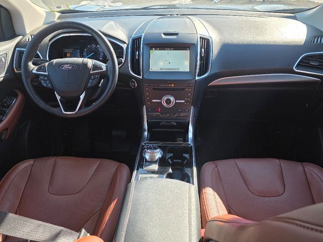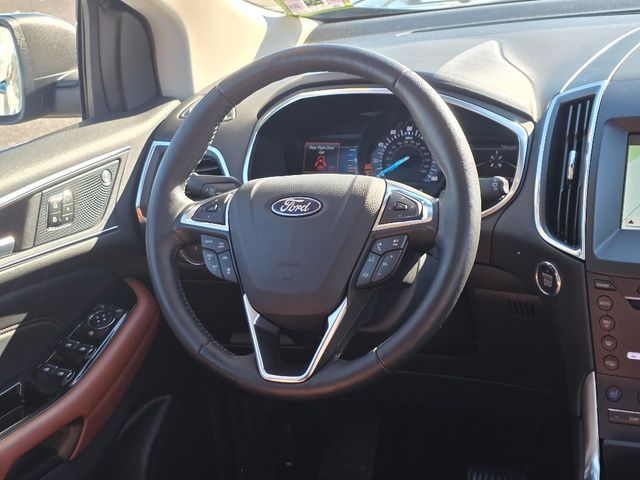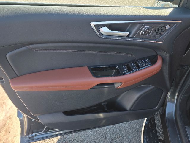 Stock Number: MB47384, VIN Number: 2FMPK4K98KBB47384, Style Name: AWD Titanium 4Dr Crossover, Make: Ford, Model: Edge, Model Year: 2019, Type: SUV, Vehicle Trim: Titanium, Interior Color: Cognac, Exterior Color: Magnetic, Body Type: SUV, MPG Automatic City: 21, MPG Automatic Highway: 28, Engine Description: Ecoboost 2.0L I4 Gtdi DOHC Turbocharged VCT, Fuel Type: Gasoline, Fuel Induction: DI, Valves Per Cylinder: 4, Aspiration: Turbocharged, 4WD Type: On Demand, Transmission: 8-Speed Automatic, Wheels Rims: Painted Aluminum Alloy, Wheels Spare Rim Type: Steel, Drive Train Type: AWD, Independent Suspension: Four-Wheel, Stabilizer Bar: Front And Rear, Clock, Compass, External Temp, Low Fuel Level, Tachometer, Front Wipers: Variable Intermittent, Rain Sensing, Privacy Glass, Rear Defogger, Rear Wiper: Intermittent, With Washer, Antenna Type: Diversity, Mast, Audio System: AM/FM, HD Radio, Voice Operated, Touch Screen Display, Premium Brand: B&O PLAY, Speakers: 11, Drivers: Heated, Drivers Height: Power, Drivers Lumbar: Power, Drivers Power: 10, Passenger: Heated, Passenger Height: Power, Passenger Lumbar: Power, Passenger Power: 10, Seating Capacity: 5, Front Seat Type: Sport Bucket, Upholstery: Leather-Trimmed, Center Armrest, Folding: Split, Flat, One-Touch Fold Flat, Cargo Nets, Center Console: Front Console With Armrest And Storage, Cruise Control, Cupholders: Front, 8, Rear, Overhead Console: Front, Power Outlets: 12V Rear, 12V Front, 115V Front, Seatback Storage, Steering Adjustment: Power Tilt And Telescopic, Steering Power, Steering Wheel Control: Audio, Cruise Control, Phone, Multi-Function, Paddle Shifter, Voice Control, Universal Remote Transmitter: Garage Door Opener, Auto Dimming Mirrors, Power Mirrors, Power Door Locks: Anti-Lockout, Auto-Locking, Windows: Power Windows, Memory Features Number Of Drivers: 3 Driver, Memory Features Steering Wheel, Air Conditioning: Automatic Climate Control, Air Filtration, Trunk Lights, Dash Trim: Aluminum, Mats: Rear, Front, Reading Lights: Front, Rear, Steering Wheel Trim: Leather, Vanity Mirrors: Dual Illuminating, Bumpers: Body-Color, NHTSA Passenger Grade: Excellent, NHTSA Driver Grade: Excellent, NHTSA Side Impact Front Grade: Excellent, NHTSA Side Impact Back Grade: Excellent, NHTSA Roll Over Resistance Rating: Good, ABS: 4-Wheel, Anti Theft System: Alarm, Vehicle Immobilizer, Perimeter Alarm, Brake Assist, Safety Locks, Daytime Running Light: LED, Fog Lights: LED, Headlights Auto Delay, Front Headrests: 2, Adjustable, Rear Headrests: 3, Adjustable, Safety Signal Mirrors, Safety Stability Control, Driver And Passenger Airbag, Side Airbag, Stability Control, Front Head Room: 40.2 Inches, Front Hip Room: 55.9 Inches, Front Shoulder Room: 60.3 Inches, Front Leg Room: 42.6 Inches, Rear Head Room: 40.3 Inches, Rear Hip Room: 57.5 Inches, Rear Leg Room: 40.6 Inches, Rear Shoulder Room: 60.5 Inches, Luggage Capacity: 39.2 Cu.Ft., Maximum Seating: 5, Length: 188.8 Inches, Width: 85.8 Inches, Height: 68.3 Inches, Wheelbase: 112.2 Inches, Ground Clearance: 8.0 Inches, Max Gross Vehicle Weight: 5440 Lbs., Curb Weight: 4216 Lbs.