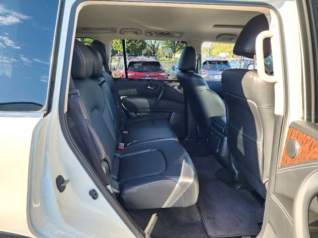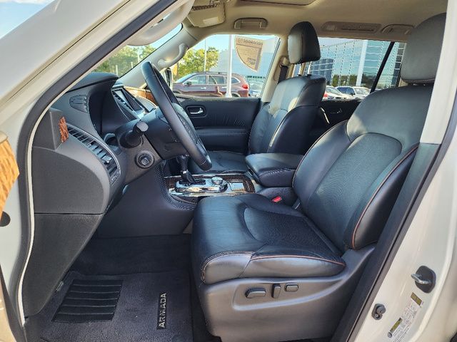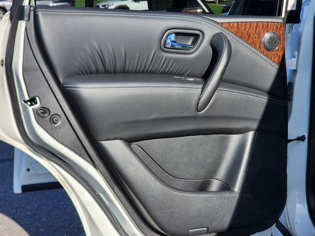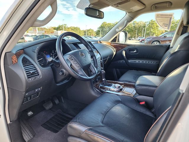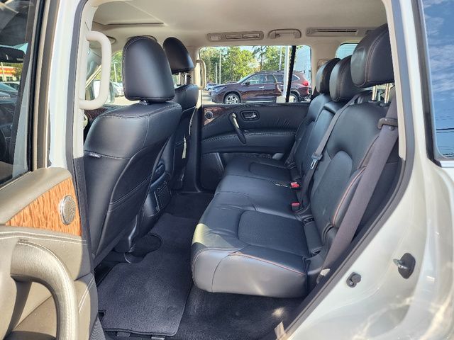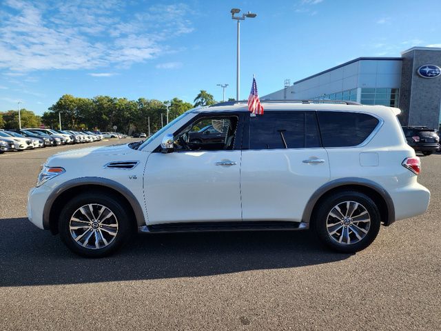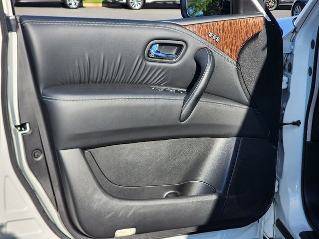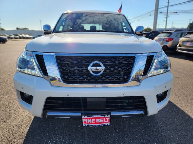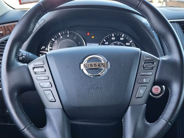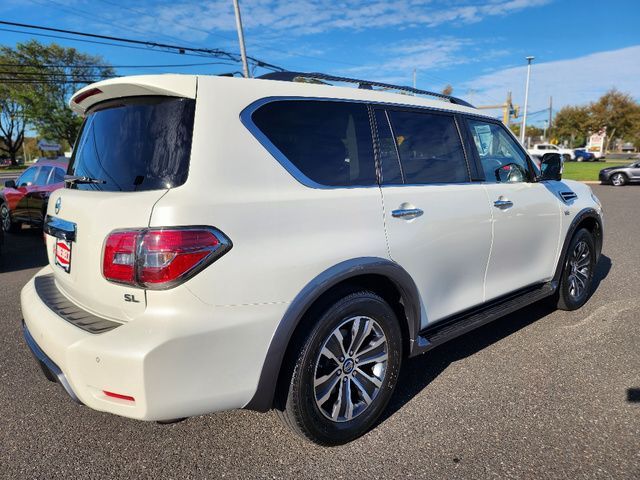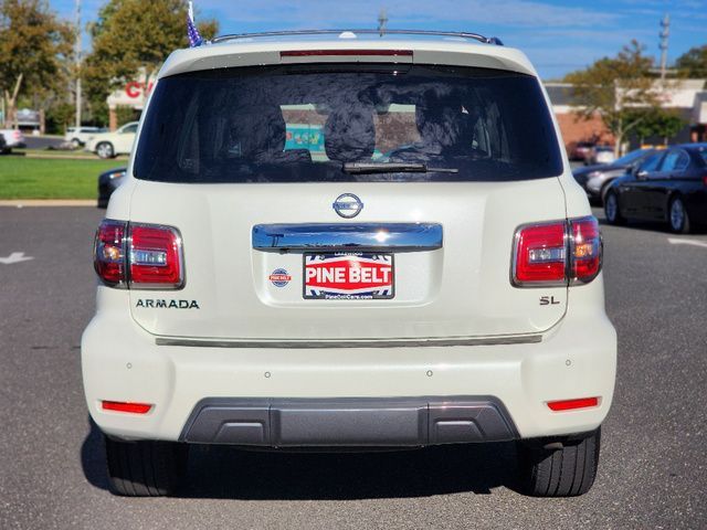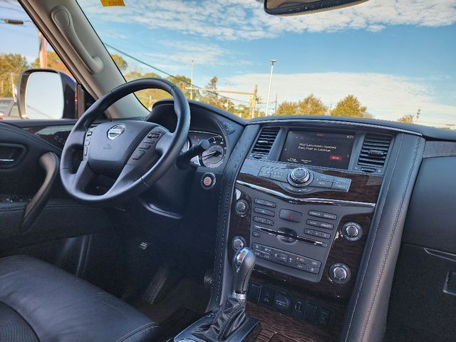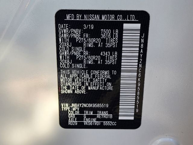 Stock Number: S585519T, VIN Number: JN8AY2NC6K9585519, Style Name: 4X4 SL 4Dr SUV, Make: Nissan, Model: Armada, Model Year: 2019, Type: SUV, Vehicle Trim: SL, Interior Color: Charcoal, Exterior Color: Pearl White Tricoat, Body Type: SUV, MPG Automatic City: 13, MPG Automatic Highway: 18, Engine Description: 5.6L V8, Fuel Type: Gasoline, Fuel Induction: DI, Valves Per Cylinder: 4, Aspiration: Naturally Aspirated, 4WD Type: Part Time W/ On Demand Setting, Transmission: 7-Speed Automatic, Wheels Rims: Aluminum Alloy With Painted Accents, Wheels Spare Rim Type: Steel, Drive Train Type: 4WD, Independent Suspension: Four-Wheel, Leveling Suspension, Stabilizer Bar: Front And Rear, Clock, Compass, External Temp, Low Fuel Level, Tachometer, Front Wipers: Speed Sensitive, Variable Intermittent, Rain Sensing, Privacy Glass, Rear Defogger, Rear Wiper: Intermittent, With Washer, Antenna Type: Diversity, Element, Audio System: AM/FM, HD Radio, Voice Operated, Touch Screen Display, Premium Brand: Bose, Speakers: 12, Drivers: Heated, Drivers Height: Power, Drivers Lumbar: Power, Drivers Power: 10, Passenger: Heated, Passenger Height: Power, Passenger Lumbar: Power, Passenger Power: 8, Seating Capacity: 8, Front Seat Type: Bucket, Upholstery: Leather-Trimmed, Center Armrest, Folding: Split, Flat, Folding Thirdrow Seat: Split, Power, Fold Flat Into Floor, Thirdrow Seat Type: 40-60 Split Bench, Center Console: Front Console With Armrest And Storage, Locking, Cupholders: Front, Third Row, Rear, Overhead Console: Front, Power Outlets: 12V Cargo Area, 12V Rear, 12V Front, Seatback Storage, Steering Adjustment: Power Tilt And Telescopic, Steering Power: Variable/Speed-Proportional, Steering Wheel Control: Audio, Cruise Control, Phone, Voice Control, Universal Remote Transmitter: Homelink - Garage Door Opener, Auto Dimming Mirrors, Power Mirrors, Power Retractable Mirrors, Power Door Locks: Anti-Lockout, Auto-Locking, Windows: Power Windows, Navigation System: DVD, Touch Screen Display, Voice Operated, Memory Features Number Of Drivers: 2 Driver, Memory Features Steering Wheel, Air Conditioning: Automatic Climate Control, Air Filtration, Trunk Lights, Center Console Trim: Simulated Wood, Dash Trim: Simulated Wood, Door Trim: Leather, Reading Lights: Front, Rear, Third Row, Shift Knob: Leather, Steering Wheel Trim: Leather, Vanity Mirrors: Dual Illuminating, Bumpers: Body-Color, Running Boards, NHTSA Passenger Grade: Average, NHTSA Side Impact Front Grade: Excellent, NHTSA Side Impact Back Grade: Excellent, NHTSA Roll Over Resistance Rating: Average, ABS: 4-Wheel, Anti Theft System: Alarm, Vehicle Immobilizer, Brake Assist, Safety Locks, Daytime Running Light: LED, Fog Lights, Headlights Auto Delay, Front Headrests: 2, Adjustable, Rear Headrests: 3, Adjustable, Third Row Headrests: 2, Adjustable, Safety Signal Mirrors, Safety Stability Control, Driver And Passenger Airbag, Side Airbag, Stability Control, Trailer Hitch: Receiver Hitch, Front Head Room: 40.9 Inches, Front Hip Room: 59.2 Inches, Front Shoulder Room: 63.8 Inches, Front Leg Room: 41.9 Inches, Rear Head Room: 40.0 Inches, Rear Hip Room: 58.4 Inches, Rear Leg Room: 41.0 Inches, Rear Shoulder Room: 63.4 Inches, Luggage Capacity: 16.5 Cu.Ft., Maximum Seating: 8, Length: 208.9 Inches, Width: 79.9 Inches, Height: 75.8 Inches, Wheelbase: 121.1 Inches, Ground Clearance: 9.2 Inches, Max Gross Vehicle Weight: 7500 Lbs., Curb Weight: 5931 Lbs.