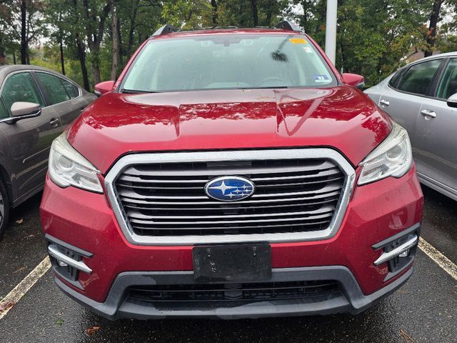 Stock Number: S450217T, VIN Number: 4S4WMALD4K3450217, Style Name: AWD Limited 8-Passenger 4Dr SUV, Make: Subaru, Model: Ascent, Model Year: 2019, Type: SUV, Vehicle Trim: Limited, Interior Color: Slate Black, Exterior Color: Crimson Red Pearl, Body Type: SUV, MPG Automatic City: 20, MPG Automatic Highway: 26, Engine Description: 2.4L DOHC, Fuel Type: Gasoline, Fuel Induction: DI, Valves Per Cylinder: 4, Aspiration: Turbocharged, 4WD Type: Full Time, Transmission: Lineartronic CVT, Wheels Rims: Aluminum Alloy, Wheels Spare Rim Type: Steel, Drive Train Type: AWD, Independent Suspension: Four-Wheel, Stabilizer Bar: Front And Rear, Clock, Compass, External Temp, Heads Up Display, Low Fuel Level, Tachometer, Front Wipers: Variable Intermittent, Privacy Glass, Rear Defogger, Rear Wiper: Intermittent, Auto-On In Reverse, With Washer, Side Window Sunshade, Antenna Type: Diversity, Mast, Audio System: AM/FM, HD Radio, Voice Operated, Touch Screen Display, Speakers: 6, Drivers: Heated, Drivers Height: Power, Drivers Lumbar: Power, Drivers Power: 10, Passenger: Heated, Passenger Power: 4, Seating Capacity: 8, Front Seat Type: Bucket, Upholstery: Leather-Trimmed, Center Armrest, Folding: Split, Flat, Heated, Folding Thirdrow Seat: Split, Flat, Thirdrow Seat Type: 40-60 Split Bench, Center Console: Front Console With Armrest And Storage, Illuminated, Organizer Tray, Cupholders: Front, Third Row, Illuminated, Rear, Overhead Console: Front, Power Outlets: 12V Cargo Area, Two 12V Front, Seatback Storage, Steering Adjustment: Tilt And Telescopic, Steering Power: Variable/Speed-Proportional, Steering Wheel Control: Audio, Cruise Control, Phone, Multi-Function, Paddle Shifter, Voice Control, Universal Remote Transmitter: Homelink - Garage Door Opener, Auto Dimming Mirrors, Power Mirrors, Power Door Locks: Anti-Lockout, Auto-Locking, Windows: Power Windows, Satellite Communication: Voice Guided Directions, Memory Features Number Of Drivers: 2 Driver, Air Conditioning: Automatic Climate Control, Air Filtration, Trunk Lights, Center Console Trim: Leatherette, Dash Trim: Leatherette, Door Trim: Leatherette, Mats: Rear, Front, Reading Lights: Front, Rear, Third Row, Shift Knob: Leather, Steering Wheel Trim: Leather, Vanity Mirrors: Dual Illuminating, Bumpers: Body-Color, NHTSA Passenger Grade: Excellent, NHTSA Driver Grade: Excellent, NHTSA Side Impact Front Grade: Excellent, NHTSA Side Impact Back Grade: Excellent, NHTSA Roll Over Resistance Rating: Good, ABS: 4-Wheel, Anti Theft System: Alarm, Vehicle Immobilizer, Brake Assist, Safety Locks, Cornering Lights, Daytime Running Light, Fog Lights: LED, Headlights Auto Delay, Front Headrests: 2, Adjustable, Rear Headrests: 3, Adjustable, Third Row Headrests: 3, Adjustable, Safety Signal Mirrors, Safety Stability Control, Driver And Passenger Airbag, Side Airbag, Stability Control, Front Head Room: 41.3 Inches, Front Hip Room: 57.7 Inches, Front Shoulder Room: 61.1 Inches, Front Leg Room: 42.2 Inches, Rear Head Room: 40.0 Inches, Rear Hip Room: 57.5 Inches, Rear Leg Room: 38.5 Inches, Rear Shoulder Room: 60.3 Inches, Luggage Capacity: 17.8 Cu.Ft., Maximum Seating: 8, Length: 196.8 Inches, Width: 86.1 Inches, Height: 71.6 Inches, Wheelbase: 113.8 Inches, Ground Clearance: 8.7 Inches, Max Gross Vehicle Weight: 6000 Lbs., Curb Weight: 4515 Lbs.