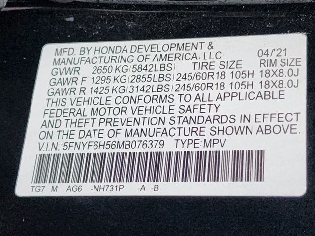 Stock Number: L076379, VIN Number: 5FNYF6H56MB076379, Style Name: AWD EX-L 4Dr SUV, Make: Honda, Model: Pilot, Model Year: 2021, Type: SUV, Vehicle Trim: EX-L, Body Type: SUV, Exterior Color: Crystal Black Pearl, Interior Color: Beige, MPG Automatic City: 19, MPG Automatic Highway: 26, Engine Description: 3.5L V6, Fuel Type: Gasoline, Fuel Induction: DI, Valves Per Cylinder: 4, Aspiration: Naturally Aspirated, 4WD Type: On Demand, Transmission: 9-Speed Automatic, Wheels Rims: Polished Aluminum Alloy, Wheels Spare Rim Type: Steel, Drive Train Type: AWD, Independent Suspension: Four-Wheel, Stabilizer Bar: Front And Rear, Clock, External Temp, Low Fuel Level, Tachometer, Front Wipers: Speed Sensitive, Variable Intermittent, Privacy Glass, Rear Defogger, Rear Wiper: Intermittent, Auto-On In Reverse, With Washer, Side Window Sunshade, Sunroof: One-Touch Open/Close, Sliding Sunshade, Anti-Trapping, Power Glass, Tilt/Slide, Antenna Type: Diversity, Mast, Audio System: AM/FM, HD Radio, Voice Operated, Touch Screen Display, Speakers: 6, Drivers: Heated, Drivers Height: Power, Drivers Lumbar: Power, Drivers Power: 10, Passenger: Heated, Passenger Power: 4, Seating Capacity: 8, Front Seat Type: Bucket, Upholstery: Leather-Trimmed, Center Armrest, Folding: Split, Flat, Folding Thirdrow Seat: Split, Flat, Thirdrow Seat Type: 40-60 Split Bench, Center Console: Front Console With Storage, Cupholders: Front, Third Row, Rear, 15, Overhead Console: Front, Power Outlets: 12V Cargo Area, Two 12V Front, USB Front, USB Rear, Seatback Storage, Steering Adjustment: Tilt And Telescopic, Steering Power: Variable/Speed-Proportional, Steering Wheel Control: Audio, Cruise Control, Phone, Multi-Function, Paddle Shifter, Voice Control, Universal Remote Transmitter: Homelink - Garage Door Opener, Auto Dimming Mirrors, Power Mirrors, Reverse Tilt Mirror, Power Door Locks: Anti-Lockout, Auto-Locking, Windows: Power Windows, Memory Features Number Of Drivers: 2 Driver, Air Conditioning: Automatic Climate Control, Air Filtration, Trunk Lights, Mats: Rear, Front, Reading Lights: Front, Rear, Third Row, Steering Wheel Trim: Leather, Vanity Mirrors: Dual Illuminating, Bumpers: Body-Color, Chrome Accents, NHTSA Passenger Grade: Good, NHTSA Driver Grade: Excellent, NHTSA Side Impact Front Grade: Excellent, NHTSA Side Impact Back Grade: Excellent, NHTSA Roll Over Resistance Rating: Good, ABS: 4-Wheel, Anti Theft System: Alarm, Vehicle Immobilizer, Brake Assist, Safety Locks, Daytime Running Light: LED, Fog Lights: LED, Headlights Auto Delay, Front Headrests: 2, Adjustable, Rear Headrests: 3, Adjustable, Third Row Headrests: 3, Adjustable, Safety Signal Mirrors, Safety Stability Control, Driver And Passenger Airbag, Side Airbag, Stability Control, Front Head Room: 39.5 Inches, Front Hip Room: 59.1 Inches, Front Shoulder Room: 62.0 Inches, Front Leg Room: 40.9 Inches, Rear Head Room: 39.9 Inches, Rear Hip Room: 57.3 Inches, Rear Leg Room: 38.4 Inches, Rear Shoulder Room: 62.0 Inches, Luggage Capacity: 16.5 Cu.Ft., Maximum Seating: 8, Length: 196.5 Inches, Width: 78.6 Inches, Height: 70.6 Inches, Wheelbase: 111.0 Inches, Ground Clearance: 7.3 Inches, Max Gross Vehicle Weight: 5842 Lbs., Curb Weight: 4228 Lbs.