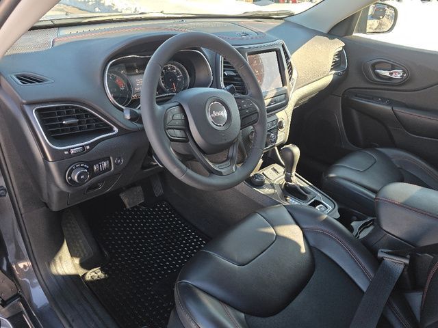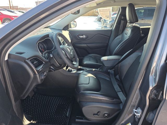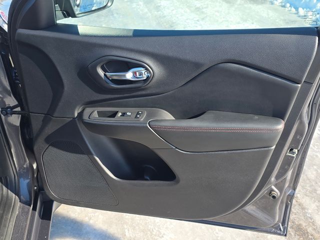 Stock Number: C230728, VIN Number: 1C4PJMBX9MD230728, Style Name: 4X4 Trailhawk 4Dr SUV, Make: Jeep, Model: Cherokee, Model Year: 2021, Type: SUV, Vehicle Trim: Trailhawk, Interior Color: Black, Exterior Color: Granite Crystal Metallic Clear Coat, Body Type: SUV, MPG Automatic City: 18, MPG Automatic Highway: 24, Engine Description: 3.2L V6, Fuel Type: Gasoline, Fuel Induction: SMPI, Valves Per Cylinder: 4, Aspiration: Naturally Aspirated, 4WD Type: On Demand, Transmission: 9-Speed Automatic, Wheels Rims: Painted Aluminum Alloy, Wheels Spare Rim Type: Steel, Drive Train Type: 4WD, Independent Suspension: Four-Wheel, Stabilizer Bar: Front And Rear, Clock, Compass, External Temp, Low Fuel Level, Tachometer, Front Wipers: Variable Intermittent, Rain Sensing, Privacy Glass, Rear Defogger, Rear Wiper: Intermittent, With Washer, Antenna Type: Diversity, Mast, Audio System: AM/FM, Voice Operated, Touch Screen Display, Speakers: 6, Drivers: Heated, Drivers Height: Power, Drivers Lumbar: 4-Way Power Lumbar, Drivers Power: 8, Passenger: Heated, Passenger Height: Manual, Seating Capacity: 5, Front Seat Type: Bucket, Upholstery: Vinyl, Center Armrest, Folding: Split, Center Console: Front Console With Armrest And Storage, Cruise Control, Cupholders: Front, Illuminated, Rear, Overhead Console: Front, Power Outlets: 12V Cargo Area, 115V Rear, Two 12V Front, USB Rear, Seatback Storage, Steering Adjustment: Tilt And Telescopic, Steering Power: Variable/Speed-Proportional, Steering Wheel Control: Audio, Cruise Control, Phone, Multi-Function, Voice Control, Power Mirrors, Power Door Locks: Auto-Locking, Windows: Power Windows, Air Conditioning: Automatic Climate Control, Air Filtration, Trunk Lights, Center Console Trim: Simulated Alloy, Door Trim: Vinyl, Mats: Rear, Front, Reading Lights: Front, Rear, Shift Knob: Leather, Steering Wheel Trim: Leather, Vanity Mirrors: Dual Illuminating, Aux Transmission Cooler, Bumpers: Black, NHTSA Passenger Grade: Excellent, NHTSA Driver Grade: Good, NHTSA Side Impact Front Grade: Excellent, NHTSA Side Impact Back Grade: Excellent, NHTSA Roll Over Resistance Rating: Good, ABS: 4-Wheel, Anti Theft System: Vehicle Immobilizer, Brake Assist, Safety Locks, Daytime Running Light: LED, Fog Lights: LED, Headlights Auto Delay, Front Headrests: 2, Adjustable, Rear Headrests: 3, Adjustable, Safety Signal Mirrors, Safety Stability Control, Driver and Passenger Airbag, Side Airbag, Stability Control, Front Head Room: 39.4 Inches, Front Hip Room: 53.8 Inches, Front Shoulder Room: 57.6 Inches, Front Leg Room: 41.1 Inches, Rear Head Room: 38.5 Inches, Rear Hip Room: 49.9 Inches, Rear Leg Room: 40.3 Inches, Rear Shoulder Room: 55.1 Inches, Luggage Capacity: 25.8 Cu.Ft., Maximum Seating: 5, Length: 182.9 Inches, Width: 74.9 Inches, Height: 67.8 Inches, Wheelbase: 107.1 Inches, Ground Clearance: 8.7 Inches, Max Gross Vehicle Weight: 5500 Lbs., Curb Weight: 4250 Lbs.