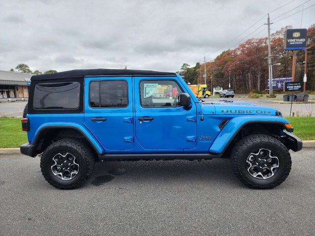 Stock Number: IC765757P, VIN Number: 1C4JJXR65MW765757, Style Name: 4X4 Rubicon 4Xe 4Dr SUV, Make: Jeep, Model: Wrangler Unlimited, Model Year: 2021, Type: SUV, Vehicle Trim: Unlimited Rubicon 4Xe, Interior Color: Black, Exterior Color: Blue, Body Type: SUV, MPG Automatic City: 52, MPG Automatic Highway: 45, Engine Description: 2.0L I4 DOHC, Fuel Type: Other, Fuel Induction: DI, Valves Per Cylinder: 4, Aspiration: Turbocharged, 4WD Type: Part Time W/ On Demand Setting, Transmission: 8-Speed Automatic, Wheels Rims: Aluminum Alloy With Painted Accents, Wheels Spare Rim Type: Aluminum Alloy, Drive Train Type: 4WD, Stabilizer Bar: Front And Rear, Clock, Compass, External Temp, Low Fuel Level, Tachometer, Front Wipers: Variable Intermittent, Privacy Glass, Removable Roof: Soft Top, Antenna Type: Diversity, Mast, Audio System: AM/FM, HD Radio, Voice Operated, Touch Screen Display, Premium Brand: Alpine, Speakers: 8, Drivers Height: Manual, Drivers Lumbar: Manual, Seating Capacity: 5, Front Seat Type: Bucket, Upholstery: Premium Cloth, Folding: Split, Center Console: Front Console With Armrest And Storage, Illuminated, Locking, Cruise Control, Cupholders: Front, Illuminated, Rear, Power Outlets: 12V Cargo Area, 12V Front, 115V Front, USB Front, Seatback Storage, Steering Adjustment: Tilt And Telescopic, Steering Power: Variable/Speed-Proportional, Steering Wheel Control: Audio, Cruise Control, Phone, Multi-Function, Voice Control, Universal Remote Transmitter: Homelink - Garage Door Opener, Auto Dimming Mirrors, Power Mirrors, Power Door Locks: Anti-Lockout, Auto-Locking, Windows: Power Windows, Navigation System: Hard Drive, Touch Screen Display, Voice Operated, Air Conditioning: Automatic Climate Control, Air Filtration, Trunk Lights, Mats: Rear, Front, Reading Lights: Front, Rear, Shift Knob: Urethane, Steering Wheel Trim: Leather, Vanity Mirrors: Dual Illuminating, Bumpers: Black, NHTSA Passenger Grade: Good, NHTSA Driver Grade: Good, NHTSA Roll Over Resistance Rating: Average, ABS: 4-Wheel, Anti Theft System: Alarm, Vehicle Immobilizer, Brake Assist, Safety Locks, Daytime Running Light: LED, Fog Lights: LED, Headlights Auto Delay, Front Headrests: 2, Adjustable, Rear Headrests: 3, Foldable, Safety Stability Control, Driver and Passenger Airbag, Side Airbag, Stability Control, Front Head Room: 42.8 Inches, Front Hip Room: 53.9 Inches, Front Shoulder Room: 55.8 Inches, Front Leg Room: 40.8 Inches, Rear Head Room: 42.6 Inches, Rear Hip Room: 55.9 Inches, Rear Leg Room: 38.2 Inches, Rear Shoulder Room: 55.8 Inches, Luggage Capacity: 27.7 Cu.Ft., Maximum Seating: 5, Length: 188.4 Inches, Width: 73.8 Inches, Height: 73.6 Inches, Wheelbase: 118.4 Inches, Ground Clearance: 10.8 Inches, Max Gross Vehicle Weight: 6400 Lbs., Curb Weight: 5222 Lbs.