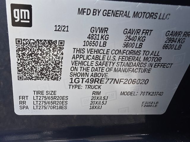 Stock Number: C206020, VIN Number: 1GT49RE77NF206020, Style Name: 4X4 Denali 4Dr Crew Cab SB, Make: GMC, Model: Sierra 2500HD, Model Year: 2022, Type: Pickup, Vehicle Trim: Denali, Interior Color: Dark Walnut/Dark Ash Grey, Exterior Color: Pacific Blue Metallic, Bed Length: 82.2 Inches, Body Type: Pickup, Engine Description: 6.6L V8, Fuel Type: Gasoline, Fuel Induction: DI, Valves Per Cylinder: 2, Aspiration: Naturally Aspirated, 4WD Type: Part Time W/ On Demand Setting, Transmission: 6-Speed Automatic, Wheels Rims: Polished Aluminum Alloy, Wheels Spare Rim Type: Steel, Drive Train Type: 4WD, Independent Suspension: Front, Stabilizer Bar: Front, Clock, Compass, External Temp, Low Fuel Level, Tachometer, Front Wipers: Variable Intermittent, Rear Defogger, Antenna Type: Diversity, Mast, Audio System: AM/FM, Voice Operated, Touch Screen Display, Premium Brand: Bose, Speakers: 6, Drivers: Heated, Drivers Height: Power, Drivers Lumbar: Power, Drivers Power: 10, Drivers Ventilated, Passenger: Heated, Passenger Height: Power, Passenger Lumbar: Power, Passenger Power: 10, Passenger Ventilated, Seating Capacity: 5, Front Seat Type: Bucket, Upholstery: Leather-Trimmed, Center Armrest, Folding: Folds Up, Center Console: Front Console With Armrest And Storage, Cruise Control, Cupholders: Front, Rear, Overhead Console: Front, Power Outlets: 115V Cargo Area, 12V Rear, 12V Front, 115V Front, USB Front, USB Rear, Seatback Storage, Steering Adjustment: Tilt And Telescopic, Steering Power: Variable/Speed-Proportional, Steering Wheel Control: Audio, Cruise Control, Phone, Multi-Function, Voice Control, Universal Remote Transmitter: Homelink - Garage Door Opener, Auto Dimming Mirrors, Power Mirrors, Power Retractable Mirrors, Reverse Tilt Mirror, Power Door Locks: Anti-Lockout, Auto-Locking, Windows: Power Windows, Navigation System: Touch Screen Display, Voice Operated, Memory Card, Satellite Communication: Onstar, Voice Guided Directions, Memory Features Number Of Drivers: 2 Driver, Air Conditioning: Automatic Climate Control, Air Filtration, Center Console Trim: Leather, Simulated Wood, Door Trim: Simulated Wood, Leather, Mats: Rear, Front, Reading Lights: Front, Rear, Steering Wheel Trim: Leather, Vanity Mirrors: Dual Illuminating, Aux Transmission Cooler, Bumpers: Body-Color, Running Boards, ABS: 4-Wheel, Anti Theft System: Alarm, Vehicle Immobilizer, Brake Assist, Safety Locks, Daytime Running Light: LED, Fog Lights: LED, Headlights Auto Delay, Front Headrests: 2, Adjustable, Rear Headrests: 3, Adjustable, Safety Signal Mirrors, Safety Stability Control, Driver And Passenger Airbag, Side Airbag, Stability Control, Trailer Hitch, Front Head Room: 43.0 Inches, Front Hip Room: 61.2 Inches, Front Shoulder Room: 66.0 Inches, Front Leg Room: 44.5 Inches, Rear Head Room: 40.1 Inches, Rear Hip Room: 60.2 Inches, Rear Leg Room: 43.4 Inches, Rear Shoulder Room: 65.3 Inches, Maximum Seating: 5, Length: 250.1 Inches, Width: 81.9 Inches, Height: 79.8 Inches, Wheelbase: 158.9 Inches, Ground Clearance: 10.1 Inches, Max Gross Vehicle Weight: 10650 Lbs., Curb Weight: 6852 Lbs.