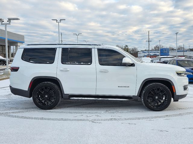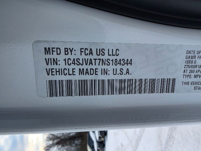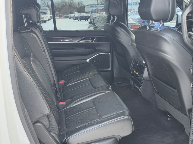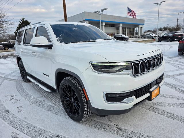 Stock Number: C184344, VIN Number: 1C4SJVAT7NS184344, Style Name: 4X4 Series I 4Dr SUV, Make: Jeep, Model: Wagoneer, Model Year: 2022, Type: SUV, Vehicle Trim: Series I, Interior Color: Global Black, Exterior Color: White, Body Type: SUV, MPG Automatic City: 15, MPG Automatic Highway: 20, Engine Description: 5.7L V8, Fuel Type: Other, Fuel Induction: SMPI, Valves Per Cylinder: 2, Aspiration: Naturally Aspirated, 4WD Type: Full Time, Transmission: 8-Speed Automatic, Wheels Rims: Aluminum Alloy With Painted Accents, Wheels Spare Rim Type: Aluminum Alloy, Drive Train Type: 4WD, Independent Suspension: Four-Wheel, Stabilizer Bar: Front And Rear, Clock, Compass, External Temp, Low Fuel Level, Tachometer, Front Wipers: Speed Sensitive, Variable Intermittent, Privacy Glass, Rear Defogger, Rear Wiper: Intermittent, With Washer, Antenna Type: Diversity, Mast, Audio System: AM/FM, HD Radio, Voice Operated, Touch Screen Display, Premium Brand: Alpine, Speakers: 8, Drivers: Heated, Drivers Height: Power, Drivers Lumbar: 4-Way Power Lumbar, Drivers Power: 8, Drivers Ventilated, Passenger: Heated, Passenger Height: Power, Passenger Lumbar: 4-Way Power Lumbar, Passenger Power: 8, Passenger Ventilated, Seating Capacity: 8, Front Seat Type: Bucket, Upholstery: Leather-Trimmed, Folding: Split, Flat, Folding Thirdrow Seat: Split, Flat, Thirdrow Seat Type: 40-60 Split Bench, Adjustable Pedals: Power, Cargo Nets, Center Console: Front Console With Armrest And Storage, Cruise Control, Cupholders: Front, Third Row, Rear, Overhead Console: Front, Power Outlets: 12V Cargo Area, 12V Rear, 115V Rear, 12V Front, USB Front, USB-C Front, USB Rear, USB-C Rear, USB Third Row, USB-C Third Row, Seatback Storage, Steering Adjustment: Power Tilt And Telescopic, Steering Power: Variable/Speed-Proportional, Steering Wheel Control: Audio, Cruise Control, Phone, Multi-Function, Voice Control, Universal Remote Transmitter: Garage Door Opener, Auto Dimming Mirrors, Power Mirrors, Reverse Tilt Mirror, Power Door Locks: Auto-Locking, Windows: Power Windows, Navigation System: Hard Drive, Touch Screen Display, Voice Operated, Memory Features Number Of Drivers: 2 Driver, Air Conditioning: Automatic Climate Control, Air Filtration, Trunk Lights, Center Console Trim: Simulated Wood, Dash Trim: Simulated Wood, Door Trim: Simulated Wood, Leather, Mats: Third Row, Rear, Front, Reading Lights: Front, Rear, Steering Wheel Trim: Leather, Vanity Mirrors: Dual Illuminating, Bumpers: Body-Color, Chrome Accents, Running Boards, ABS: 4-Wheel, Anti Theft System: Alarm, Vehicle Immobilizer, Brake Assist, Safety Locks, Daytime Running Light: LED, Fog Lights: Cornering, LED, Headlights Auto Delay, Front Headrests: 2, Adjustable, Rear Headrests: 3, Adjustable, Third Row Headrests: 3, Adjustable, Safety Signal Mirrors, Safety Stability Control, Driver And Passenger Airbag, Side Airbag, Stability Control, Trailer Hitch: Class IV, Front Head Room: 41.3 Inches, Front Hip Room: 63.4 Inches, Front Shoulder Room: 66.1 Inches, Front Leg Room: 40.9 Inches, Rear Head Room: 40.0 Inches, Rear Hip Room: 63.0 Inches, Rear Leg Room: 42.7 Inches, Rear Shoulder Room: 65.2 Inches, Luggage Capacity: 27.4 Cu.Ft., Maximum Seating: 8, Length: 214.7 Inches, Width: 94.0 Inches, Height: 75.6 Inches, Wheelbase: 123.0 Inches, Ground Clearance: 8.3 Inches, Max Gross Vehicle Weight: 7650 Lbs., Curb Weight: 6190 Lbs.