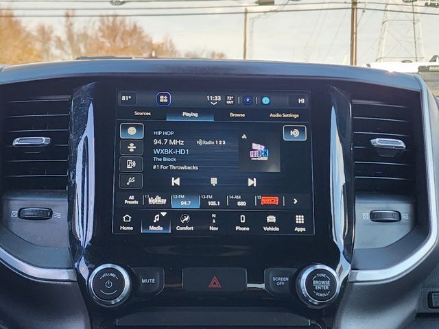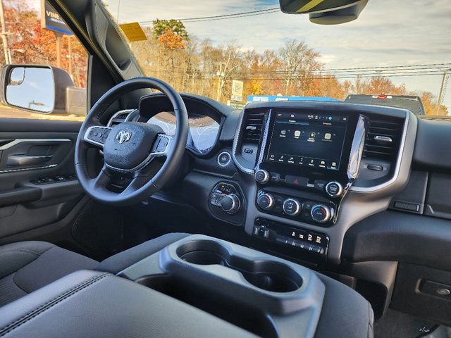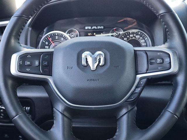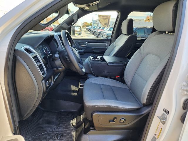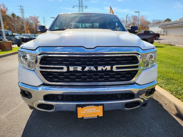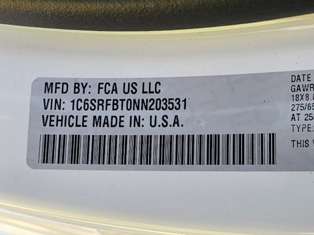 Stock Number: C203531L, VIN Number: 1C6SRFBT0NN203531, Make: Ram, Model: 1500, Model Year: 2022, Type: Pickup, Vehicle Trim: Big Horn/Lone Star, Interior Color: Black, Exterior Color: White, Bed Length: 76.3 Inches, Body Type: Pickup, MPG Automatic City: 15, MPG Automatic Highway: 21, Engine Description: 5.7L V8, Fuel Type: Gasoline, Fuel Induction: SMPI, Valves Per Cylinder: 2, Aspiration: Naturally Aspirated, 4WD Type: Part Time W/ On Demand Setting, Transmission: 8-Speed Automatic, Wheels Rims: Aluminum Alloy, Wheels Spare Rim Type: Steel, Drive Train Type: 4WD, Independent Suspension: Front, Stabilizer Bar: Front And Rear, Clock, Compass, External Temp, Low Fuel Level, Tachometer, Front Wipers: Variable Intermittent, Privacy Glass, Antenna Type: Mast, Audio System: AM/FM, Voice Operated, Touch Screen Display, Speakers: 6, Seating Capacity: 6, Front Seat Type: 40-20-40 Split Bench, Upholstery: Cloth, Center Armrest, Folding: Folds Up, Cruise Control, Cupholders: Front, Rear, Overhead Console: Front, Power Outlets: 12V Front, USB Front, USB-C Front, Seatback Storage, Steering Adjustment: Tilt And Telescopic, Steering Power, Steering Wheel Control: Audio, Cruise Control, Phone, Multi-Function, Voice Control, Power Mirrors, Power Door Locks: Auto-Locking, Windows: Power Windows, Air Conditioning, Air Filtration, Dash Trim: Alloy, Door Trim: Alloy, Reading Lights: Front, Rear, Shift Knob: Alloy, Steering Wheel Trim: Leather, Vanity Mirrors: Passenger Illuminating, Aux Transmission Cooler, Bumpers: Chrome, NHTSA Passenger Grade: Good, NHTSA Driver Grade: Good, NHTSA Side Impact Front Grade: Excellent, NHTSA Side Impact Back Grade: Excellent, NHTSA Roll Over Resistance Rating: Good, ABS: 4-Wheel, Anti Theft System: Vehicle Immobilizer, Brake Assist, Safety Locks, Daytime Running Light, Fog Lights, Headlights Auto Delay, Front Headrests: 2, Adjustable, Rear Headrests: 3, Adjustable, Safety Stability Control, Driver And Passenger Airbag, Side Airbag, Stability Control, Trailer Hitch: Class III, Front Head Room: 40.9 Inches, Front Hip Room: 63.4 Inches, Front Shoulder Room: 66.0 Inches, Front Leg Room: 40.9 Inches, Rear Head Room: 39.2 Inches, Rear Hip Room: 63.4 Inches, Rear Leg Room: 35.6 Inches, Rear Shoulder Room: 65.7 Inches, Maximum Seating: 6, Length: 228.9 Inches, Width: 82.1 Inches, Height: 77.7 Inches, Wheelbase: 140.5 Inches, Ground Clearance: 8.2 Inches, Max Gross Vehicle Weight: 6800 Lbs., Curb Weight: 4970 Lbs.