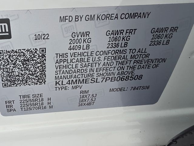 Stock Number: L068508, VIN Number: KL4MMESL7PB068508, Style Name: AWD Select 4Dr Crossover, Make: Buick, Model: Encore GX, Model Year: 2023, Type: SUV, Vehicle Trim: Select, Interior Color: Ebony With Ebony Interior Accents, Exterior Color: White, Body Type: SUV, MPG Automatic City: 26, MPG Automatic Highway: 29, Engine Description: ECOTEC 1.3L Turbo, Fuel Type: Gasoline, Fuel Induction: DI, Valves Per Cylinder: 4, Aspiration: Turbocharged, 4WD Type: Part Time, Transmission: 9-Speed Automatic, Wheels Rims: Aluminum Alloy With Painted Accents, Wheels Spare Rim Type: Steel, Drive Train Type: AWD, Independent Suspension: Four-Wheel, Stabilizer Bar: Front, Clock, Compass, External Temp, Low Fuel Level, Tachometer, Front Wipers: Variable Intermittent, Privacy Glass, Rear Defogger, Rear Wiper: Auto-On In Reverse, With Washer, Antenna Type: Diversity, Mast, Audio System: AM/FM, Voice Operated, Touch Screen Display, Speakers: 6, Drivers: Heated, Drivers Height: Power, Drivers Lumbar: Power, Drivers Power: 8, Passenger: Heated, Seating Capacity: 5, Front Seat Type: Bucket, Upholstery: Cloth, Center Armrest, Folding: Split, Center Console: Front Console With Armrest And Storage, Cruise Control, Cupholders: Front, Rear, Overhead Console: Front, Power Outlets: 12V Front, USB-C Front, Seatback Storage, Steering Adjustment: Tilt And Telescopic, Steering Power: Variable/Speed-Proportional, Steering Wheel Control: Audio, Cruise Control, Phone, Multi-Function, Voice Control, Power Mirrors, Power Door Locks: Anti-Lockout, Auto-Locking, Windows: Power Windows, Satellite Communication: Onstar, Voice Guided Directions, Air Conditioning: Automatic Climate Control, Air Filtration, Trunk Lights, Mats: Rear, Front, Reading Lights: Front, Rear, Shift Knob: Chrome, Steering Wheel Trim: Leather, Vanity Mirrors: Dual Illuminating, Bumpers: Body-Color, NHTSA Passenger Grade: Good, NHTSA Driver Grade: Excellent, NHTSA Side Impact Front Grade: Excellent, NHTSA Side Impact Back Grade: Excellent, NHTSA Roll Over Resistance Rating: Good, ABS: 4-Wheel, Anti Theft System: Alarm, Vehicle Immobilizer, Brake Assist, Safety Locks, Daytime Running Light: LED, Fog Lights: LED, Headlights Auto Delay, Front Headrests: 2, Adjustable, Rear Headrests: 2, Adjustable, Safety Stability Control, Driver and Passenger Airbag, Side Airbag, Stability Control, Front Head Room: 39.7 Inches, Front Hip Room: 51.9 Inches, Front Shoulder Room: 55.4 Inches, Front Leg Room: 40.9 Inches, Rear Head Room: 37.9 Inches, Rear Hip Room: 47.5 Inches, Rear Leg Room: 36.0 Inches, Rear Shoulder Room: 53.6 Inches, Luggage Capacity: 23.5 Cu.Ft., Maximum Seating: 5, Length: 171.4 Inches, Width: 71.4 Inches, Height: 64.1 Inches, Wheelbase: 102.2 Inches, Ground Clearance: 7.5 Inches, Max Gross Vehicle Weight: 4409 Lbs., Curb Weight: 3258 Lbs.
