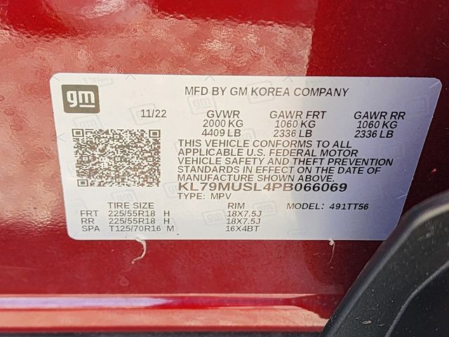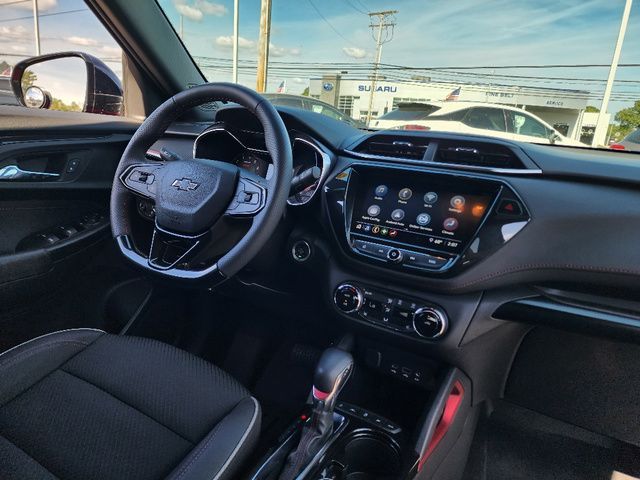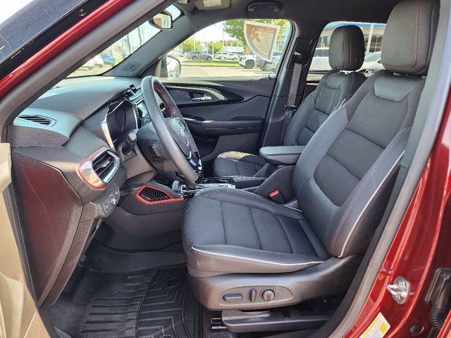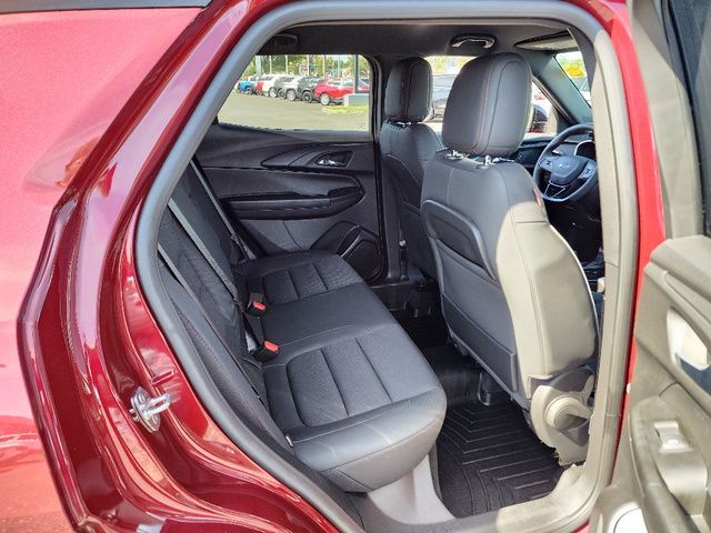 Stock Number: L066069T, VIN Number: KL79MUSL4PB066069, Style Name: 4X4 RS 4Dr SUV, Make: Chevrolet, Model: Trailblazer, Model Year: 2023, Type: SUV, Vehicle Trim: RS, Interior Color: Jet Black With Red Accents, Exterior Color: Crimson Metallic, Body Type: SUV, MPG Automatic City: 26, MPG Automatic Highway: 30, Engine Description: 1.3L I3, Fuel Type: Gasoline, Fuel Induction: DI, Valves Per Cylinder: 4, Aspiration: Turbocharged, 4WD Type: Part Time, Transmission: 9-Speed Automatic, Wheels Rims: Painted Aluminum Alloy, Wheels Spare Rim Type: Steel, Drive Train Type: AWD, Independent Suspension: Four-Wheel, Stabilizer Bar: Front And Rear, Clock, Compass, External Temp, Low Fuel Level, Tachometer, Front Wipers: Variable Intermittent, Privacy Glass, Rear Defogger, Rear Wiper: Intermittent, With Washer, Antenna Type: Diversity, Mast, Audio System: AM/FM, Touch Screen Display, Speakers: 6, Drivers: Heated, Drivers Height: Power, Drivers Lumbar: Power, Drivers Power: 8, Passenger: Heated, Seating Capacity: 5, Front Seat Type: Bucket, Upholstery: Cloth, Center Armrest, Folding: Split, Flat, Center Console: Front Console With Armrest And Storage, Cruise Control, Cupholders: Front, Rear, Overhead Console: Front, Power Outlets: 12V Front, USB Front, USB-C Front, Seatback Storage, Steering Adjustment: Tilt And Telescopic, Steering Power, Steering Wheel Control: Audio, Cruise Control, Phone, Multi-Function, Voice Control, Power Mirrors, Power Door Locks: Anti-Lockout, Auto-Locking, Windows: Power Windows, Satellite Communication: Onstar, Air Conditioning, Air Filtration, Trunk Lights, Mats: Rear, Front, Reading Lights: Front, Rear, Shift Knob: Leather, Chrome, Steering Wheel Trim: Leather, Vanity Mirrors: Dual, Bumpers: Body-Color, NHTSA Passenger Grade: Good, NHTSA Driver Grade: Excellent, NHTSA Side Impact Front Grade: Excellent, NHTSA Side Impact Back Grade: Excellent, NHTSA Roll Over Resistance Rating: Good, ABS: 4-Wheel, Anti Theft System: Alarm, Vehicle Immobilizer, Brake Assist, Safety Locks, Daytime Running Light: LED, Fog Lights: LED, Headlights Auto Delay, Front Headrests: 2, Adjustable, Rear Headrests: 2, Adjustable, Safety Stability Control, Driver And Passenger Airbag, Side Airbag, Stability Control, Front Head Room: 40.0 Inches, Front Hip Room: 52.3 Inches, Front Shoulder Room: 55.4 Inches, Front Leg Room: 40.9 Inches, Rear Head Room: 38.4 Inches, Rear Hip Room: 45.7 Inches, Rear Leg Room: 39.4 Inches, Rear Shoulder Room: 53.8 Inches, Luggage Capacity: 25.3 Cu.Ft., Maximum Seating: 5, Length: 173.7 Inches, Width: 71.2 Inches, Height: 65.7 Inches, Wheelbase: 103.9 Inches, Ground Clearance: 8.0 Inches, Max Gross Vehicle Weight: 4409 Lbs., Curb Weight: 3289 Lbs.