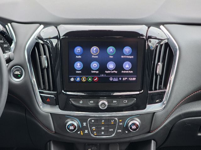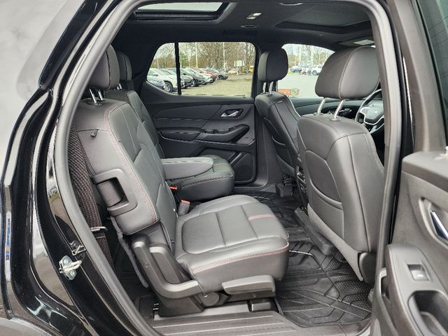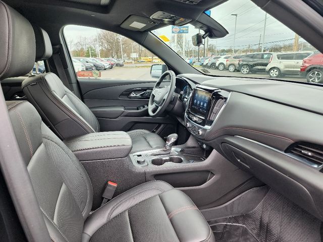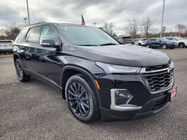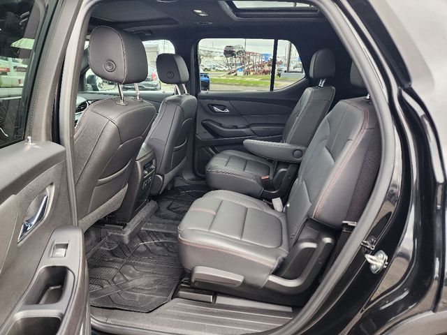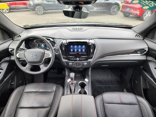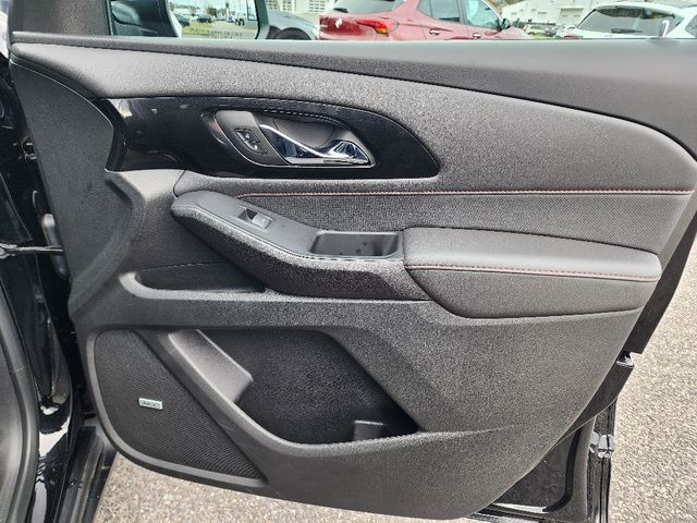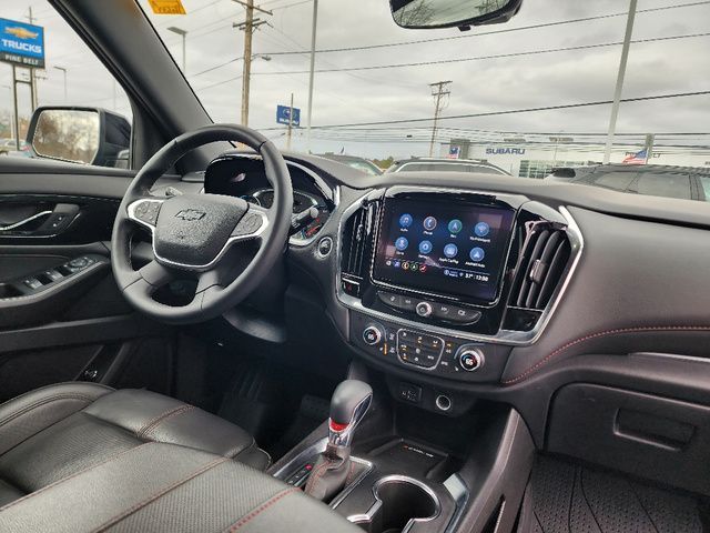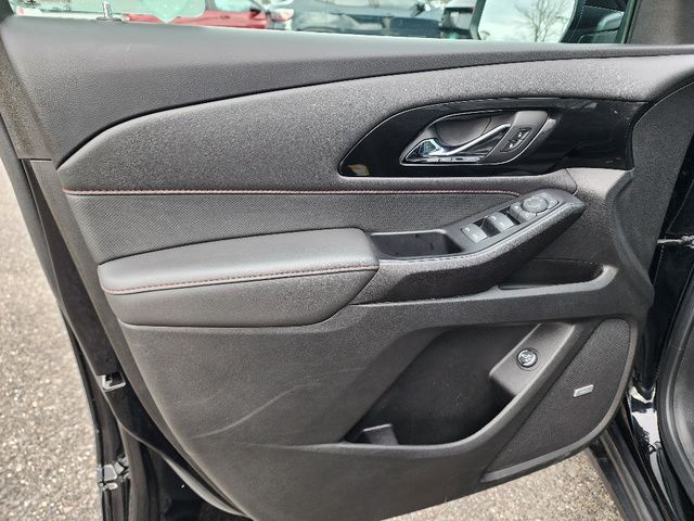 Stock Number: L160694A, VIN Number: 1GNEVJKW9PJ160694, Style Name: 4X4 RS 4Dr SUV, Make: Chevrolet, Model: Traverse, Model Year: 2023, Type: SUV, Vehicle Trim: RS, Interior Color: Jet Black/Spice Red, Exterior Color: Mosaic Black Metallic, Body Type: SUV, MPG Automatic City: 17, MPG Automatic Highway: 25, Engine Description: 3.6L V6, Fuel Type: Gasoline, Fuel Induction: DI, Valves Per Cylinder: 4, Aspiration: Naturally Aspirated, 4WD Type: Part Time, Transmission: 9-Speed Automatic, Wheels Rims: Painted Aluminum Alloy, Wheels Spare Rim Type: Steel, Drive Train Type: AWD, Independent Suspension: Four-Wheel, Stabilizer Bar: Front And Rear, Clock, Compass, External Temp, Low Fuel Level, Tachometer, Front Wipers: Variable Intermittent, Privacy Glass, Rear Defogger, Rear Wiper: Intermittent, Auto-On In Reverse, With Washer, Antenna Type: Diversity, Mast, Audio System: AM/FM, Voice Operated, Touch Screen Display, Premium Brand: Bose, Speakers: 9, Drivers: Heated, Drivers Height: Power, Drivers Lumbar: Power, Drivers Power: 8, Passenger: Heated, Passenger Lumbar: Power, Passenger Power: 6, Seating Capacity: 7, Front Seat Type: Bucket, Upholstery: Leather-Trimmed, Folding: Flat, Folding Thirdrow Seat: Split, Flat, Thirdrow Seat Type: 40-60 Split Bench, Center Console: Front Console With Armrest And Storage, Cupholders: Front, Third Row, 10, Rear, Overhead Console: Front, Power Outlets: 115V Rear, USB Front, USB Rear, USB Third Row, Seatback Storage, Steering Adjustment: Tilt, Steering Power: Variable/Speed-Proportional, Steering Wheel Control: Audio, Cruise Control, Phone, Multi-Function, Voice Control, Universal Remote Transmitter: Garage Door Opener, Auto Dimming Mirrors, Power Mirrors, Power Retractable Mirrors, Power Door Locks: Anti-Lockout, Auto-Locking, Windows: Power Windows, Navigation System: Hard Drive, Touch Screen Display, Voice Operated, Satellite Communication: Onstar, Voice Guided Directions, Air Conditioning: Automatic Climate Control, Air Filtration, Trunk Lights, Mats: Third Row, Rear, Front, Reading Lights: Front, Rear, Steering Wheel Trim: Leather, Vanity Mirrors: Dual Illuminating, Bumpers: Body-Color, NHTSA Passenger Grade: Excellent, NHTSA Driver Grade: Excellent, NHTSA Side Impact Front Grade: Excellent, NHTSA Side Impact Back Grade: Good, NHTSA Roll Over Resistance Rating: Good, ABS: 4-Wheel, Anti Theft System: Alarm, Vehicle Immobilizer, Brake Assist, Safety Locks, Daytime Running Light: LED, Fog Lights, Headlights Auto Delay, Front Headrests: 2, Adjustable, Rear Headrests: 2, Adjustable, Third Row Headrests: 2, Safety Signal Mirrors, Safety Stability Control, Driver And Passenger Airbag, Side Airbag, Stability Control, Front Head Room: 42.8 Inches, Front Hip Room: 58.1 Inches, Front Shoulder Room: 61.9 Inches, Front Leg Room: 41.0 Inches, Rear Head Room: 40.0 Inches, Rear Hip Room: 56.9 Inches, Rear Leg Room: 38.4 Inches, Rear Shoulder Room: 62.2 Inches, Luggage Capacity: 23.0 Cu.Ft., Maximum Seating: 7, Length: 205.9 Inches, Width: 88.6 Inches, Height: 70.7 Inches, Wheelbase: 121.0 Inches, Ground Clearance: 7.5 Inches, Max Gross Vehicle Weight: 6160 Lbs., Curb Weight: 4519 Lbs.