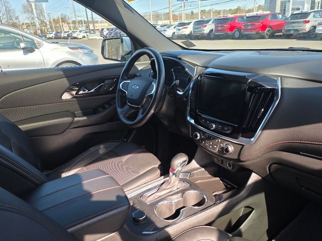 Stock Number: L106573, VIN Number: 1GNEVJKW2PJ106573, Style Name: 4X4 RS 4Dr SUV, Make: Chevrolet, Model: Traverse, Model Year: 2023, Type: SUV, Vehicle Trim: RS, Interior Color: Jet Black/Spice Red, Exterior Color: Summit White, Body Type: SUV, MPG Automatic City: 17, MPG Automatic Highway: 25, Engine Description: 3.6L V6, Fuel Type: Gasoline, Fuel Induction: DI, Valves Per Cylinder: 4, Aspiration: Naturally Aspirated, 4WD Type: Part Time, Transmission: 9-Speed Automatic, Wheels Rims: Painted Aluminum Alloy, Wheels Spare Rim Type: Steel, Drive Train Type: AWD, Independent Suspension: Four-Wheel, Stabilizer Bar: Front And Rear, Clock, Compass, External Temp, Low Fuel Level, Tachometer, Front Wipers: Variable Intermittent, Privacy Glass, Rear Defogger, Rear Wiper: Intermittent, Auto-On In Reverse, With Washer, Antenna Type: Diversity, Mast, Audio System: AM/FM, Voice Operated, Touch Screen Display, Premium Brand: Bose, Speakers: 9, Drivers: Heated, Drivers Height: Power, Drivers Lumbar: Power, Drivers Power: 8, Passenger: Heated, Passenger Lumbar: Power, Passenger Power: 6, Seating Capacity: 7, Front Seat Type: Bucket, Upholstery: Leather-Trimmed, Folding: Flat, Folding Thirdrow Seat: Split, Flat, Thirdrow Seat Type: 40-60 Split Bench, Center Console: Front Console With Armrest And Storage, Cupholders: Front, Third Row, 10, Rear, Overhead Console: Front, Power Outlets: 115V Rear, USB Front, USB Rear, USB Third Row, Seatback Storage, Steering Adjustment: Tilt, Steering Power: Variable/Speed-Proportional, Steering Wheel Control: Audio, Cruise Control, Phone, Multi-Function, Voice Control, Universal Remote Transmitter: Garage Door Opener, Auto Dimming Mirrors, Power Mirrors, Power Retractable Mirrors, Power Door Locks: Anti-Lockout, Auto-Locking, Windows: Power Windows, Navigation System: Hard Drive, Touch Screen Display, Voice Operated, Satellite Communication: Onstar, Voice Guided Directions, Air Conditioning: Automatic Climate Control, Air Filtration, Trunk Lights, Mats: Third Row, Rear, Front, Reading Lights: Front, Rear, Steering Wheel Trim: Leather, Vanity Mirrors: Dual Illuminating, Bumpers: Body-Color, NHTSA Passenger Grade: Excellent, NHTSA Driver Grade: Excellent, NHTSA Side Impact Front Grade: Excellent, NHTSA Side Impact Back Grade: Good, NHTSA Roll Over Resistance Rating: Good, ABS: 4-Wheel, Anti Theft System: Alarm, Vehicle Immobilizer, Brake Assist, Safety Locks, Daytime Running Light: LED, Fog Lights, Headlights Auto Delay, Front Headrests: 2, Adjustable, Rear Headrests: 2, Adjustable, Third Row Headrests: 2, Safety Signal Mirrors, Safety Stability Control, Driver And Passenger Airbag, Side Airbag, Stability Control, Front Head Room: 42.8 Inches, Front Hip Room: 58.1 Inches, Front Shoulder Room: 61.9 Inches, Front Leg Room: 41.0 Inches, Rear Head Room: 40.0 Inches, Rear Hip Room: 56.9 Inches, Rear Leg Room: 38.4 Inches, Rear Shoulder Room: 62.2 Inches, Luggage Capacity: 23.0 Cu.Ft., Maximum Seating: 7, Length: 205.9 Inches, Width: 88.6 Inches, Height: 70.7 Inches, Wheelbase: 121.0 Inches, Ground Clearance: 7.5 Inches, Max Gross Vehicle Weight: 6160 Lbs., Curb Weight: 4519 Lbs.