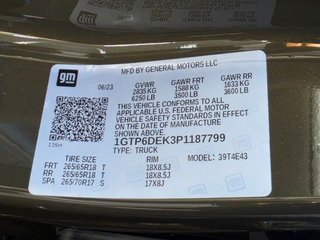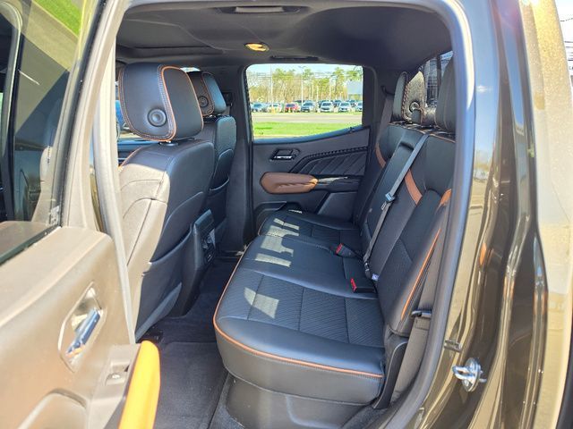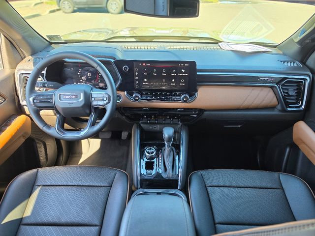 Stock Number: C187799, VIN Number: 1GTP6DEK3P1187799, Style Name: 4X4 AT4 4Dr Crew Cab 5 Ft. SB, Make: GMC, Model: Canyon, Model Year: 2023, Type: Pickup, Vehicle Trim: AT4, Interior Color: Jet Black/Timber, Exterior Color: Deep Bronze Metallic, Bed Length: 61.7 Inches, Body Type: Pickup, MPG Automatic City: 17, MPG Automatic Highway: 21, Engine Description: 2.7L Turbo, Fuel Type: Gasoline, Fuel Induction: DI, Valves Per Cylinder: 4, Aspiration: Turbocharged, 4WD Type: Part Time W/ On Demand Setting, Transmission: 8-Speed Automatic, Wheels Rims: Aluminum Alloy With Painted Accents, Wheels Spare Rim Type: Steel, Drive Train Type: 4WD, Independent Suspension: Front, Stabilizer Bar: Front, Clock, Compass, External Temp, Low Fuel Level, Tachometer, Front Wipers: Variable Intermittent, Rear Defogger, Antenna Type: Diversity, Mast, Audio System: AM/FM, Voice Operated, Touch Screen Display, Speakers: 6, Drivers: Heated, Drivers Height: Power, Drivers Lumbar: Power, Drivers Power: 8, Passenger: Heated, Seating Capacity: 5, Front Seat Type: Bucket, Upholstery: Cloth, Folding: Folds Up, Center Console: Front Console With Armrest And Storage, Cruise Control, Cupholders: Front, Power Outlets: 115V Cargo Area, 115V Rear, 12V Front, USB Front, USB Rear, Steering Adjustment: Tilt And Telescopic, Steering Power: Variable/Speed-Proportional, Steering Wheel Control: Audio, Cruise Control, Phone, Multi-Function, Voice Control, Auto Dimming Mirrors, Power Mirrors, Power Door Locks: Anti-Lockout, Auto-Locking, Windows: Power Windows, Navigation System: Hard Drive, Touch Screen Display, Voice Operated, Satellite Communication: Onstar, Voice Guided Directions, Air Conditioning: Automatic Climate Control, Air Filtration, Mats: Rear, Front, Reading Lights: Front, Shift Knob: Urethane, Steering Wheel Trim: Leatherette, Vanity Mirrors: Dual Illuminating, Bumpers: Body-Color, NHTSA Passenger Grade: Good, NHTSA Driver Grade: Good, NHTSA Side Impact Front Grade: Good, NHTSA Side Impact Back Grade: Excellent, NHTSA Roll Over Resistance Rating: Average, ABS: 4-Wheel, Anti Theft System: Alarm, Vehicle Immobilizer, Brake Assist, Safety Locks, Daytime Running Light: LED, Fog Lights: LED, Headlights Auto Delay, Front Headrests: 2, Adjustable, Rear Headrests: 3, Foldable, Safety Stability Control, Driver And Passenger Airbag, Side Airbag, Stability Control, Front Head Room: 40.3 Inches, Front Hip Room: 54.7 Inches, Front Shoulder Room: 57.4 Inches, Front Leg Room: 45.2 Inches, Rear Head Room: 38.3 Inches, Rear Hip Room: 53.1 Inches, Rear Leg Room: 34.7 Inches, Rear Shoulder Room: 56.1 Inches, Maximum Seating: 5, Length: 213.2 Inches, Width: 84.4 Inches, Height: 79.8 Inches, Wheelbase: 131.0 Inches, Ground Clearance: 9.6 Inches, Max Gross Vehicle Weight: 6250 Lbs., Curb Weight: 4670 Lbs.