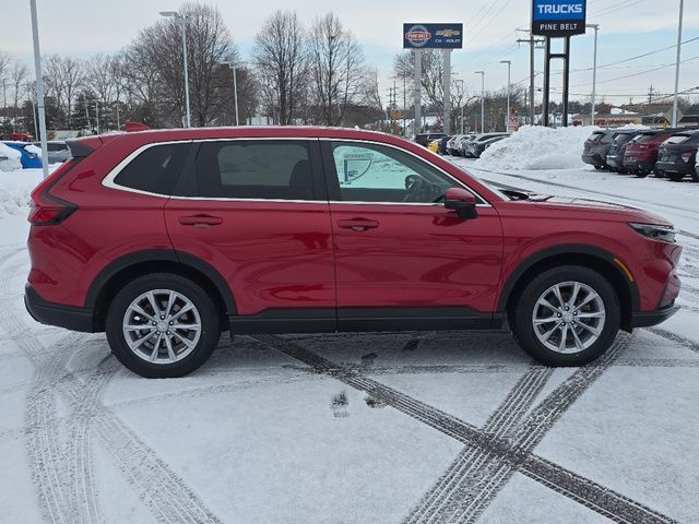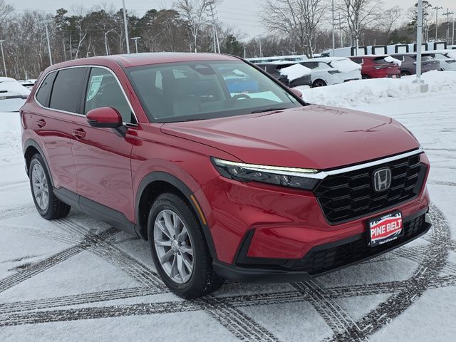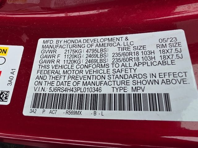 Stock Number: L010346, VIN Number: 5J6RS4H43PL010346, Make: Honda, Model: CR-V, Model Year: 2023, Type: SUV, Vehicle Trim: EX, Body Type: SUV, Exterior Color: Radiant Red Metallic, MPG Automatic City: 27, MPG Automatic Highway: 32, Engine Description: 1.5L I4 DOHC 16V, Fuel Type: Gasoline, Fuel Induction: DI, Valves Per Cylinder: 4, Aspiration: Turbocharged, 4WD Type: On Demand, Transmission: CVT, Wheels Rims: Aluminum Alloy, Wheels Spare Rim Type: Steel, Drive Train Type: AWD, Independent Suspension: Four-Wheel, Stabilizer Bar: Front And Rear, Clock, External Temp, Low Fuel Level, Tachometer, Front Wipers: Variable Intermittent, Privacy Glass, Rear Defogger, Rear Wiper: Intermittent, Auto-On In Reverse, With Washer, Sunroof: One-Touch Open/Close, Sliding Sunshade, Anti-Trapping, Power Glass, Tilt/Slide, Antenna Type: Mast, Audio System: AM/FM, Voice Operated, Touch Screen Display, Speakers: 6, Drivers: Heated, Drivers Height: Power, Drivers Lumbar: Power, Drivers Power: 10, Passenger: Heated, Seating Capacity: 5, Front Seat Type: Bucket, Upholstery: Cloth, Center Armrest, Folding: Split, Flat, Center Console: Front Console With Armrest And Storage, Cupholders: Front, Rear, Overhead Console: Front, Power Outlets: 12V Cargo Area, 12V Front, USB Front, USB-C Front, Seatback Storage, Steering Adjustment: Tilt And Telescopic, Steering Power: Variable/Speed-Proportional, Steering Wheel Control: Audio, Cruise Control, Phone, Multi-Function, Voice Control, Power Mirrors, Power Door Locks: Anti-Lockout, Auto-Locking, Windows: Power Windows, Air Conditioning: Automatic Climate Control, Air Filtration, Trunk Lights, Dash Trim: Metallic, Mats: Rear, Front, Reading Lights: Front, Rear, Shift Knob: Urethane, Steering Wheel Trim: Urethane, Vanity Mirrors: Dual Illuminating, Bumpers: Body-Color, NHTSA Passenger Grade: Good, NHTSA Driver Grade: Excellent, NHTSA Side Impact Front Grade: Excellent, NHTSA Side Impact Back Grade: Excellent, NHTSA Roll Over Resistance Rating: Good, ABS: 4-Wheel, Anti Theft System: Alarm, Vehicle Immobilizer, Brake Assist, Safety Locks, Daytime Running Light: LED, Headlights Auto Delay, Front Headrests: 2, Adjustable, Rear Headrests: 3, Adjustable, Safety Signal Mirrors, Safety Stability Control, Driver And Passenger Airbag, Side Airbag, Stability Control, Front Head Room: 38.2 Inches, Front Hip Room: 55.6 Inches, Front Shoulder Room: 57.9 Inches, Front Leg Room: 41.3 Inches, Rear Head Room: 38.2 Inches, Rear Hip Room: 52.6 Inches, Rear Leg Room: 41.0 Inches, Rear Shoulder Room: 55.9 Inches, Luggage Capacity: 39.3 Cu.Ft., Maximum Seating: 5, Length: 184.8 Inches, Width: 73.5 Inches, Height: 66.5 Inches, Wheelbase: 106.3 Inches, Ground Clearance: 8.2 Inches, Curb Weight: 3616 Lbs., Interior Color: Black