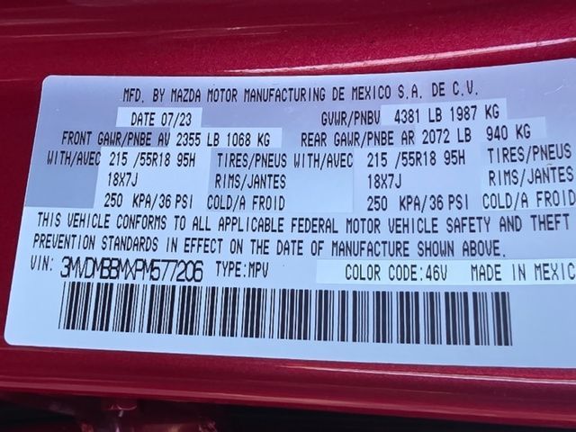 Stock Number: M577206, VIN Number: 3MVDMBBMXPM577206, Style Name: AWD 2.5 S Select 4Dr SUV, Make: Mazda, Model: CX-30, Model Year: 2023, Type: SUV, Vehicle Trim: 2.5 S Select Package, Interior Color: Black, Exterior Color: Soul Red Crystal Metallic, Body Type: SUV, MPG Automatic City: 26, MPG Automatic Highway: 33, Engine Description: SKYACTIV? 2.5L 4-Cylinder DOHC 16V, Fuel Type: Gasoline, Fuel Induction: DI, Valves Per Cylinder: 4, Aspiration: Naturally Aspirated, 4WD Type: On Demand, Transmission: 6-Speed Automatic, Wheels Rims: Painted Aluminum Alloy, Wheels Spare Rim Type: Steel, Drive Train Type: AWD, Independent Suspension: Four-Wheel, Stabilizer Bar: Front, Clock, Compass, External Temp, Low Fuel Level, Tachometer, Front Wipers: Speed Sensitive, Variable Intermittent, Rain Sensing, Privacy Glass, Rear Defogger, Rear Wiper: Intermittent, With Washer, Antenna Type: Element, Audio System: AM/FM, HD Radio, Voice Operated, Speakers: 8, Drivers Height: Manual, Seating Capacity: 5, Front Seat Type: Bucket, Upholstery: Leatherette, Center Armrest, Folding: Split, One-Touch Fold Flat, Center Console: Front Console With Armrest And Storage, Cupholders: Front, Rear, Power Outlets: 12V Front, USB Front, Seatback Storage, Steering Adjustment: Tilt And Telescopic, Steering Power: Variable/Speed-Proportional, Steering Wheel Control: Audio, Cruise Control, Phone, Multi-Function, Voice Control, Power Mirrors, Power Door Locks: Anti-Lockout, Auto-Locking, Windows: Power Windows, Air Conditioning: Automatic Climate Control, Sun Sensor Climate Control, Air Filtration, Trunk Lights, Door Trim: Cloth, Mats: Rear, Front, Reading Lights: Front, Rear, Shift Knob: Leather, Steering Wheel Trim: Leather, Vanity Mirrors: Dual, Bumpers: Body-Color, NHTSA Passenger Grade: Excellent, NHTSA Driver Grade: Excellent, NHTSA Side Impact Front Grade: Excellent, NHTSA Side Impact Back Grade: Excellent, NHTSA Roll Over Resistance Rating: Good, ABS: 4-Wheel, Anti Theft System: Alarm, Vehicle Immobilizer, Brake Assist, Safety Locks, Daytime Running Light: LED, Headlights Auto Delay, Front Headrests: 2, Adjustable, Rear Headrests: 3, Adjustable, Safety Signal Mirrors, Safety Stability Control, Driver and Passenger Airbag, Side Airbag, Stability Control, Front Head Room: 38.1 Inches, Front Hip Room: 54.6 Inches, Front Shoulder Room: 55.6 Inches, Front Leg Room: 41.7 Inches, Rear Head Room: 38.3 Inches, Rear Hip Room: 53.2 Inches, Rear Leg Room: 36.3 Inches, Rear Shoulder Room: 53.6 Inches, Luggage Capacity: 20.2 Cu.Ft., Maximum Seating: 5, Length: 173.0 Inches, Width: 70.7 Inches, Height: 61.7 Inches, Wheelbase: 104.4 Inches, Ground Clearance: 8.0 Inches, Max Gross Vehicle Weight: 4381 Lbs., Curb Weight: 3424 Lbs.
