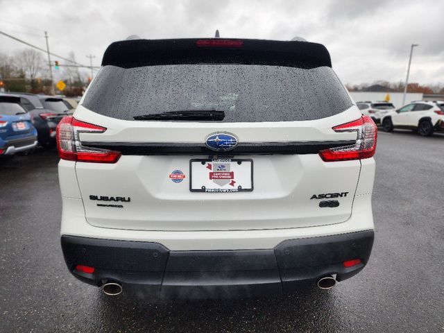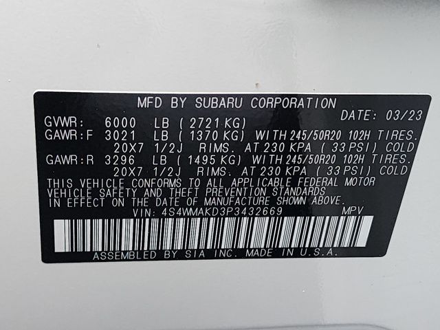 Stock Number: S432669, VIN Number: 4S4WMAKD3P3432669, Style Name: AWD Onyx Edition Limited 4Dr SUV, Make: Subaru, Model: Ascent, Model Year: 2023, Type: SUV, Vehicle Trim: Onyx Edition, Interior Color: Gray With Green Stitching, Exterior Color: Crystal White Pearl, Body Type: SUV, MPG Automatic City: 19, MPG Automatic Highway: 25, Engine Description: 2.4L H4, Fuel Type: Gasoline, Fuel Induction: DI, Valves Per Cylinder: 4, Aspiration: Turbocharged, 4WD Type: Full Time, Transmission: Lineartronic CVT, Wheels Rims: Aluminum Alloy, Wheels Spare Rim Type: Steel, Drive Train Type: AWD, Independent Suspension: Four-Wheel, Stabilizer Bar: Front And Rear, Clock, Compass, External Temp, Heads Up Display, Low Fuel Level, Tachometer, Front Wipers: Variable Intermittent, Privacy Glass, Rear Defogger, Rear Wiper: Intermittent, Auto-On In Reverse, With Washer, Side Window Sunshade, Sunroof: One-Touch Open/Close, Sliding Sunshade, Anti-Trapping, Tilt/Slide, Power Panoramic, Antenna Type: Diversity, Mast, Audio System: AM/FM, HD Radio, Voice Operated, Touch Screen Display, Premium Brand: Harman/Kardon, Speakers: 13, Drivers: Heated, Drivers Height: Power, Drivers Lumbar: 4-Way Power Lumbar, Drivers Power: 12, Passenger: Heated, Passenger Power: 4, Seating Capacity: 7, Front Seat Type: Bucket, Upholstery: Leatherette, Folding: Split, Flat, Heated, Folding Thirdrow Seat: Split, Flat, Thirdrow Seat Type: 40-60 Split Bench, Center Console: Front Console With Armrest And Storage, Illuminated, Organizer Tray, Cupholders: Front, Third Row, Illuminated, Rear, Overhead Console: Front, Power Outlets: 12V Cargo Area, Two 12V Front, 12V Front, USB-C Front, USB-C Rear, USB Third Row, Seatback Storage, Steering Adjustment: Tilt And Telescopic, Steering Power: Variable/Speed-Proportional, Steering Wheel Control: Audio, Cruise Control, Phone, Multi-Function, Paddle Shifter, Voice Control, Universal Remote Transmitter: Homelink - Garage Door Opener, Auto Dimming Mirrors, Power Mirrors, Reverse Tilt Mirror, Power Door Locks: Anti-Lockout, Auto-Locking, Windows: Power Windows, Navigation System: Touch Screen Display, Voice Operated, Memory Card, Satellite Communication: Voice Guided Directions, Memory Features Number Of Drivers: 2 Driver, Air Conditioning: Automatic Climate Control, Air Filtration, Trunk Lights, Center Console Trim: Leatherette, Dash Trim: Leatherette, Door Trim: Simulated Carbon Fiber, Leatherette, Mats: Rear, Front, Reading Lights: Front, Rear, Third Row, Shift Knob: Leather, Steering Wheel Trim: Leather, Vanity Mirrors: Dual Illuminating, Bumpers: Black, NHTSA Passenger Grade: Excellent, NHTSA Driver Grade: Excellent, NHTSA Side Impact Front Grade: Excellent, NHTSA Side Impact Back Grade: Excellent, NHTSA Roll Over Resistance Rating: Good, ABS: 4-Wheel, Anti Theft System: Alarm, Vehicle Immobilizer, Brake Assist, Safety Locks, Cornering Lights, Daytime Running Light, Fog Lights: LED, Headlights Auto Delay, Front Headrests: 2, Adjustable, Rear Headrests: 2, Adjustable, Third Row Headrests: 3, Adjustable, Safety Signal Mirrors, Safety Stability Control, Driver And Passenger Airbag, Side Airbag, Stability Control, Front Head Room: 40.0 Inches, Front Hip Room: 57.8 Inches, Front Shoulder Room: 61.1 Inches, Front Leg Room: 42.2 Inches, Rear Head Room: 38.7 Inches, Rear Hip Room: 57.2 Inches, Rear Leg Room: 38.6 Inches, Rear Shoulder Room: 60.3 Inches, Luggage Capacity: 17.6 Cu.Ft., Maximum Seating: 7, Length: 196.8 Inches, Width: 86.1 Inches, Height: 71.6 Inches, Wheelbase: 113.8 Inches, Ground Clearance: 8.7 Inches, Max Gross Vehicle Weight: 6000 Lbs., Curb Weight: 4570 Lbs.