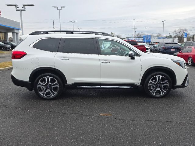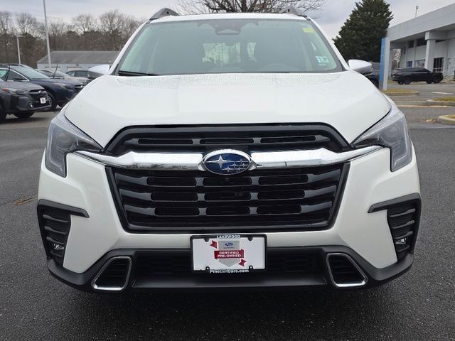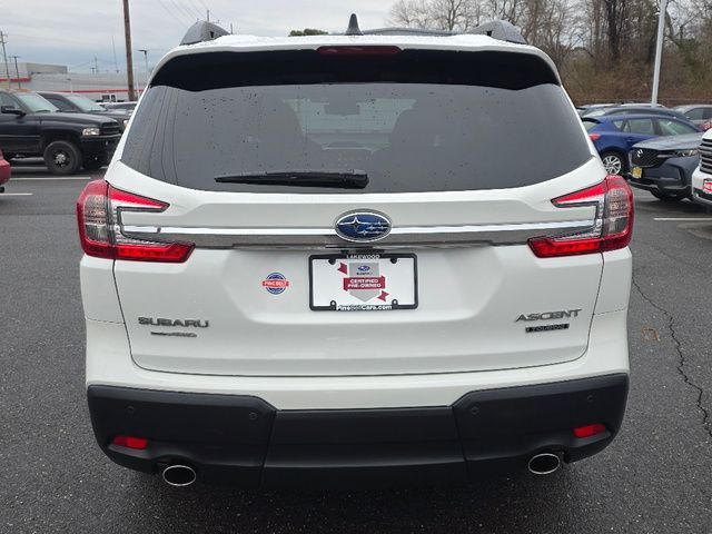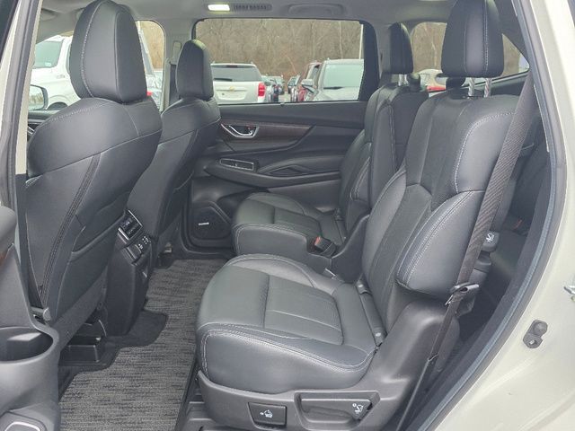 Stock Number: L451607, VIN Number: 4S4WMAWD7P3451607, Style Name: AWD Touring 4Dr SUV, Make: Subaru, Model: Ascent, Model Year: 2023, Type: SUV, Vehicle Trim: Touring, Interior Color: Black, Exterior Color: White, Body Type: SUV, MPG Automatic City: 19, MPG Automatic Highway: 25, Engine Description: 2.4L 4-Cylinder DOHC 16V, Fuel Type: Gasoline, Fuel Induction: DI, Valves Per Cylinder: 4, Aspiration: Turbocharged, 4WD Type: Full Time, Transmission: Lineartronic CVT, Wheels Rims: Aluminum Alloy, Wheels Spare Rim Type: Steel, Drive Train Type: AWD, Independent Suspension: Four-Wheel, Stabilizer Bar: Front And Rear, Clock, Compass, External Temp, Heads up Display, Low Fuel Level, Tachometer, Front Wipers: Variable Intermittent, Rain Sensing, Privacy Glass, Rear Defogger, Rear Wiper: Intermittent, Auto-On In Reverse, With Washer, Side Window Sunshade, Sunroof: One-Touch Open/Close, Sliding Sunshade, Anti-Trapping, Tilt/Slide, Power Panoramic, Antenna Type: Diversity, Mast, Audio System: AM/FM, HD Radio, Voice Operated, Touch Screen Display, Premium Brand: Harman/Kardon, Speakers: 13, Drivers: Heated, Drivers Height: Power, Drivers Lumbar: 4-Way Power Lumbar, Drivers Power: 12, Drivers Ventilated, Passenger: Heated, Passenger Power: 4, Passenger Ventilated, Seating Capacity: 7, Front Seat Type: Bucket, Upholstery: Leather-Trimmed, Folding: Split, Flat, Heated, Folding Thirdrow Seat: Split, Flat, Thirdrow Seat Type: 40-60 Split Bench, Center Console: Front Console With Armrest And Storage, Illuminated, Organizer Tray, Cupholders: Front, Third Row, Illuminated, Rear, Overhead Console: Front, Power Outlets: 12V Cargo Area, 115V Rear, Two 12V Front, 12V Front, USB-C Front, USB-C Rear, USB Third Row, Seatback Storage, Steering Adjustment: Tilt And Telescopic, Steering Power: Variable/Speed-Proportional, Steering Wheel Control: Audio, Cruise Control, Phone, Multi-Function, Paddle Shifter, Voice Control, Universal Remote Transmitter: Homelink - Garage Door Opener, Auto Dimming Mirrors, Power Mirrors, Power Retractable Mirrors, Reverse Tilt Mirror, Power Door Locks: Anti-Lockout, Auto-Locking, Windows: Power Windows, Navigation System: Touch Screen Display, Voice Operated, Memory Card, Satellite Communication: Voice Guided Directions, Memory Features Number of Drivers: 2 Driver, Air Conditioning: Automatic Climate Control, Air Filtration, Trunk Lights, Center Console Trim: Leatherette, Dash Trim: Leatherette, Door Trim: Simulated Carbon Fiber, Leatherette, Mats: Rear, Front, Reading Lights: Front, Rear, Third Row, Shift Knob: Leather, Steering Wheel Trim: Leather, Vanity Mirrors: Dual Illuminating, Bumpers: Black, NHTSA Passenger Grade: Excellent, NHTSA Driver Grade: Excellent, NHTSA Side Impact Front Grade: Excellent, NHTSA Side Impact Back Grade: Excellent, NHTSA Roll Over Resistance Rating: Good, ABS: 4-Wheel, Anti Theft System: Alarm, Vehicle Immobilizer, Brake Assist, Safety Locks, Cornering Lights, Daytime Running Light, Fog Lights: LED, Headlights Auto Delay, Front Headrests: 2, Adjustable, Rear Headrests: 2, Adjustable, Third Row Headrests: 3, Adjustable, Safety Signal Mirrors, Safety Stability Control, Driver and Passenger Airbag, Side Airbag, Stability Control, Front Head Room: 40.0 Inches, Front Hip Room: 57.8 Inches, Front Shoulder Room: 61.1 Inches, Front Leg Room: 42.2 Inches, Rear Head Room: 38.7 Inches, Rear Hip Room: 57.2 Inches, Rear Leg Room: 38.6 Inches, Rear Shoulder Room: 60.3 Inches, Luggage Capacity: 17.6 Cu.Ft., Maximum Seating: 7, Length: 196.8 Inches, Width: 86.1 Inches, Height: 71.6 Inches, Wheelbase: 113.8 Inches, Ground Clearance: 8.7 Inches, Max Gross Vehicle Weight: 6000 Lbs., Curb Weight: 4590 Lbs.