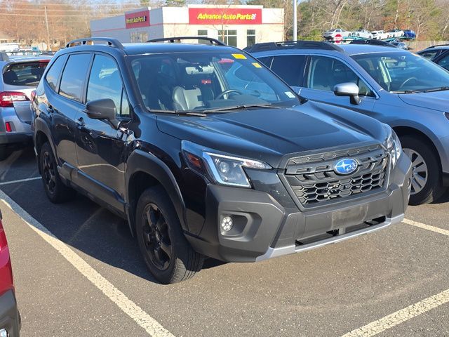 Stock Number: S515734, VIN Number: JF2SKAMC7PH515734, Style Name: AWD Wilderness 4Dr Crossover, Make: Subaru, Model: Forester, Model Year: 2023, Type: Wagon, Vehicle Trim: Wilderness, Interior Color: Gray, Exterior Color: Crystal Black Silica, Body Type: Wagon, MPG Automatic City: 25, MPG Automatic Highway: 28, Engine Description: 2.5L 4-Cylinder DOHC 16V, Fuel Type: Gasoline, Fuel Induction: DI, Valves Per Cylinder: 4, Aspiration: Naturally Aspirated, 4WD Type: Full Time, Transmission: Lineartronic CVT, Wheels Rims: Painted Aluminum Alloy, Wheels Spare Rim Type: Aluminum Alloy, Drive Train Type: AWD, Independent Suspension: Four-Wheel, Stabilizer Bar: Front And Rear, Clock, External Temp, Low Fuel Level, Tachometer, Front Wipers: Variable Intermittent, Privacy Glass, Rear Defogger, Rear Wiper: Intermittent, Auto-On In Reverse, With Washer, Sunroof: One-Touch Open/Close, Sliding Sunshade, Anti-Trapping, Power Panoramic, Antenna Type: Diversity, Mast, Audio System: AM/FM, HD Radio, Voice Operated, Touch Screen Display, Speakers: 6, Drivers: Heated, Drivers Height: Power, Drivers Lumbar: Power, Drivers Power: 10, Passenger: Heated, Seating Capacity: 5, Front Seat Type: Bucket, Upholstery: Vinyl, Center Armrest, Folding: Split, One-Touch Fold Flat, Center Console: Front Console With Armrest And Storage, Illuminated, Organizer Tray, Cupholders: Front, Rear, Overhead Console: Front, Power Outlets: 12V Cargo Area, 12V Rear, 12V Front, USB Front, Seatback Storage, Steering Adjustment: Tilt And Telescopic, Steering Power: Variable/Speed-Proportional, Steering Wheel Control: Audio, Cruise Control, Phone, Multi-Function, Paddle Shifter, Voice Control, Power Mirrors, Power Door Locks: Anti-Lockout, Auto-Locking, Windows: Power Windows, Satellite Communication: Voice Guided Directions, Air Conditioning: Automatic Climate Control, Air Filtration, Trunk Lights, Center Console Trim: Leatherette, Dash Trim: Metallic, Door Trim: Leatherette, Mats: Rear, Front, Reading Lights: Front, Rear, Shift Knob: Urethane, Steering Wheel Trim: Leather, Vanity Mirrors: Dual Illuminating, Bumpers: Silver, NHTSA Passenger Grade: Excellent, NHTSA Driver Grade: Excellent, NHTSA Side Impact Front Grade: Excellent, NHTSA Side Impact Back Grade: Excellent, ABS: 4-Wheel, Anti Theft System: Alarm, Vehicle Immobilizer, Brake Assist, Safety Locks, Cornering Lights, Daytime Running Light, Fog Lights: LED, Headlights Auto Delay, Front Headrests: 2, Adjustable, Rear Headrests: 3, Adjustable, Safety Signal Mirrors, Safety Stability Control, Driver and Passenger Airbag, Side Airbag, Stability Control, Front Head Room: 40.2 Inches, Front Hip Room: 54.1 Inches, Front Shoulder Room: 58.1 Inches, Front Leg Room: 43.3 Inches, Rear Head Room: 37.6 Inches, Rear Hip Room: 53.6 Inches, Rear Leg Room: 39.4 Inches, Rear Shoulder Room: 57.2 Inches, Luggage Capacity: 26.9 Cu.Ft., Maximum Seating: 5, Length: 182.7 Inches, Width: 81.3 Inches, Height: 68.9 Inches, Wheelbase: 104.9 Inches, Ground Clearance: 9.2 Inches, Max Gross Vehicle Weight: 4891 Lbs., Curb Weight: 3620 Lbs.