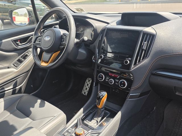 Stock Number: S429400, VIN Number: JF2SKAMC8PH429400, Style Name: AWD Wilderness 4Dr Crossover, Make: Subaru, Model: Forester, Model Year: 2023, Type: Wagon, Vehicle Trim: Wilderness, Interior Color: Gray, Exterior Color: Crystal White Pearl, Body Type: Wagon, MPG Automatic City: 25, MPG Automatic Highway: 28, Engine Description: 2.5L 4-Cylinder DOHC 16V, Fuel Type: Gasoline, Fuel Induction: DI, Valves Per Cylinder: 4, Aspiration: Naturally Aspirated, 4WD Type: Full Time, Transmission: Lineartronic CVT, Wheels Rims: Painted Aluminum Alloy, Wheels Spare Rim Type: Aluminum Alloy, Drive Train Type: AWD, Independent Suspension: Four-Wheel, Stabilizer Bar: Front And Rear, Clock, External Temp, Low Fuel Level, Tachometer, Front Wipers: Variable Intermittent, Privacy Glass, Rear Defogger, Rear Wiper: Intermittent, Auto-On In Reverse, With Washer, Sunroof: One-Touch Open/Close, Sliding Sunshade, Anti-Trapping, Power Panoramic, Antenna Type: Diversity, Mast, Audio System: AM/FM, HD Radio, Voice Operated, Touch Screen Display, Speakers: 6, Drivers: Heated, Drivers Height: Power, Drivers Lumbar: Power, Drivers Power: 10, Passenger: Heated, Seating Capacity: 5, Front Seat Type: Bucket, Upholstery: Vinyl, Center Armrest, Folding: Split, One-Touch Fold Flat, Center Console: Front Console With Armrest And Storage, Illuminated, Organizer Tray, Cupholders: Front, Rear, Overhead Console: Front, Power Outlets: 12V Cargo Area, 12V Rear, 12V Front, USB Front, Seatback Storage, Steering Adjustment: Tilt And Telescopic, Steering Power: Variable/Speed-Proportional, Steering Wheel Control: Audio, Cruise Control, Phone, Multi-Function, Paddle Shifter, Voice Control, Power Mirrors, Power Door Locks: Anti-Lockout, Auto-Locking, Windows: Power Windows, Satellite Communication: Voice Guided Directions, Air Conditioning: Automatic Climate Control, Air Filtration, Trunk Lights, Center Console Trim: Leatherette, Dash Trim: Metallic, Door Trim: Leatherette, Mats: Rear, Front, Reading Lights: Front, Rear, Shift Knob: Urethane, Steering Wheel Trim: Leather, Vanity Mirrors: Dual Illuminating, Bumpers: Silver, NHTSA Passenger Grade: Excellent, NHTSA Driver Grade: Excellent, NHTSA Side Impact Front Grade: Excellent, NHTSA Side Impact Back Grade: Excellent, ABS: 4-Wheel, Anti Theft System: Alarm, Vehicle Immobilizer, Brake Assist, Safety Locks, Cornering Lights, Daytime Running Light, Fog Lights: LED, Headlights Auto Delay, Front Headrests: 2, Adjustable, Rear Headrests: 3, Adjustable, Safety Signal Mirrors, Safety Stability Control, Driver and Passenger Airbag, Side Airbag, Stability Control, Front Head Room: 40.2 Inches, Front Hip Room: 54.1 Inches, Front Shoulder Room: 58.1 Inches, Front Leg Room: 43.3 Inches, Rear Head Room: 37.6 Inches, Rear Hip Room: 53.6 Inches, Rear Leg Room: 39.4 Inches, Rear Shoulder Room: 57.2 Inches, Luggage Capacity: 26.9 Cu.Ft., Maximum Seating: 5, Length: 182.7 Inches, Width: 81.3 Inches, Height: 68.9 Inches, Wheelbase: 104.9 Inches, Ground Clearance: 9.2 Inches, Max Gross Vehicle Weight: 4891 Lbs., Curb Weight: 3620 Lbs.