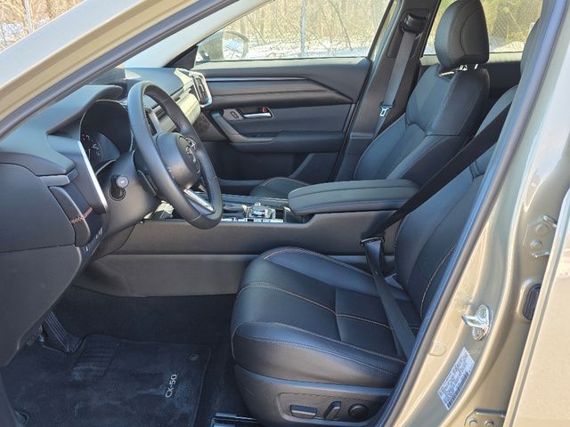 Stock Number: M226241, VIN Number: 7MMVABXY7RN226241, Style Name: AWD 2.5 Turbo 4Dr SUV, Make: Mazda, Model: CX-50, Model Year: 2024, Type: SUV, Vehicle Trim: 2.5 Turbo, Interior Color: Black, Exterior Color: Zircon Sand Metallic, Body Type: SUV, Engine Description: 2.5L I4 Turbocharged DOHC 16V LEV3-ULEV70 227hp, Fuel Type: Gasoline, Fuel Induction: DI, Valves Per Cylinder: 4, Aspiration: Turbocharged, 4WD Type: On Demand, Transmission: 6-Speed Automatic, Wheels Rims: Painted Aluminum Alloy, Wheels Spare Rim Type: Steel, Drive Train Type: AWD, Independent Suspension: Four-Wheel, Stabilizer Bar: Front, Clock, Compass, External Temp, Low Fuel Level, Tachometer, Front Wipers: Speed Sensitive, Variable Intermittent, Rain Sensing, Privacy Glass, Rear Defogger, Rear Wiper: Intermittent, With Washer, Sunroof: One-Touch Open/Close, Anti-Trapping, Tilt/Slide, Power Panoramic, Power Sunshade, Antenna Type: Element, Audio System: AM/FM, HD Radio, Voice Operated, Touch Screen Display, Speakers: 8, Drivers: Heated, Drivers Height: Power, Drivers Lumbar: Power, Drivers Power: 8, Passenger: Heated, Passenger Height: Power, Passenger Power: 6, Seating Capacity: 5, Front Seat Type: Bucket, Upholstery: Leather, Center Armrest, Folding: Split, Flat, Center Console: Front Console With Armrest And Storage, Cupholders: Front, Rear, Overhead Console: Front, Power Outlets: 12V Cargo Area, 12V Front, USB Front, USB Rear, Seatback Storage, Steering Adjustment: Tilt And Telescopic, Steering Power: Variable/Speed-Proportional, Steering Wheel Control: Audio, Cruise Control, Phone, Paddle Shifter, Voice Control, Universal Remote Transmitter: Homelink - Garage Door Opener, Auto Dimming Mirrors, Power Mirrors, Power Door Locks: Anti-Lockout, Auto-Locking, Windows: Power Windows, Phone: Hands Free, Voice Operated, Memory Features Number of Drivers: 2 Driver, Air Conditioning: Automatic Climate Control, Air Filtration, Trunk Lights, Dash Trim: Leather, Door Trim: Leather, Mats: Rear, Front, Reading Lights: Front, Rear, Shift Knob: Leather, Steering Wheel Trim: Leather, Vanity Mirrors: Dual Illuminating, Bumpers: Black, Chrome Accents, NHTSA Passenger Grade: Excellent, NHTSA Driver Grade: Excellent, NHTSA Side Impact Front Grade: Excellent, NHTSA Side Impact Back Grade: Excellent, NHTSA Roll Over Resistance Rating: Good, ABS: 4-Wheel, Anti Theft System: Vehicle Immobilizer, Brake Assist, Safety Locks, Cornering Lights, Daytime Running Light: LED, Headlights Auto Delay, Front Headrests: 2, Adjustable, Rear Headrests: 3, Adjustable, Safety Signal Mirrors, Safety Stability Control, Driver and Passenger Airbag, Side Airbag, Stability Control, Front Head Room: 38.6 Inches, Front Hip Room: 53.6 Inches, Front Shoulder Room: 55.9 Inches, Front Leg Room: 41.7 Inches, Rear Head Room: 37.5 Inches, Rear Hip Room: 52.1 Inches, Rear Leg Room: 39.8 Inches, Rear Shoulder Room: 53.6 Inches, Luggage Capacity: 31.4 Cu.Ft., Maximum Seating: 5, Length: 185.8 Inches, Width: 80.8 Inches, Height: 63.9 Inches, Wheelbase: 110.8 Inches, Ground Clearance: 8.6 Inches, Max Gross Vehicle Weight: 4945 Lbs., Curb Weight: 3913 Lbs.