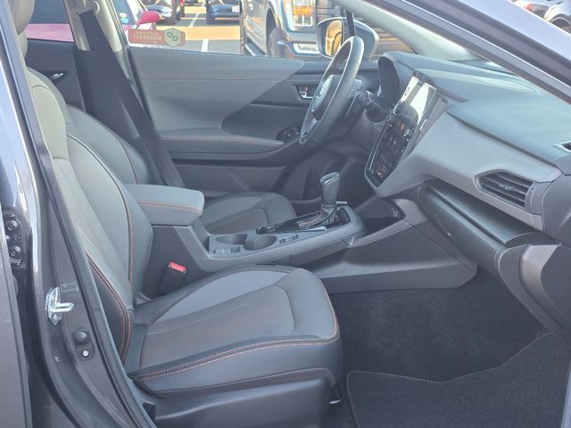 Stock Number: S772665, VIN Number: 4S4GUHN60R3772665, Style Name: AWD Limited 4Dr Crossover, Make: Subaru, Model: Crosstrek, Model Year: 2024, Type: Wagon, Vehicle Trim: Limited, Interior Color: Gray W/Orange Stitching, Exterior Color: Magnetite Gray Metallic, Body Type: Wagon, MPG Automatic City: 26, MPG Automatic Highway: 33, Engine Description: 2.5L 4-Cylinder DOHC 16V, Fuel Type: Gasoline, Fuel Induction: DI, Valves Per Cylinder: 4, Aspiration: Naturally Aspirated, 4WD Type: Full Time, Transmission: Lineartronic CVT, Wheels Rims: Painted Aluminum Alloy, Wheels Spare Rim Type: Steel, Drive Train Type: AWD, Independent Suspension: Four-Wheel, Stabilizer Bar: Front And Rear, Clock, External Temp, Low Fuel Level, Tachometer, Front Wipers: Variable Intermittent, Privacy Glass, Rear Defogger, Rear Wiper: Intermittent, Auto-On In Reverse, With Washer, Antenna Type: Diversity, Mast, Audio System: AM/FM, HD Radio, Voice Operated, Touch Screen Display, Speakers: 6, Drivers: Heated, Drivers Height: Power, Drivers Lumbar: Power, Drivers Power: 10, Passenger: Heated, Seating Capacity: 5, Front Seat Type: Bucket, Upholstery: Leather-Trimmed, Center Armrest, Folding: Split, Center Console: Front Console With Armrest And Storage, Illuminated, Organizer Tray, Cupholders: Front, Rear, Overhead Console: Front, Power Outlets: Two 12V Front, USB Front, USB-C Front, USB-C Rear, Seatback Storage, Steering Adjustment: Tilt And Telescopic, Steering Power: Variable/Speed-Proportional, Steering Wheel Control: Audio, Cruise Control, Phone, Multi-Function, Paddle Shifter, Voice Control, Power Mirrors, Power Door Locks: Anti-Lockout, Auto-Locking, Windows: Power Windows, Satellite Communication: Voice Guided Directions, Air Conditioning: Automatic Climate Control, Air Filtration, Trunk Lights, Center Console Trim: Leatherette, Dash Trim: Simulated Carbon Fiber, Door Trim: Simulated Carbon Fiber, Leatherette, Mats: Rear, Front, Reading Lights: Front, Rear, Shift Knob: Leather, Steering Wheel Trim: Leather, Vanity Mirrors: Dual Illuminating, Bumpers: Black, NHTSA Passenger Grade: Excellent, NHTSA Driver Grade: Excellent, NHTSA Side Impact Front Grade: Excellent, NHTSA Side Impact Back Grade: Excellent, NHTSA Roll Over Resistance Rating: Good, ABS: 4-Wheel, Anti Theft System: Alarm, Vehicle Immobilizer, Brake Assist, Safety Locks, Cornering Lights, Daytime Running Light, Fog Lights: LED, Headlights Auto Delay, Front Headrests: 2, Adjustable, Rear Headrests: 3, Adjustable, Safety Signal Mirrors, Safety Stability Control, Driver And Passenger Airbag, Side Airbag, Stability Control, Front Head Room: 39.8 Inches, Front Hip Room: 55.1 Inches, Front Shoulder Room: 56.8 Inches, Front Leg Room: 42.9 Inches, Rear Head Room: 38.0 Inches, Rear Hip Room: 53.2 Inches, Rear Leg Room: 36.5 Inches, Rear Shoulder Room: 55.3 Inches, Luggage Capacity: 19.9 Cu.Ft., Maximum Seating: 5, Length: 176.4 Inches, Width: 79.4 Inches, Height: 62.8 Inches, Wheelbase: 105.1 Inches, Ground Clearance: 8.7 Inches, Curb Weight: 3349 Lbs.