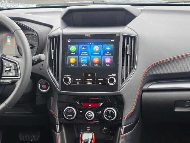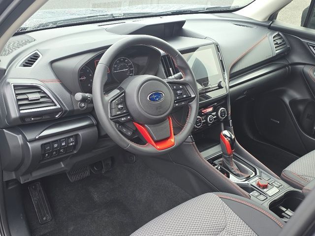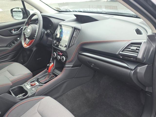 Stock Number: S413716, VIN Number: JF2SKAGC1RH413716, Style Name: AWD Sport 4Dr Crossover, Make: Subaru, Model: Forester, Model Year: 2024, Type: Wagon, Vehicle Trim: Sport, Interior Color: Gray, Exterior Color: Magnetite Gray Metallic, Body Type: Wagon, MPG Automatic City: 26, MPG Automatic Highway: 33, Engine Description: 2.5L 4-Cylinder DOHC 16V, Fuel Type: Gasoline, Fuel Induction: DI, Valves Per Cylinder: 4, Aspiration: Naturally Aspirated, 4WD Type: Full Time, Transmission: Lineartronic CVT, Wheels Rims: Painted Aluminum Alloy, Wheels Spare Rim Type: Steel, Drive Train Type: AWD, Independent Suspension: Four-Wheel, Stabilizer Bar: Front And Rear, Clock, External Temp, Low Fuel Level, Tachometer, Front Wipers: Variable Intermittent, Privacy Glass, Rear Defogger, Rear Wiper: Intermittent, Auto-On In Reverse, With Washer, Sunroof: One-Touch Open/Close, Sliding Sunshade, Anti-Trapping, Power Panoramic, Antenna Type: Diversity, Mast, Audio System: AM/FM, HD Radio, Voice Operated, Touch Screen Display, Speakers: 6, Drivers: Heated, Drivers Height: Power, Drivers Lumbar: Power, Drivers Power: 10, Passenger: Heated, Seating Capacity: 5, Front Seat Type: Bucket, Upholstery: Cloth, Center Armrest, Folding: Split, Center Console: Front Console With Armrest And Storage, Illuminated, Organizer Tray, Cupholders: Front, Rear, Overhead Console: Front, Power Outlets: 12V Cargo Area, 12V Rear, 12V Front, USB Front, Seatback Storage, Steering Adjustment: Tilt And Telescopic, Steering Power: Variable/Speed-Proportional, Steering Wheel Control: Audio, Cruise Control, Phone, Multi-Function, Paddle Shifter, Voice Control, Power Mirrors, Power Door Locks: Anti-Lockout, Auto-Locking, Windows: Power Windows, Satellite Communication: Voice Guided Directions, Air Conditioning: Automatic Climate Control, Air Filtration, Trunk Lights, Center Console Trim: Leatherette, Dash Trim: Metallic, Door Trim: Leatherette, Mats: Rear, Front, Reading Lights: Front, Rear, Shift Knob: Leather, Steering Wheel Trim: Leather, Vanity Mirrors: Dual Illuminating, Bumpers: Body-Color, NHTSA Passenger Grade: Excellent, NHTSA Driver Grade: Excellent, NHTSA Side Impact Front Grade: Excellent, NHTSA Side Impact Back Grade: Excellent, NHTSA Roll Over Resistance Rating: Good, ABS: 4-Wheel, Anti Theft System: Alarm, Vehicle Immobilizer, Brake Assist, Safety Locks, Cornering Lights, Daytime Running Light, Fog Lights: LED, Headlights Auto Delay, Front Headrests: 2, Adjustable, Rear Headrests: 3, Adjustable, Safety Signal Mirrors, Safety Stability Control, Driver and Passenger Airbag, Side Airbag, Stability Control, Front Head Room: 40.2 Inches, Front Hip Room: 54.1 Inches, Front Shoulder Room: 58.1 Inches, Front Leg Room: 43.3 Inches, Rear Head Room: 37.6 Inches, Rear Hip Room: 53.6 Inches, Rear Leg Room: 39.4 Inches, Rear Shoulder Room: 57.2 Inches, Luggage Capacity: 26.9 Cu.Ft., Maximum Seating: 5, Length: 182.7 Inches, Width: 81.3 Inches, Height: 68.1 Inches, Wheelbase: 105.1 Inches, Ground Clearance: 8.7 Inches, Max Gross Vehicle Weight: 4891 Lbs., Curb Weight: 3538 Lbs.