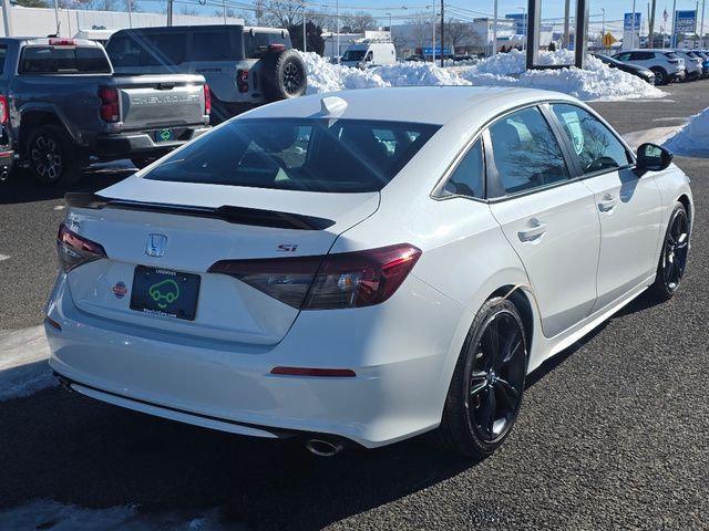 Stock Number: L477921, VIN Number: 2HGFE1E57SH477921, Make: Honda, Model: Civic, Model Year: 2025, Type: Sedan, Body Type: Sedan, Exterior Color: Platinum White Pearl, Interior Color: Black/Red, MPG Manual City: 27, MPG Manual Highway: 37, Engine Description: 1.5L I4 DOHC 16V, Fuel Type: Gasoline, Fuel Induction: DI, Valves Per Cylinder: 4, Aspiration: Turbocharged, Differential Limited Slip: Front, Transmission: 6-Speed Manual, Wheels Rims: Painted Aluminum Alloy, Drive Train Type: FWD, Independent Suspension: Four-Wheel, Stabilizer Bar: Front And Rear, Clock, External Temp, Low Fuel Level, Tachometer, Front Wipers: Speed Sensitive, Variable Intermittent, Rear Defogger, Sunroof: One-Touch Open/Close, Sliding Sunshade, Anti-Trapping, Power Glass, Tilt/Slide, Antenna Type: Diversity, Mast, Audio System: AM/FM, HD Radio, Voice Operated, Touch Screen Display, Premium Brand: Bose, Speakers: 11, Drivers: Heated, Drivers Height: Manual, Passenger: Heated, Seating Capacity: 5, Front Seat Type: Sport Bucket, Upholstery: Cloth, Center Armrest, Folding: Split, Center Console: Front Console With Armrest And Storage, Cupholders: Front, Rear, Overhead Console: Front, Power Outlets: 12V Front, USB Front, Seatback Storage, Steering Adjustment: Tilt And Telescopic, Steering Power: Variable/Speed-Proportional, Steering Wheel Control: Audio, Cruise Control, Phone, Multi-Function, Voice Control, Power Mirrors, Power Door Locks: Anti-Lockout, Auto-Locking, Windows: Power Windows, Air Conditioning: Automatic Climate Control, Air Filtration, Trunk Lights, Dash Trim: Metallic, Door Trim: Cloth, Mats: Rear, Front, Reading Lights: Front, Shift Knob: Leather, Aluminum, Steering Wheel Trim: Leather, Vanity Mirrors: Dual Illuminating, Bumpers: Body-Color, NHTSA Passenger Grade: Good, NHTSA Driver Grade: Excellent, NHTSA Side Impact Front Grade: Excellent, NHTSA Side Impact Back Grade: Excellent, NHTSA Roll Over Resistance Rating: Excellent, ABS: 4-Wheel, Anti Theft System: Alarm, Vehicle Immobilizer, Brake Assist, Safety Locks, Daytime Running Light: LED, Headlights Auto Delay, Front Headrests: Integrated, 2, Rear Headrests: 3, Adjustable, Safety Stability Control, Trunk Release, Driver And Passenger Airbag, Side Airbag, Stability Control, Front Head Room: 37.6 Inches, Front Hip Room: 54.3 Inches, Front Shoulder Room: 57.0 Inches, Front Leg Room: 42.3 Inches, Rear Head Room: 37.1 Inches, Rear Hip Room: 48.9 Inches, Rear Leg Room: 37.4 Inches, Rear Shoulder Room: 56.0 Inches, Luggage Capacity: 14.4 Cu.Ft., Maximum Seating: 5, Length: 184.0 Inches, Width: 70.9 Inches, Height: 55.5 Inches, Wheelbase: 107.7 Inches, Curb Weight: 2952 Lbs.
