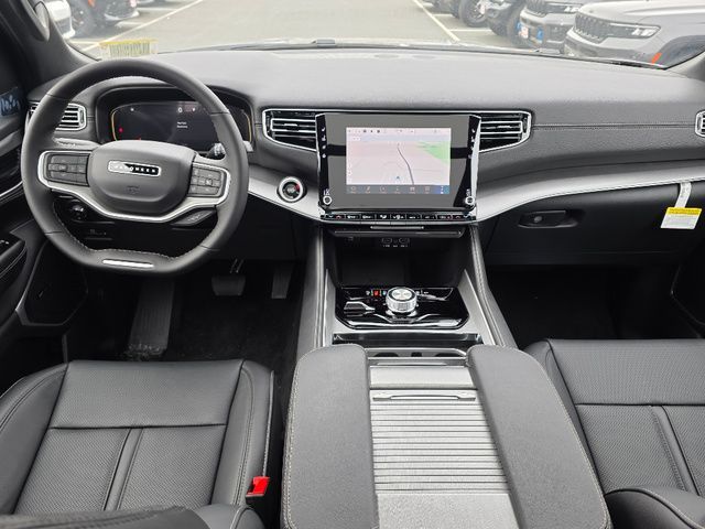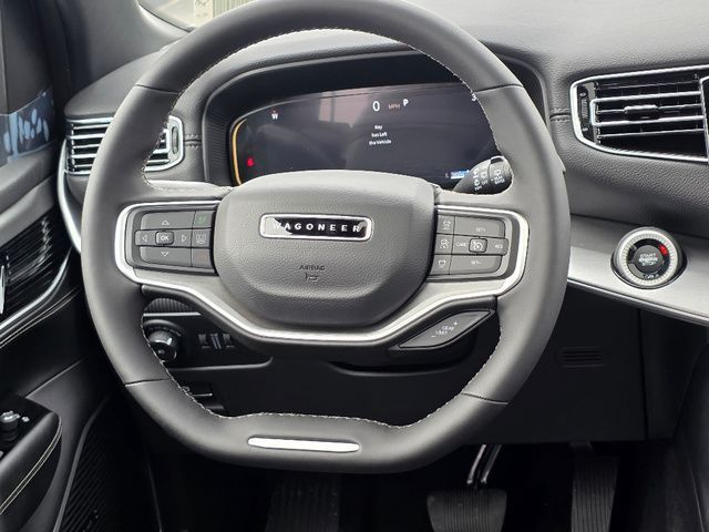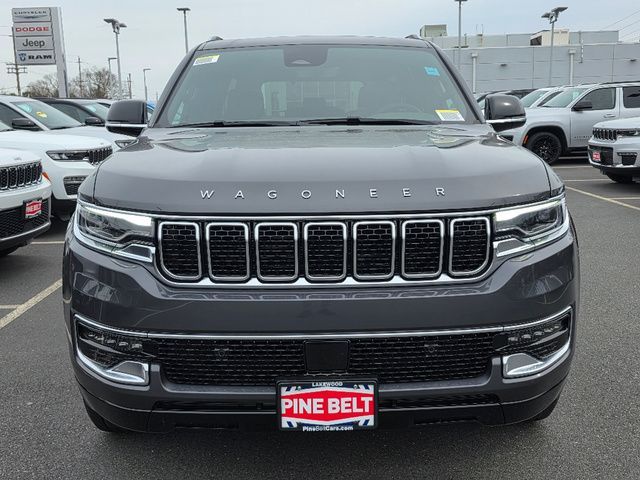 Stock Number: 2114Z, VIN Number: 1C4SJVAP1SS502389, Style Name: 4X4 4Dr SUV, Make: Jeep, Model: Wagoneer, Model Year: 2025, Type: SUV, Interior Color: Global Black, Exterior Color: Gray, Body Type: SUV, Engine Description: 3.0L I6, Fuel Type: Gasoline, Fuel Induction: DI, Valves Per Cylinder: 4, Aspiration: Twin-Turbocharged, 4WD Type: Full Time, Transmission: 8-Speed Automatic, Wheels Rims: Painted Aluminum Alloy, Wheels Spare Rim Type: Aluminum Alloy, Drive Train Type: 4WD, Independent Suspension: Four-Wheel, Leveling Suspension, Stabilizer Bar: Front And Rear, Clock, Compass, External Temp, Low Fuel Level, Tachometer, Front Wipers: Speed Sensitive, Variable Intermittent, Privacy Glass, Rear Defogger, Rear Wiper: Intermittent, With Washer, Antenna Type: Diversity, Mast, Audio System: AM/FM, HD Radio, Voice Operated, Touch Screen Display, Premium Brand: Alpine, Speakers: 8, Drivers: Heated, Drivers Height: Power, Drivers Lumbar: 4-Way Power Lumbar, Drivers Power: 8, Drivers Ventilated, Passenger: Heated, Passenger Height: Power, Passenger Lumbar: 4-Way Power Lumbar, Passenger Power: 8, Passenger Ventilated, Seating Capacity: 8, Front Seat Type: Bucket, Upholstery: Leather-Trimmed, Folding: Split, Flat, Power, Folding Thirdrow Seat: Split, Flat, Thirdrow Seat Type: 40-60 Split Bench, Cargo Nets, Center Console: Front Console With Armrest And Storage, Cupholders: Front, Third Row, Rear, Overhead Console: Front, Power Outlets: 12V Cargo Area, 12V Rear, 115V Rear, 12V Front, USB Front, USB-C Front, USB Rear, USB-C Rear, USB Third Row, USB-C Third Row, Seatback Storage, Steering Adjustment: Power Tilt And Telescopic, Steering Power: Variable/Speed-Proportional, Steering Wheel Control: Audio, Cruise Control, Phone, Multi-Function, Voice Control, Universal Remote Transmitter: Garage Door Opener, Auto Dimming Mirrors, Power Mirrors, Reverse Tilt Mirror, Power Door Locks: Auto-Locking, Windows: Power Windows, Navigation System: Hard Drive, Touch Screen Display, Voice Operated, Memory Features Number of Drivers: 2 Driver, Memory Features Steering Wheel, Air Conditioning: Automatic Climate Control, Air Filtration, Trunk Lights, Door Trim: Leather, Mats: Third Row, Rear, Front, Reading Lights: Front, Rear, Steering Wheel Trim: Leatherette, Vanity Mirrors: Dual Illuminating, Bumpers: Body-Color, Running Boards, NHTSA Passenger Grade: Good, NHTSA Driver Grade: Excellent, NHTSA Side Impact Front Grade: Excellent, NHTSA Side Impact Back Grade: Excellent, NHTSA Roll Over Resistance Rating: Average, ABS: 4-Wheel, Anti Theft System: Alarm, Vehicle Immobilizer, Brake Assist, Safety Locks, Daytime Running Light: LED, Fog Lights: Cornering, LED, Headlights Auto Delay, Front Headrests: 2, Adjustable, Rear Headrests: 3, Adjustable, Third Row Headrests: 3, Adjustable, Safety Signal Mirrors, Safety Stability Control, Driver and Passenger Airbag, Side Airbag, Stability Control, Trailer Hitch: Class IV, Front Head Room: 41.3 Inches, Front Hip Room: 63.4 Inches, Front Shoulder Room: 66.1 Inches, Front Leg Room: 40.9 Inches, Rear Head Room: 40.0 Inches, Rear Hip Room: 63.0 Inches, Rear Leg Room: 42.7 Inches, Rear Shoulder Room: 65.2 Inches, Luggage Capacity: 27.4 Cu.Ft., Maximum Seating: 8, Length: 214.7 Inches, Width: 94.0 Inches, Height: 79.7 Inches, Wheelbase: 123.0 Inches, Ground Clearance: 8.3 Inches, Max Gross Vehicle Weight: 7500 Lbs., Curb Weight: 6190 Lbs.
