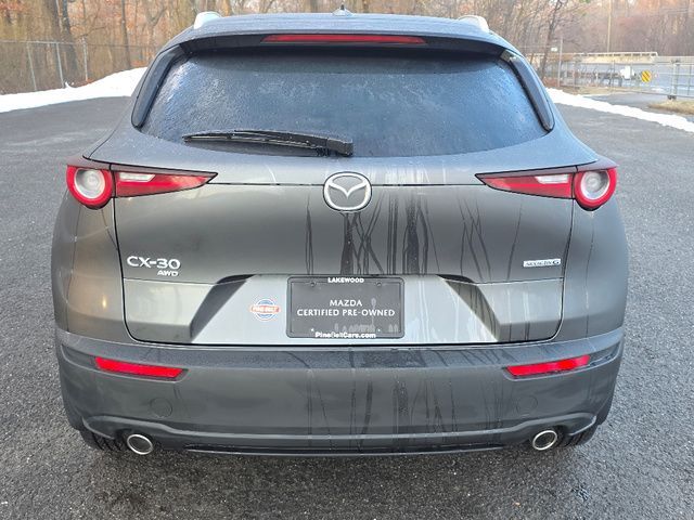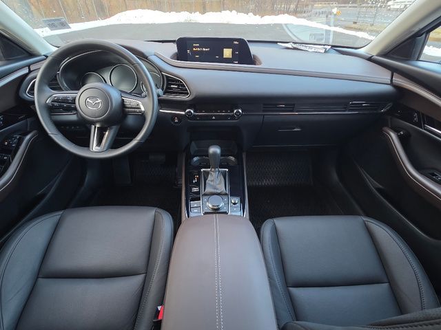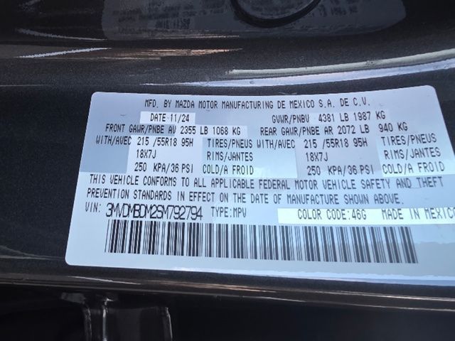 Stock Number: R792794, VIN Number: 3MVDMBDM2SM792794, Style Name: AWD 2.5 S Premium 4Dr SUV, Make: Mazda, Model: CX-30, Model Year: 2025, Type: SUV, Vehicle Trim: 2.5 S Premium Package, Interior Color: Black, Exterior Color: Aero Gray Metallic, Body Type: SUV, Engine Description: SKYACTIV? 2.5L 4-Cylinder DOHC 16V, Fuel Type: Gasoline, Fuel Induction: DI, Valves Per Cylinder: 4, Aspiration: Naturally Aspirated, 4WD Type: On Demand, Transmission: 6-Speed Automatic, Wheels Rims: Painted Aluminum Alloy, Wheels Spare Rim Type: Steel, Drive Train Type: AWD, Independent Suspension: Four-Wheel, Stabilizer Bar: Front, Clock, Compass, External Temp, Heads up Display, Low Fuel Level, Tachometer, Front Wipers: Speed Sensitive, Variable Intermittent, Rain Sensing, Privacy Glass, Rear Defogger, Rear Wiper: Intermittent, With Washer, Sunroof: One-Touch Open/Close, Sliding Sunshade, Anti-Trapping, Power Glass, Tilt/Slide, Antenna Type: Diversity, Mast, Audio System: AM/FM, HD Radio, Voice Operated, Premium Brand: Bose, Speakers: 11, Drivers: Heated, Drivers Height: Power, Drivers Lumbar: Power, Drivers Power: 8, Passenger: Heated, Seating Capacity: 5, Front Seat Type: Bucket, Upholstery: Leather-Trimmed, Center Armrest, Folding: Split, One-Touch Fold Flat, Center Console: Front Console With Armrest And Storage, Cupholders: Front, Rear, Overhead Console: Front, Power Outlets: USB-C Front, Seatback Storage, Steering Adjustment: Tilt And Telescopic, Steering Power: Variable/Speed-Proportional, Steering Wheel Control: Audio, Cruise Control, Phone, Multi-Function, Paddle Shifter, Voice Control, Power Mirrors, Reverse Tilt Mirror, Power Door Locks: Anti-Lockout, Auto-Locking, Windows: Power Windows, Navigation System: Touch Screen Display, Voice Operated, Memory Card, Memory Features Number of Drivers: 2 Driver, Air Conditioning: Automatic Climate Control, Sun Sensor Climate Control, Air Filtration, Trunk Lights, Door Trim: Cloth, Mats: Rear, Front, Reading Lights: Front, Rear, Shift Knob: Leather, Steering Wheel Trim: Leather, Vanity Mirrors: Dual Illuminating, Bumpers: Body-Color, NHTSA Passenger Grade: Excellent, NHTSA Driver Grade: Excellent, NHTSA Side Impact Front Grade: Excellent, NHTSA Side Impact Back Grade: Excellent, NHTSA Roll Over Resistance Rating: Good, ABS: 4-Wheel, Anti Theft System: Vehicle Immobilizer, Brake Assist, Safety Locks, Cornering Lights, Daytime Running Light: LED, Headlights Auto Delay, Front Headrests: 2, Adjustable, Rear Headrests: 3, Adjustable, Safety Signal Mirrors, Safety Stability Control, Driver and Passenger Airbag, Side Airbag, Stability Control, Front Head Room: 37.8 Inches, Front Hip Room: 54.6 Inches, Front Shoulder Room: 55.6 Inches, Front Leg Room: 41.7 Inches, Rear Head Room: 38.3 Inches, Rear Hip Room: 53.2 Inches, Rear Leg Room: 36.3 Inches, Rear Shoulder Room: 53.6 Inches, Luggage Capacity: 20.2 Cu.Ft., Maximum Seating: 5, Length: 173.0 Inches, Width: 70.7 Inches, Height: 62.2 Inches, Wheelbase: 104.4 Inches, Ground Clearance: 8.0 Inches, Max Gross Vehicle Weight: 4381 Lbs., Curb Weight: 3419 Lbs.