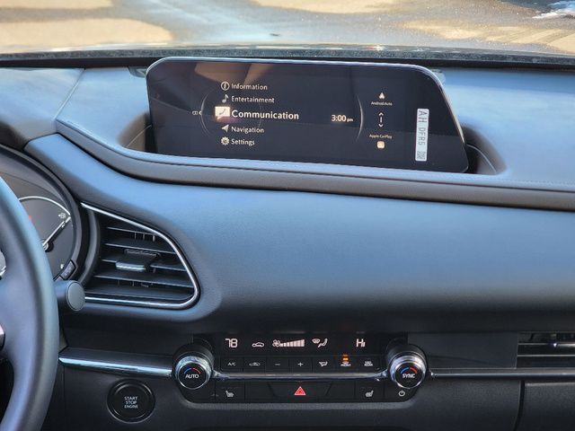 Stock Number: R786871, VIN Number: 3MVDMBDM8SM786871, Style Name: AWD 2.5 S Premium 4Dr SUV, Make: Mazda, Model: CX-30, Model Year: 2025, Type: SUV, Vehicle Trim: 2.5 S Premium Package, Interior Color: Black, Exterior Color: Jet Black Mica, Body Type: SUV, Engine Description: 2.5L I4, Fuel Type: Gasoline, Fuel Induction: DI, Valves Per Cylinder: 4, Aspiration: Naturally Aspirated, 4WD Type: On Demand, Transmission: 6-Speed Automatic, Wheels Rims: Painted Aluminum Alloy, Wheels Spare Rim Type: Steel, Drive Train Type: AWD, Independent Suspension: Four-Wheel, Stabilizer Bar: Front, Clock, Compass, External Temp, Heads Up Display, Low Fuel Level, Tachometer, Front Wipers: Speed Sensitive, Variable Intermittent, Rain Sensing, Privacy Glass, Rear Defogger, Rear Wiper: Intermittent, With Washer, Sunroof: One-Touch Open/Close, Sliding Sunshade, Anti-Trapping, Power Glass, Tilt/Slide, Antenna Type: Diversity, Mast, Audio System: AM/FM, HD Radio, Voice Operated, Premium Brand: Bose, Speakers: 11, Drivers: Heated, Drivers Height: Power, Drivers Lumbar: Power, Drivers Power: 8, Passenger: Heated, Seating Capacity: 5, Front Seat Type: Bucket, Upholstery: Leather-Trimmed, Center Armrest, Folding: Split, One-Touch Fold Flat, Center Console: Front Console With Armrest And Storage, Cupholders: Front, Rear, Overhead Console: Front, Power Outlets: USB-C Front, Seatback Storage, Steering Adjustment: Tilt And Telescopic, Steering Power: Variable/Speed-Proportional, Steering Wheel Control: Audio, Cruise Control, Phone, Multi-Function, Paddle Shifter, Voice Control, Power Mirrors, Reverse Tilt Mirror, Power Door Locks: Anti-Lockout, Auto-Locking, Windows: Power Windows, Navigation System: Touch Screen Display, Voice Operated, Memory Card, Memory Features Number Of Drivers: 2 Driver, Air Conditioning: Automatic Climate Control, Sun Sensor Climate Control, Air Filtration, Trunk Lights, Door Trim: Cloth, Mats: Rear, Front, Reading Lights: Front, Rear, Shift Knob: Leather, Steering Wheel Trim: Leather, Vanity Mirrors: Dual Illuminating, Bumpers: Body-Color, NHTSA Passenger Grade: Excellent, NHTSA Driver Grade: Excellent, NHTSA Side Impact Front Grade: Excellent, NHTSA Side Impact Back Grade: Excellent, NHTSA Roll Over Resistance Rating: Good, ABS: 4-Wheel, Anti Theft System: Vehicle Immobilizer, Brake Assist, Safety Locks, Cornering Lights, Daytime Running Light: LED, Headlights Auto Delay, Front Headrests: 2, Adjustable, Rear Headrests: 3, Adjustable, Safety Signal Mirrors, Safety Stability Control, Driver And Passenger Airbag, Side Airbag, Stability Control, Front Head Room: 37.8 Inches, Front Hip Room: 54.6 Inches, Front Shoulder Room: 55.6 Inches, Front Leg Room: 41.7 Inches, Rear Head Room: 38.3 Inches, Rear Hip Room: 53.2 Inches, Rear Leg Room: 36.3 Inches, Rear Shoulder Room: 53.6 Inches, Luggage Capacity: 20.2 Cu.Ft., Maximum Seating: 5, Length: 173.0 Inches, Width: 70.7 Inches, Height: 62.2 Inches, Wheelbase: 104.4 Inches, Ground Clearance: 8.0 Inches, Max Gross Vehicle Weight: 4381 Lbs., Curb Weight: 3419 Lbs.