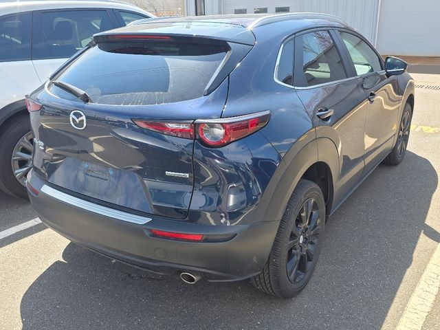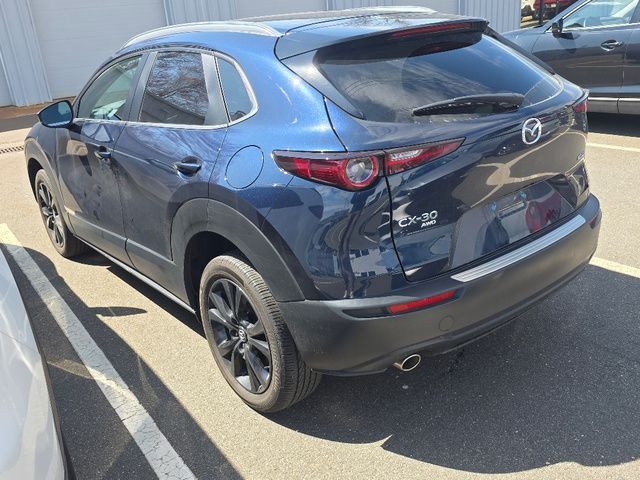 Stock Number: M786921, VIN Number: 3MVDMBBM4SM786921, Style Name: AWD 2.5 S Select Sport 4Dr SUV, Make: Mazda, Model: CX-30, Model Year: 2025, Type: SUV, Vehicle Trim: 2.5 S Select Sport, Interior Color: Black, Exterior Color: Deep Crystal Blue Mica, Body Type: SUV, Engine Description: SKYACTIV? 2.5L 4-Cylinder DOHC 16V, Fuel Type: Gasoline, Fuel Induction: DI, Valves Per Cylinder: 4, Aspiration: Naturally Aspirated, 4WD Type: On Demand, Transmission: 6-Speed Automatic, Wheels Rims: Painted Aluminum Alloy, Wheels Spare Rim Type: Steel, Drive Train Type: AWD, Independent Suspension: Four-Wheel, Stabilizer Bar: Front, Clock, Compass, External Temp, Low Fuel Level, Tachometer, Front Wipers: Speed Sensitive, Variable Intermittent, Rain Sensing, Privacy Glass, Rear Defogger, Rear Wiper: Intermittent, With Washer, Antenna Type: Element, Audio System: AM/FM, Voice Operated, Speakers: 6, Drivers Height: Manual, Seating Capacity: 5, Front Seat Type: Bucket, Upholstery: Leatherette, Center Armrest, Folding: Split, One-Touch Fold Flat, Center Console: Front Console With Armrest And Storage, Cupholders: Front, Rear, Overhead Console: Front, Power Outlets: USB-C Front, Seatback Storage, Steering Adjustment: Tilt And Telescopic, Steering Power: Variable/Speed-Proportional, Steering Wheel Control: Audio, Cruise Control, Phone, Multi-Function, Voice Control, Power Mirrors, Power Door Locks: Anti-Lockout, Auto-Locking, Windows: Power Windows, Air Conditioning: Automatic Climate Control, Sun Sensor Climate Control, Air Filtration, Trunk Lights, Door Trim: Cloth, Mats: Rear, Front, Reading Lights: Front, Rear, Shift Knob: Leather, Steering Wheel Trim: Leather, Vanity Mirrors: Dual Illuminating, Bumpers: Body-Color, NHTSA Passenger Grade: Excellent, NHTSA Driver Grade: Excellent, NHTSA Side Impact Front Grade: Excellent, NHTSA Side Impact Back Grade: Excellent, NHTSA Roll Over Resistance Rating: Good, ABS: 4-Wheel, Anti Theft System: Vehicle Immobilizer, Brake Assist, Safety Locks, Daytime Running Light: LED, Headlights Auto Delay, Front Headrests: 2, Adjustable, Rear Headrests: 3, Adjustable, Safety Signal Mirrors, Safety Stability Control, Driver And Passenger Airbag, Side Airbag, Stability Control, Front Head Room: 38.1 Inches, Front Hip Room: 54.6 Inches, Front Shoulder Room: 55.6 Inches, Front Leg Room: 41.7 Inches, Rear Head Room: 38.3 Inches, Rear Hip Room: 53.2 Inches, Rear Leg Room: 36.3 Inches, Rear Shoulder Room: 53.6 Inches, Luggage Capacity: 20.2 Cu.Ft., Maximum Seating: 5, Length: 173.0 Inches, Width: 70.7 Inches, Height: 61.7 Inches, Wheelbase: 104.4 Inches, Ground Clearance: 8.0 Inches, Max Gross Vehicle Weight: 4381 Lbs., Curb Weight: 3419 Lbs.