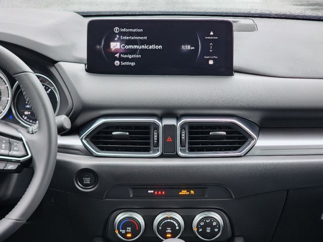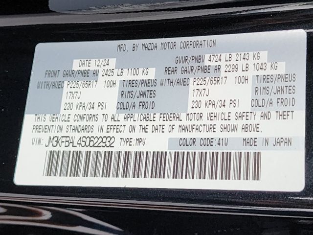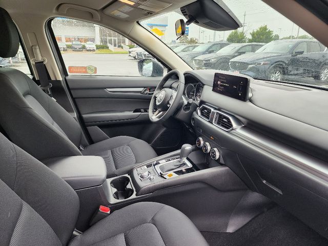 Stock Number: M622932L, VIN Number: JM3KFBAL4S0622932, Style Name: AWD 2.5 S 4Dr SUV, Make: Mazda, Model: CX-5, Model Year: 2025, Type: SUV, Vehicle Trim: 2.5 S, Interior Color: Black, Exterior Color: Jet Black Mica, Body Type: SUV, Engine Description: 2.5L I4, Fuel Type: Gasoline, Fuel Induction: DI, Valves Per Cylinder: 4, Aspiration: Naturally Aspirated, 4WD Type: On Demand, Transmission: 6-Speed Automatic, Wheels Rims: Painted Aluminum Alloy, Wheels Spare Rim Type: Steel, Drive Train Type: AWD, Independent Suspension: Four-Wheel, Stabilizer Bar: Front And Rear, Clock, Compass, External Temp, Low Fuel Level, Tachometer, Front Wipers: Speed Sensitive, Variable Intermittent, Rain Sensing, Rear Defogger, Rear Wiper: Intermittent, With Washer, Antenna Type: Mast, Audio System: AM/FM, HD Radio, Voice Operated, Touch Screen Display, Speakers: 4, Drivers Height: Manual, Seating Capacity: 5, Front Seat Type: Bucket, Upholstery: Cloth, Folding: Split, One-Touch Fold Flat, Center Console: Front Console With Armrest And Storage, Cupholders: Front, Rear, Overhead Console: Front, Power Outlets: 12V Cargo Area, 12V Front, USB-C Front, Seatback Storage, Steering Adjustment: Tilt And Telescopic, Steering Power: Variable/Speed-Proportional, Steering Wheel Control: Audio, Cruise Control, Phone, Multi-Function, Voice Control, Power Mirrors, Power Door Locks: Anti-Lockout, Auto-Locking, Windows: Power Windows, Air Conditioning, Air Filtration, Trunk Lights, Mats: Rear, Front, Reading Lights: Front, Rear, Shift Knob: Leather, Steering Wheel Trim: Leather, Vanity Mirrors: Dual, Bumpers: Body-Color, NHTSA Passenger Grade: Excellent, NHTSA Driver Grade: Excellent, NHTSA Side Impact Front Grade: Excellent, NHTSA Side Impact Back Grade: Excellent, NHTSA Roll Over Resistance Rating: Good, ABS: 4-Wheel, Anti Theft System: Vehicle Immobilizer, Brake Assist, Safety Locks, Daytime Running Light: LED, Headlights Auto Delay, Front Headrests: 2, Adjustable, Rear Headrests: 3, Adjustable, Safety Signal Mirrors, Safety Stability Control, Driver And Passenger Airbag, Side Airbag, Stability Control, Front Head Room: 39.7 Inches, Front Hip Room: 55.2 Inches, Front Shoulder Room: 57.1 Inches, Front Leg Room: 41.0 Inches, Rear Head Room: 39.0 Inches, Rear Hip Room: 55.3 Inches, Rear Leg Room: 39.6 Inches, Rear Shoulder Room: 54.8 Inches, Luggage Capacity: 30.8 Cu.Ft., Maximum Seating: 5, Length: 180.1 Inches, Width: 83.3 Inches, Height: 66.1 Inches, Wheelbase: 106.2 Inches, Ground Clearance: 7.6 Inches, Max Gross Vehicle Weight: 4724 Lbs., Curb Weight: 3679 Lbs.