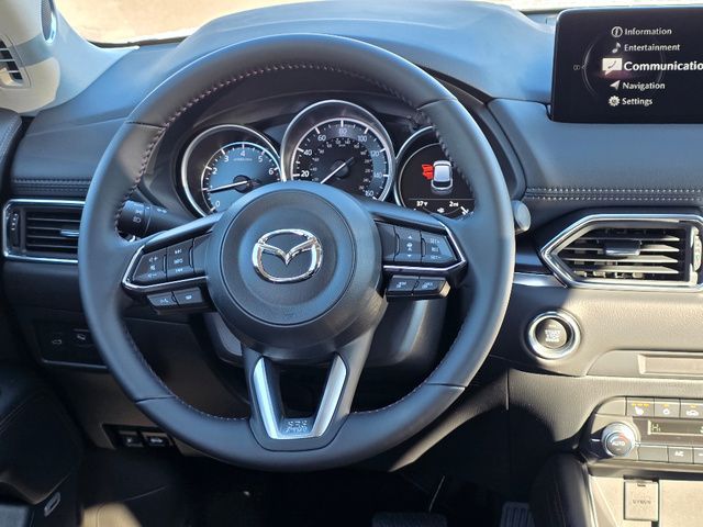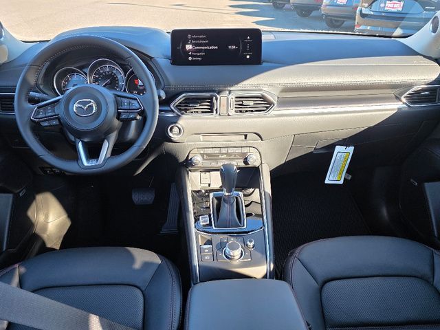 Stock Number: 4369Z, VIN Number: JM3KFBCM7S0757733, Style Name: AWD 2.5 S Carbon Edition 4Dr SUV, Make: Mazda, Model: CX-5, Model Year: 2025, Type: SUV, Vehicle Trim: 2.5 S Carbon Edition, Interior Color: Black, Exterior Color: Rhodium White Metallic, Body Type: SUV, Engine Description: SKYACTIV? 2.5L 4-Cylinder DOHC 16V, Fuel Type: Gasoline, Fuel Induction: DI, Valves Per Cylinder: 4, Aspiration: Naturally Aspirated, 4WD Type: On Demand, Transmission: 6-Speed Automatic, Wheels Rims: Painted Aluminum Alloy, Wheels Spare Rim Type: Steel, Drive Train Type: AWD, Independent Suspension: Four-Wheel, Stabilizer Bar: Front And Rear, Clock, Compass, External Temp, Low Fuel Level, Tachometer, Front Wipers: Speed Sensitive, Variable Intermittent, Rain Sensing, Privacy Glass, Rear Defogger, Rear Wiper: Intermittent, With Washer, Sunroof: One-Touch Open/Close, Sliding Sunshade, Anti-Trapping, Power Glass, Tilt/Slide, Antenna Type: Mast, Audio System: AM/FM, HD Radio, Voice Operated, Touch Screen Display, Premium Brand: Bose, Speakers: 9, Drivers: Heated, Drivers Height: Power, Drivers Lumbar: Power, Drivers Power: 8, Passenger: Heated, Passenger Height: Power, Passenger Power: 6, Seating Capacity: 5, Front Seat Type: Bucket, Upholstery: Leather-Trimmed, Center Armrest, Folding: Split, One-Touch Fold Flat, Center Console: Front Console With Armrest And Storage, Cupholders: Front, Rear, Overhead Console: Front, Power Outlets: 12V Cargo Area, 12V Front, USB-C Front, USB Rear, Seatback Storage, Steering Adjustment: Tilt And Telescopic, Steering Power: Variable/Speed-Proportional, Steering Wheel Control: Audio, Cruise Control, Phone, Multi-Function, Voice Control, Universal Remote Transmitter: Homelink - Garage Door Opener, Auto Dimming Mirrors, Power Mirrors, Power Door Locks: Anti-Lockout, Auto-Locking, Windows: Power Windows, Memory Features Number of Drivers: 2 Driver, Air Conditioning: Automatic Climate Control, Sun Sensor Climate Control, Air Filtration, Trunk Lights, Door Trim: Leatherette, Mats: Rear, Front, Reading Lights: Front, Rear, Shift Knob: Leather, Steering Wheel Trim: Leather, Vanity Mirrors: Dual Illuminating, Bumpers: Body-Color, NHTSA Passenger Grade: Excellent, NHTSA Driver Grade: Excellent, NHTSA Side Impact Front Grade: Excellent, NHTSA Side Impact Back Grade: Excellent, NHTSA Roll Over Resistance Rating: Good, ABS: 4-Wheel, Anti Theft System: Vehicle Immobilizer, Brake Assist, Safety Locks, Daytime Running Light: LED, Headlights Auto Delay, Front Headrests: 2, Adjustable, Rear Headrests: 3, Adjustable, Safety Signal Mirrors, Safety Stability Control, Driver and Passenger Airbag, Side Airbag, Stability Control, Front Head Room: 39.3 Inches, Front Hip Room: 55.2 Inches, Front Shoulder Room: 57.1 Inches, Front Leg Room: 41.0 Inches, Rear Head Room: 39.0 Inches, Rear Hip Room: 55.3 Inches, Rear Leg Room: 39.6 Inches, Rear Shoulder Room: 54.8 Inches, Luggage Capacity: 30.8 Cu.Ft., Maximum Seating: 5, Length: 180.1 Inches, Width: 83.3 Inches, Height: 66.3 Inches, Wheelbase: 106.2 Inches, Ground Clearance: 7.9 Inches, Max Gross Vehicle Weight: 4724 Lbs., Curb Weight: 3752 Lbs.