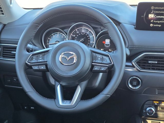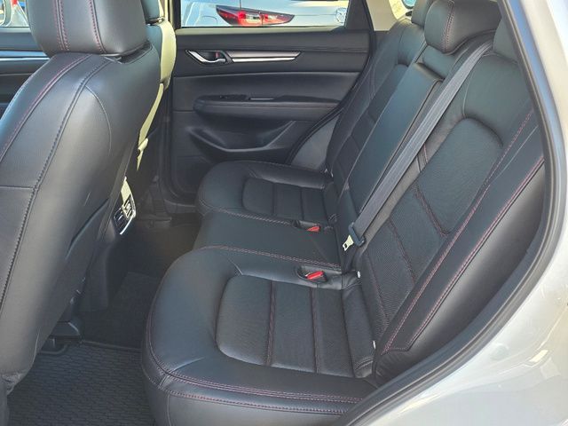 Stock Number: 4357Z, VIN Number: JM3KFBCM5S0758475, Style Name: AWD 2.5 S Carbon Edition 4Dr SUV, Make: Mazda, Model: CX-5, Model Year: 2025, Type: SUV, Vehicle Trim: 2.5 S Carbon Edition, Interior Color: Black, Exterior Color: Rhodium White Metallic, Body Type: SUV, Engine Description: SKYACTIV? 2.5L 4-Cylinder DOHC 16V, Fuel Type: Gasoline, Fuel Induction: DI, Valves Per Cylinder: 4, Aspiration: Naturally Aspirated, 4WD Type: On Demand, Transmission: 6-Speed Automatic, Wheels Rims: Painted Aluminum Alloy, Wheels Spare Rim Type: Steel, Drive Train Type: AWD, Independent Suspension: Four-Wheel, Stabilizer Bar: Front And Rear, Clock, Compass, External Temp, Low Fuel Level, Tachometer, Front Wipers: Speed Sensitive, Variable Intermittent, Rain Sensing, Privacy Glass, Rear Defogger, Rear Wiper: Intermittent, With Washer, Sunroof: One-Touch Open/Close, Sliding Sunshade, Anti-Trapping, Power Glass, Tilt/Slide, Antenna Type: Mast, Audio System: AM/FM, HD Radio, Voice Operated, Touch Screen Display, Premium Brand: Bose, Speakers: 9, Drivers: Heated, Drivers Height: Power, Drivers Lumbar: Power, Drivers Power: 8, Passenger: Heated, Passenger Height: Power, Passenger Power: 6, Seating Capacity: 5, Front Seat Type: Bucket, Upholstery: Leather-Trimmed, Center Armrest, Folding: Split, One-Touch Fold Flat, Center Console: Front Console With Armrest And Storage, Cupholders: Front, Rear, Overhead Console: Front, Power Outlets: 12V Cargo Area, 12V Front, USB-C Front, USB Rear, Seatback Storage, Steering Adjustment: Tilt And Telescopic, Steering Power: Variable/Speed-Proportional, Steering Wheel Control: Audio, Cruise Control, Phone, Multi-Function, Voice Control, Universal Remote Transmitter: Homelink - Garage Door Opener, Auto Dimming Mirrors, Power Mirrors, Power Door Locks: Anti-Lockout, Auto-Locking, Windows: Power Windows, Memory Features Number of Drivers: 2 Driver, Air Conditioning: Automatic Climate Control, Sun Sensor Climate Control, Air Filtration, Trunk Lights, Door Trim: Leatherette, Mats: Rear, Front, Reading Lights: Front, Rear, Shift Knob: Leather, Steering Wheel Trim: Leather, Vanity Mirrors: Dual Illuminating, Bumpers: Body-Color, NHTSA Passenger Grade: Excellent, NHTSA Driver Grade: Excellent, NHTSA Side Impact Front Grade: Excellent, NHTSA Side Impact Back Grade: Excellent, NHTSA Roll Over Resistance Rating: Good, ABS: 4-Wheel, Anti Theft System: Vehicle Immobilizer, Brake Assist, Safety Locks, Daytime Running Light: LED, Headlights Auto Delay, Front Headrests: 2, Adjustable, Rear Headrests: 3, Adjustable, Safety Signal Mirrors, Safety Stability Control, Driver and Passenger Airbag, Side Airbag, Stability Control, Front Head Room: 39.3 Inches, Front Hip Room: 55.2 Inches, Front Shoulder Room: 57.1 Inches, Front Leg Room: 41.0 Inches, Rear Head Room: 39.0 Inches, Rear Hip Room: 55.3 Inches, Rear Leg Room: 39.6 Inches, Rear Shoulder Room: 54.8 Inches, Luggage Capacity: 30.8 Cu.Ft., Maximum Seating: 5, Length: 180.1 Inches, Width: 83.3 Inches, Height: 66.3 Inches, Wheelbase: 106.2 Inches, Ground Clearance: 7.9 Inches, Max Gross Vehicle Weight: 4724 Lbs., Curb Weight: 3752 Lbs.