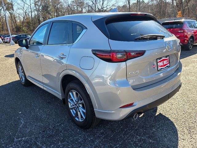 Stock Number: 4295Z, VIN Number: JM3KFBCM5S0755754, Style Name: AWD 2.5 S Preferred 4Dr SUV, Make: Mazda, Model: CX-5, Model Year: 2025, Type: SUV, Vehicle Trim: 2.5 S Preferred Package, Interior Color: Black, Exterior Color: Silver, Body Type: SUV, Engine Description: SKYACTIV? 2.5L 4-Cylinder DOHC 16V, Fuel Type: Gasoline, Fuel Induction: DI, Valves Per Cylinder: 4, Aspiration: Naturally Aspirated, 4WD Type: On Demand, Transmission: 6-Speed Automatic, Wheels Rims: Painted Aluminum Alloy, Wheels Spare Rim Type: Steel, Drive Train Type: AWD, Independent Suspension: Four-Wheel, Stabilizer Bar: Front And Rear, Clock, Compass, External Temp, Low Fuel Level, Tachometer, Front Wipers: Speed Sensitive, Variable Intermittent, Rain Sensing, Privacy Glass, Rear Defogger, Rear Wiper: Intermittent, With Washer, Sunroof: One-Touch Open/Close, Sliding Sunshade, Anti-Trapping, Power Glass, Tilt/Slide, Antenna Type: Mast, Audio System: AM/FM, HD Radio, Voice Operated, Touch Screen Display, Speakers: 6, Drivers: Heated, Drivers Height: Power, Drivers Lumbar: Power, Drivers Power: 8, Passenger: Heated, Passenger Height: Power, Passenger Power: 6, Seating Capacity: 5, Front Seat Type: Bucket, Upholstery: Leather-Trimmed, Center Armrest, Folding: Split, One-Touch Fold Flat, Center Console: Front Console With Armrest And Storage, Cupholders: Front, Rear, Overhead Console: Front, Power Outlets: 12V Cargo Area, 12V Front, USB-C Front, USB Rear, Seatback Storage, Steering Adjustment: Tilt And Telescopic, Steering Power: Variable/Speed-Proportional, Steering Wheel Control: Audio, Cruise Control, Phone, Multi-Function, Voice Control, Universal Remote Transmitter: Homelink - Garage Door Opener, Auto Dimming Mirrors, Power Mirrors, Power Door Locks: Anti-Lockout, Auto-Locking, Windows: Power Windows, Memory Features Number of Drivers: 2 Driver, Air Conditioning: Automatic Climate Control, Sun Sensor Climate Control, Air Filtration, Trunk Lights, Door Trim: Leatherette, Mats: Rear, Front, Reading Lights: Front, Rear, Shift Knob: Leather, Steering Wheel Trim: Leather, Vanity Mirrors: Dual Illuminating, Bumpers: Body-Color, NHTSA Passenger Grade: Excellent, NHTSA Driver Grade: Excellent, NHTSA Side Impact Front Grade: Excellent, NHTSA Side Impact Back Grade: Excellent, NHTSA Roll Over Resistance Rating: Good, ABS: 4-Wheel, Anti Theft System: Vehicle Immobilizer, Brake Assist, Safety Locks, Daytime Running Light: LED, Headlights Auto Delay, Front Headrests: 2, Adjustable, Rear Headrests: 3, Adjustable, Safety Signal Mirrors, Safety Stability Control, Driver and Passenger Airbag, Side Airbag, Stability Control, Front Head Room: 39.3 Inches, Front Hip Room: 55.2 Inches, Front Shoulder Room: 57.1 Inches, Front Leg Room: 41.0 Inches, Rear Head Room: 39.0 Inches, Rear Hip Room: 55.3 Inches, Rear Leg Room: 39.6 Inches, Rear Shoulder Room: 54.8 Inches, Luggage Capacity: 30.8 Cu.Ft., Maximum Seating: 5, Length: 180.1 Inches, Width: 83.3 Inches, Height: 66.1 Inches, Wheelbase: 106.2 Inches, Ground Clearance: 7.6 Inches, Max Gross Vehicle Weight: 4724 Lbs., Curb Weight: 3752 Lbs.