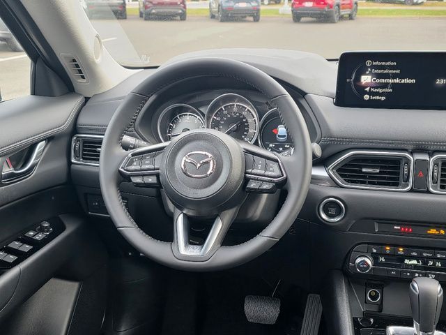 Stock Number: 4472Z, VIN Number: JM3KFBCM3S0770351, Style Name: AWD 2.5 S Preferred 4Dr SUV, Make: Mazda, Model: CX-5, Model Year: 2025, Type: SUV, Vehicle Trim: 2.5 S Preferred Package, Interior Color: Black, Exterior Color: Blue, Body Type: SUV, Engine Description: SKYACTIV? 2.5L 4-Cylinder DOHC 16V, Fuel Type: Gasoline, Fuel Induction: DI, Valves Per Cylinder: 4, Aspiration: Naturally Aspirated, 4WD Type: On Demand, Transmission: 6-Speed Automatic, Wheels Rims: Painted Aluminum Alloy, Wheels Spare Rim Type: Steel, Drive Train Type: AWD, Independent Suspension: Four-Wheel, Stabilizer Bar: Front And Rear, Clock, Compass, External Temp, Low Fuel Level, Tachometer, Front Wipers: Speed Sensitive, Variable Intermittent, Rain Sensing, Privacy Glass, Rear Defogger, Rear Wiper: Intermittent, With Washer, Sunroof: One-Touch Open/Close, Sliding Sunshade, Anti-Trapping, Power Glass, Tilt/Slide, Antenna Type: Mast, Audio System: AM/FM, HD Radio, Voice Operated, Touch Screen Display, Speakers: 6, Drivers: Heated, Drivers Height: Power, Drivers Lumbar: Power, Drivers Power: 8, Passenger: Heated, Passenger Height: Power, Passenger Power: 6, Seating Capacity: 5, Front Seat Type: Bucket, Upholstery: Leather-Trimmed, Center Armrest, Folding: Split, One-Touch Fold Flat, Center Console: Front Console With Armrest And Storage, Cupholders: Front, Rear, Overhead Console: Front, Power Outlets: 12V Cargo Area, 12V Front, USB-C Front, USB Rear, Seatback Storage, Steering Adjustment: Tilt And Telescopic, Steering Power: Variable/Speed-Proportional, Steering Wheel Control: Audio, Cruise Control, Phone, Multi-Function, Voice Control, Universal Remote Transmitter: Homelink - Garage Door Opener, Auto Dimming Mirrors, Power Mirrors, Power Door Locks: Anti-Lockout, Auto-Locking, Windows: Power Windows, Memory Features Number of Drivers: 2 Driver, Air Conditioning: Automatic Climate Control, Sun Sensor Climate Control, Air Filtration, Trunk Lights, Door Trim: Leatherette, Mats: Rear, Front, Reading Lights: Front, Rear, Shift Knob: Leather, Steering Wheel Trim: Leather, Vanity Mirrors: Dual Illuminating, Bumpers: Body-Color, NHTSA Passenger Grade: Excellent, NHTSA Driver Grade: Excellent, NHTSA Side Impact Front Grade: Excellent, NHTSA Side Impact Back Grade: Excellent, NHTSA Roll Over Resistance Rating: Good, ABS: 4-Wheel, Anti Theft System: Vehicle Immobilizer, Brake Assist, Safety Locks, Daytime Running Light: LED, Headlights Auto Delay, Front Headrests: 2, Adjustable, Rear Headrests: 3, Adjustable, Safety Signal Mirrors, Safety Stability Control, Driver and Passenger Airbag, Side Airbag, Stability Control, Front Head Room: 39.3 Inches, Front Hip Room: 55.2 Inches, Front Shoulder Room: 57.1 Inches, Front Leg Room: 41.0 Inches, Rear Head Room: 39.0 Inches, Rear Hip Room: 55.3 Inches, Rear Leg Room: 39.6 Inches, Rear Shoulder Room: 54.8 Inches, Luggage Capacity: 30.8 Cu.Ft., Maximum Seating: 5, Length: 180.1 Inches, Width: 83.3 Inches, Height: 66.1 Inches, Wheelbase: 106.2 Inches, Ground Clearance: 7.6 Inches, Max Gross Vehicle Weight: 4724 Lbs., Curb Weight: 3752 Lbs.