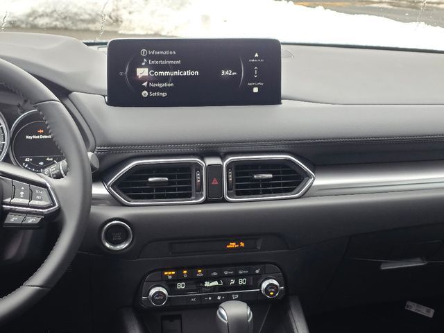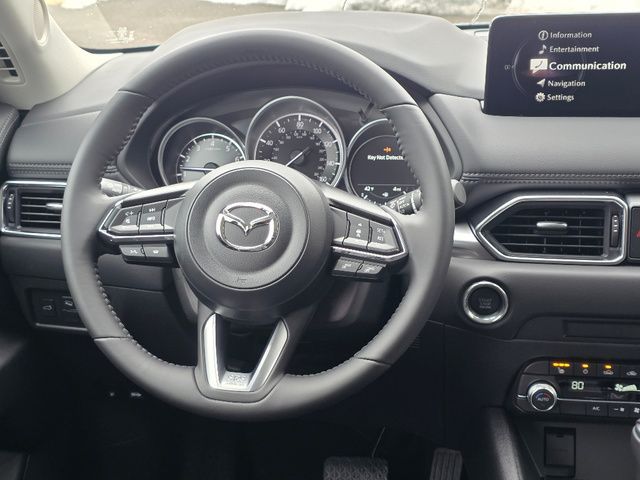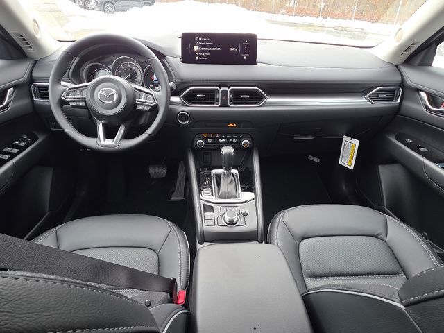 Stock Number: 25M0070, VIN Number: JM3KFBCM3S0794326, Style Name: AWD 2.5 S Preferred 4Dr SUV, Make: Mazda, Model: CX-5, Model Year: 2025, Type: SUV, Vehicle Trim: 2.5 S Preferred Package, Interior Color: Black, Exterior Color: Jet Black Mica, Body Type: SUV, Engine Description: SKYACTIV? 2.5L 4-Cylinder DOHC 16V, Fuel Type: Gasoline, Fuel Induction: DI, Valves Per Cylinder: 4, Aspiration: Naturally Aspirated, 4WD Type: On Demand, Transmission: 6-Speed Automatic, Wheels Rims: Painted Aluminum Alloy, Wheels Spare Rim Type: Steel, Drive Train Type: AWD, Independent Suspension: Four-Wheel, Stabilizer Bar: Front And Rear, Clock, Compass, External Temp, Low Fuel Level, Tachometer, Front Wipers: Speed Sensitive, Variable Intermittent, Rain Sensing, Privacy Glass, Rear Defogger, Rear Wiper: Intermittent, With Washer, Sunroof: One-Touch Open/Close, Sliding Sunshade, Anti-Trapping, Power Glass, Tilt/Slide, Antenna Type: Mast, Audio System: AM/FM, HD Radio, Voice Operated, Touch Screen Display, Speakers: 6, Drivers: Heated, Drivers Height: Power, Drivers Lumbar: Power, Drivers Power: 8, Passenger: Heated, Passenger Height: Power, Passenger Power: 6, Seating Capacity: 5, Front Seat Type: Bucket, Upholstery: Leather-Trimmed, Center Armrest, Folding: Split, One-Touch Fold Flat, Center Console: Front Console With Armrest And Storage, Cupholders: Front, Rear, Overhead Console: Front, Power Outlets: 12V Cargo Area, 12V Front, USB-C Front, USB Rear, Seatback Storage, Steering Adjustment: Tilt And Telescopic, Steering Power: Variable/Speed-Proportional, Steering Wheel Control: Audio, Cruise Control, Phone, Multi-Function, Voice Control, Universal Remote Transmitter: Homelink - Garage Door Opener, Auto Dimming Mirrors, Power Mirrors, Power Door Locks: Anti-Lockout, Auto-Locking, Windows: Power Windows, Memory Features Number of Drivers: 2 Driver, Air Conditioning: Automatic Climate Control, Sun Sensor Climate Control, Air Filtration, Trunk Lights, Door Trim: Leatherette, Mats: Rear, Front, Reading Lights: Front, Rear, Shift Knob: Leather, Steering Wheel Trim: Leather, Vanity Mirrors: Dual Illuminating, Bumpers: Body-Color, NHTSA Passenger Grade: Excellent, NHTSA Driver Grade: Excellent, NHTSA Side Impact Front Grade: Excellent, NHTSA Side Impact Back Grade: Excellent, NHTSA Roll Over Resistance Rating: Good, ABS: 4-Wheel, Anti Theft System: Alarm, Vehicle Immobilizer, Brake Assist, Safety Locks, Daytime Running Light: LED, Headlights Auto Delay, Front Headrests: 2, Adjustable, Rear Headrests: 3, Adjustable, Safety Signal Mirrors, Safety Stability Control, Driver and Passenger Airbag, Side Airbag, Stability Control, Front Head Room: 39.3 Inches, Front Hip Room: 55.2 Inches, Front Shoulder Room: 57.1 Inches, Front Leg Room: 41.0 Inches, Rear Head Room: 39.0 Inches, Rear Hip Room: 55.3 Inches, Rear Leg Room: 39.6 Inches, Rear Shoulder Room: 54.8 Inches, Luggage Capacity: 30.8 Cu.Ft., Maximum Seating: 5, Length: 180.1 Inches, Width: 83.3 Inches, Height: 66.1 Inches, Wheelbase: 106.2 Inches, Ground Clearance: 7.6 Inches, Max Gross Vehicle Weight: 4724 Lbs., Curb Weight: 3752 Lbs.
