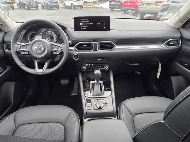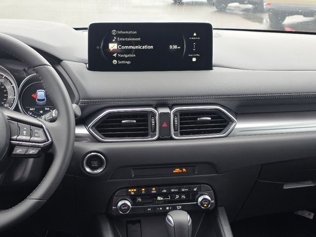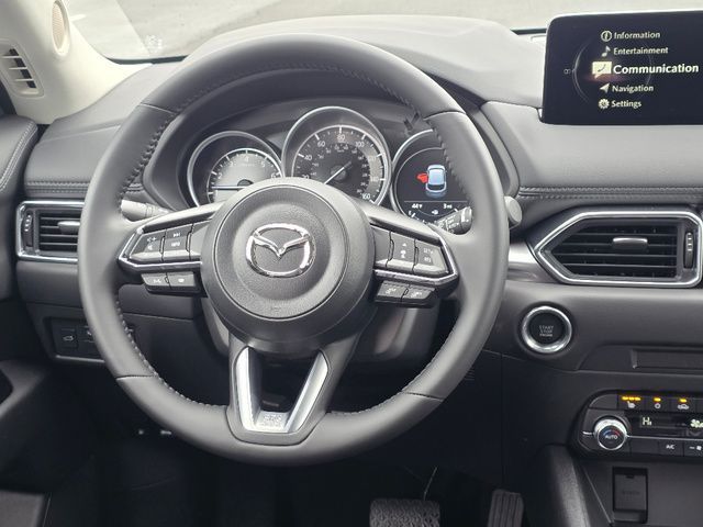 Stock Number: 25M0073, VIN Number: JM3KFBCM9S0793374, Style Name: AWD 2.5 S Preferred 4Dr SUV, Make: Mazda, Model: CX-5, Model Year: 2025, Type: SUV, Vehicle Trim: 2.5 S Preferred Package, Interior Color: Black, Exterior Color: Jet Black Mica, Body Type: SUV, Engine Description: SKYACTIV? 2.5L 4-Cylinder DOHC 16V, Fuel Type: Gasoline, Fuel Induction: DI, Valves Per Cylinder: 4, Aspiration: Naturally Aspirated, 4WD Type: On Demand, Transmission: 6-Speed Automatic, Wheels Rims: Painted Aluminum Alloy, Wheels Spare Rim Type: Steel, Drive Train Type: AWD, Independent Suspension: Four-Wheel, Stabilizer Bar: Front And Rear, Clock, Compass, External Temp, Low Fuel Level, Tachometer, Front Wipers: Speed Sensitive, Variable Intermittent, Rain Sensing, Privacy Glass, Rear Defogger, Rear Wiper: Intermittent, With Washer, Sunroof: One-Touch Open/Close, Sliding Sunshade, Anti-Trapping, Power Glass, Tilt/Slide, Antenna Type: Mast, Audio System: AM/FM, HD Radio, Voice Operated, Touch Screen Display, Speakers: 6, Drivers: Heated, Drivers Height: Power, Drivers Lumbar: Power, Drivers Power: 8, Passenger: Heated, Passenger Height: Power, Passenger Power: 6, Seating Capacity: 5, Front Seat Type: Bucket, Upholstery: Leather-Trimmed, Center Armrest, Folding: Split, One-Touch Fold Flat, Center Console: Front Console With Armrest And Storage, Cupholders: Front, Rear, Overhead Console: Front, Power Outlets: 12V Cargo Area, 12V Front, USB-C Front, USB Rear, Seatback Storage, Steering Adjustment: Tilt And Telescopic, Steering Power: Variable/Speed-Proportional, Steering Wheel Control: Audio, Cruise Control, Phone, Multi-Function, Voice Control, Universal Remote Transmitter: Homelink - Garage Door Opener, Auto Dimming Mirrors, Power Mirrors, Power Door Locks: Anti-Lockout, Auto-Locking, Windows: Power Windows, Memory Features Number of Drivers: 2 Driver, Air Conditioning: Automatic Climate Control, Sun Sensor Climate Control, Air Filtration, Trunk Lights, Door Trim: Leatherette, Mats: Rear, Front, Reading Lights: Front, Rear, Shift Knob: Leather, Steering Wheel Trim: Leather, Vanity Mirrors: Dual Illuminating, Bumpers: Body-Color, NHTSA Passenger Grade: Excellent, NHTSA Driver Grade: Excellent, NHTSA Side Impact Front Grade: Excellent, NHTSA Side Impact Back Grade: Excellent, NHTSA Roll Over Resistance Rating: Good, ABS: 4-Wheel, Anti Theft System: Alarm, Vehicle Immobilizer, Brake Assist, Safety Locks, Daytime Running Light: LED, Headlights Auto Delay, Front Headrests: 2, Adjustable, Rear Headrests: 3, Adjustable, Safety Signal Mirrors, Safety Stability Control, Driver and Passenger Airbag, Side Airbag, Stability Control, Front Head Room: 39.3 Inches, Front Hip Room: 55.2 Inches, Front Shoulder Room: 57.1 Inches, Front Leg Room: 41.0 Inches, Rear Head Room: 39.0 Inches, Rear Hip Room: 55.3 Inches, Rear Leg Room: 39.6 Inches, Rear Shoulder Room: 54.8 Inches, Luggage Capacity: 30.8 Cu.Ft., Maximum Seating: 5, Length: 180.1 Inches, Width: 83.3 Inches, Height: 66.1 Inches, Wheelbase: 106.2 Inches, Ground Clearance: 7.6 Inches, Max Gross Vehicle Weight: 4724 Lbs., Curb Weight: 3752 Lbs.