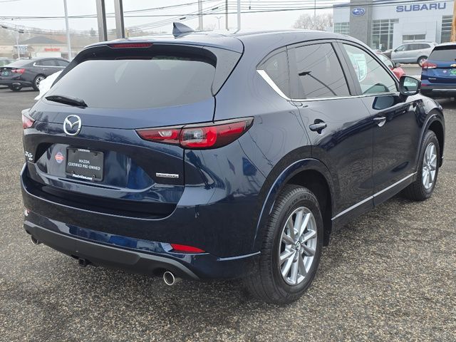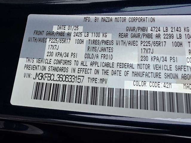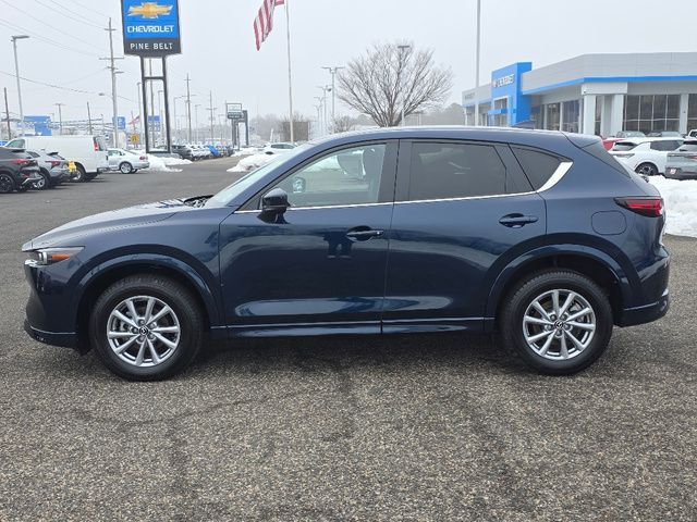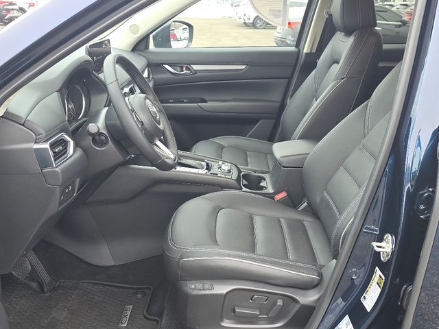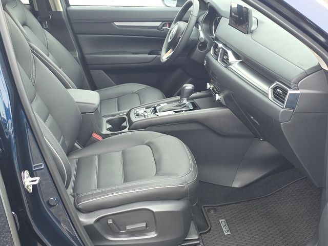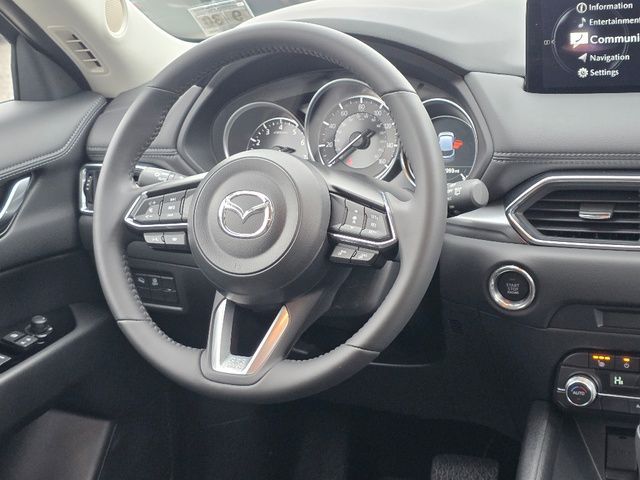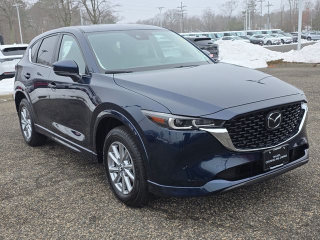 Stock Number: R633157, VIN Number: JM3KFBCL3S0633157, Style Name: AWD 2.5 S Preferred 4Dr SUV, Make: Mazda, Model: CX-5, Model Year: 2025, Type: SUV, Vehicle Trim: 2.5 S Preferred Package, Interior Color: Black, Exterior Color: Deep Crystal Blue Mica, Body Type: SUV, Engine Description: SKYACTIV? 2.5L 4-Cylinder DOHC 16V, Fuel Type: Gasoline, Fuel Induction: DI, Valves Per Cylinder: 4, Aspiration: Naturally Aspirated, 4WD Type: On Demand, Transmission: 6-Speed Automatic, Wheels Rims: Painted Aluminum Alloy, Wheels Spare Rim Type: Steel, Drive Train Type: AWD, Independent Suspension: Four-Wheel, Stabilizer Bar: Front And Rear, Clock, Compass, External Temp, Low Fuel Level, Tachometer, Front Wipers: Speed Sensitive, Variable Intermittent, Rain Sensing, Privacy Glass, Rear Defogger, Rear Wiper: Intermittent, With Washer, Sunroof: One-Touch Open/Close, Sliding Sunshade, Anti-Trapping, Power Glass, Tilt/Slide, Antenna Type: Mast, Audio System: AM/FM, HD Radio, Voice Operated, Touch Screen Display, Speakers: 6, Drivers: Heated, Drivers Height: Power, Drivers Lumbar: Power, Drivers Power: 8, Passenger: Heated, Passenger Height: Power, Passenger Power: 6, Seating Capacity: 5, Front Seat Type: Bucket, Upholstery: Leather-Trimmed, Center Armrest, Folding: Split, One-Touch Fold Flat, Center Console: Front Console With Armrest And Storage, Cupholders: Front, Rear, Overhead Console: Front, Power Outlets: 12V Cargo Area, 12V Front, USB-C Front, USB Rear, Seatback Storage, Steering Adjustment: Tilt And Telescopic, Steering Power: Variable/Speed-Proportional, Steering Wheel Control: Audio, Cruise Control, Phone, Multi-Function, Voice Control, Universal Remote Transmitter: Homelink - Garage Door Opener, Auto Dimming Mirrors, Power Mirrors, Power Door Locks: Anti-Lockout, Auto-Locking, Windows: Power Windows, Memory Features Number Of Drivers: 2 Driver, Air Conditioning: Automatic Climate Control, Sun Sensor Climate Control, Air Filtration, Trunk Lights, Door Trim: Leatherette, Mats: Rear, Front, Reading Lights: Front, Rear, Shift Knob: Leather, Steering Wheel Trim: Leather, Vanity Mirrors: Dual Illuminating, Bumpers: Body-Color, NHTSA Passenger Grade: Excellent, NHTSA Driver Grade: Excellent, NHTSA Side Impact Front Grade: Excellent, NHTSA Side Impact Back Grade: Excellent, NHTSA Roll Over Resistance Rating: Good, ABS: 4-Wheel, Anti Theft System: Vehicle Immobilizer, Brake Assist, Safety Locks, Daytime Running Light: LED, Headlights Auto Delay, Front Headrests: 2, Adjustable, Rear Headrests: 3, Adjustable, Safety Signal Mirrors, Safety Stability Control, Driver And Passenger Airbag, Side Airbag, Stability Control, Front Head Room: 39.3 Inches, Front Hip Room: 55.2 Inches, Front Shoulder Room: 57.1 Inches, Front Leg Room: 41.0 Inches, Rear Head Room: 39.0 Inches, Rear Hip Room: 55.3 Inches, Rear Leg Room: 39.6 Inches, Rear Shoulder Room: 54.8 Inches, Luggage Capacity: 30.8 Cu.Ft., Maximum Seating: 5, Length: 180.1 Inches, Width: 83.3 Inches, Height: 66.1 Inches, Wheelbase: 106.2 Inches, Ground Clearance: 7.6 Inches, Max Gross Vehicle Weight: 4724 Lbs., Curb Weight: 3679 Lbs.