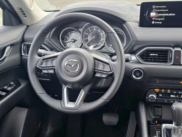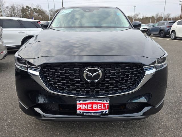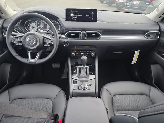 Stock Number: 4424Z, VIN Number: JM3KFBBL2S0766414, Style Name: AWD 2.5 S Select 4Dr SUV, Make: Mazda, Model: CX-5, Model Year: 2025, Type: SUV, Vehicle Trim: 2.5 S Select Package, Interior Color: Black, Exterior Color: Jet Black Mica, Body Type: SUV, Engine Description: SKYACTIV? 2.5L 4-Cylinder DOHC 16V, Fuel Type: Gasoline, Fuel Induction: DI, Valves Per Cylinder: 4, Aspiration: Naturally Aspirated, 4WD Type: On Demand, Transmission: 6-Speed Automatic, Wheels Rims: Painted Aluminum Alloy, Wheels Spare Rim Type: Steel, Drive Train Type: AWD, Independent Suspension: Four-Wheel, Stabilizer Bar: Front And Rear, Clock, Compass, External Temp, Low Fuel Level, Tachometer, Front Wipers: Speed Sensitive, Variable Intermittent, Rain Sensing, Privacy Glass, Rear Defogger, Rear Wiper: Intermittent, With Washer, Antenna Type: Mast, Audio System: AM/FM, HD Radio, Voice Operated, Touch Screen Display, Speakers: 6, Drivers: Heated, Drivers Height: Power, Drivers Lumbar: Manual, Drivers Power: 6, Passenger: Heated, Passenger Height: Manual, Seating Capacity: 5, Front Seat Type: Bucket, Upholstery: Leatherette, Center Armrest, Folding: Split, One-Touch Fold Flat, Center Console: Front Console With Armrest And Storage, Cupholders: Front, Rear, Overhead Console: Front, Power Outlets: 12V Cargo Area, 12V Front, USB-C Front, USB Rear, Seatback Storage, Steering Adjustment: Tilt And Telescopic, Steering Power: Variable/Speed-Proportional, Steering Wheel Control: Audio, Cruise Control, Phone, Multi-Function, Voice Control, Power Mirrors, Power Door Locks: Anti-Lockout, Auto-Locking, Windows: Power Windows, Air Conditioning: Automatic Climate Control, Sun Sensor Climate Control, Air Filtration, Trunk Lights, Door Trim: Leatherette, Mats: Rear, Front, Reading Lights: Front, Rear, Shift Knob: Leather, Steering Wheel Trim: Leather, Vanity Mirrors: Dual Illuminating, Bumpers: Body-Color, NHTSA Passenger Grade: Excellent, NHTSA Driver Grade: Excellent, NHTSA Side Impact Front Grade: Excellent, NHTSA Side Impact Back Grade: Excellent, NHTSA Roll Over Resistance Rating: Good, ABS: 4-Wheel, Anti Theft System: Vehicle Immobilizer, Brake Assist, Safety Locks, Daytime Running Light: LED, Headlights Auto Delay, Front Headrests: 2, Adjustable, Rear Headrests: 3, Adjustable, Safety Signal Mirrors, Safety Stability Control, Driver and Passenger Airbag, Side Airbag, Stability Control, Front Head Room: 39.7 Inches, Front Hip Room: 55.2 Inches, Front Shoulder Room: 57.1 Inches, Front Leg Room: 41.0 Inches, Rear Head Room: 39.0 Inches, Rear Hip Room: 55.3 Inches, Rear Leg Room: 39.6 Inches, Rear Shoulder Room: 54.8 Inches, Luggage Capacity: 30.8 Cu.Ft., Maximum Seating: 5, Length: 180.1 Inches, Width: 83.3 Inches, Height: 66.1 Inches, Wheelbase: 106.2 Inches, Ground Clearance: 7.6 Inches, Max Gross Vehicle Weight: 4724 Lbs., Curb Weight: 3679 Lbs.