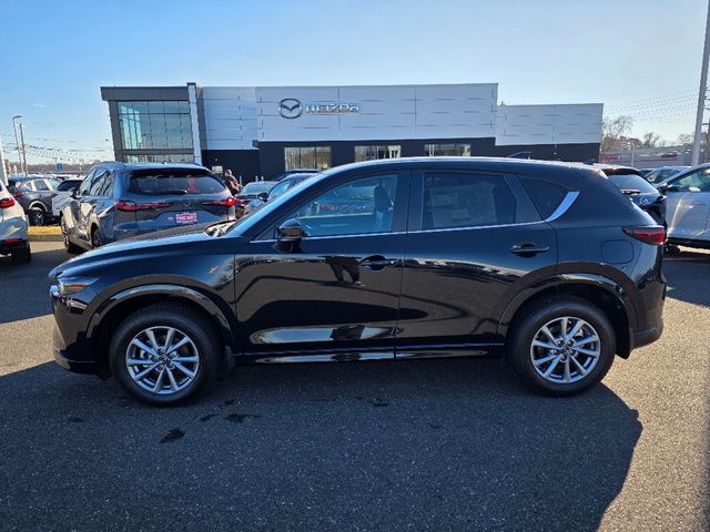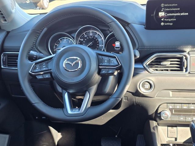Stock Number: 4556Z, VIN Number: JM3KFBBL2S0780829, Style Name: AWD 2.5 S Select 4Dr SUV, Make: Mazda, Model: CX-5, Model Year: 2025, Type: SUV, Vehicle Trim: 2.5 S Select Package, Interior Color: Black, Exterior Color: Jet Black Mica, Body Type: SUV, Engine Description: SKYACTIV? 2.5L 4-Cylinder DOHC 16V, Fuel Type: Gasoline, Fuel Induction: DI, Valves Per Cylinder: 4, Aspiration: Naturally Aspirated, 4WD Type: On Demand, Transmission: 6-Speed Automatic, Wheels Rims: Painted Aluminum Alloy, Wheels Spare Rim Type: Steel, Drive Train Type: AWD, Independent Suspension: Four-Wheel, Stabilizer Bar: Front And Rear, Clock, Compass, External Temp, Low Fuel Level, Tachometer, Front Wipers: Speed Sensitive, Variable Intermittent, Rain Sensing, Privacy Glass, Rear Defogger, Rear Wiper: Intermittent, With Washer, Antenna Type: Mast, Audio System: AM/FM, HD Radio, Voice Operated, Touch Screen Display, Speakers: 6, Drivers: Heated, Drivers Height: Power, Drivers Lumbar: Manual, Drivers Power: 6, Passenger: Heated, Passenger Height: Manual, Seating Capacity: 5, Front Seat Type: Bucket, Upholstery: Leatherette, Center Armrest, Folding: Split, One-Touch Fold Flat, Center Console: Front Console With Armrest And Storage, Cupholders: Front, Rear, Overhead Console: Front, Power Outlets: 12V Cargo Area, 12V Front, USB-C Front, USB Rear, Seatback Storage, Steering Adjustment: Tilt And Telescopic, Steering Power: Variable/Speed-Proportional, Steering Wheel Control: Audio, Cruise Control, Phone, Multi-Function, Voice Control, Power Mirrors, Power Door Locks: Anti-Lockout, Auto-Locking, Windows: Power Windows, Air Conditioning: Automatic Climate Control, Sun Sensor Climate Control, Air Filtration, Trunk Lights, Door Trim: Leatherette, Mats: Rear, Front, Reading Lights: Front, Rear, Shift Knob: Leather, Steering Wheel Trim: Leather, Vanity Mirrors: Dual Illuminating, Bumpers: Body-Color, NHTSA Passenger Grade: Excellent, NHTSA Driver Grade: Excellent, NHTSA Side Impact Front Grade: Excellent, NHTSA Side Impact Back Grade: Excellent, NHTSA Roll Over Resistance Rating: Good, ABS: 4-Wheel, Anti Theft System: Vehicle Immobilizer, Brake Assist, Safety Locks, Daytime Running Light: LED, Headlights Auto Delay, Front Headrests: 2, Adjustable, Rear Headrests: 3, Adjustable, Safety Signal Mirrors, Safety Stability Control, Driver and Passenger Airbag, Side Airbag, Stability Control, Front Head Room: 39.7 Inches, Front Hip Room: 55.2 Inches, Front Shoulder Room: 57.1 Inches, Front Leg Room: 41.0 Inches, Rear Head Room: 39.0 Inches, Rear Hip Room: 55.3 Inches, Rear Leg Room: 39.6 Inches, Rear Shoulder Room: 54.8 Inches, Luggage Capacity: 30.8 Cu.Ft., Maximum Seating: 5, Length: 180.1 Inches, Width: 83.3 Inches, Height: 66.1 Inches, Wheelbase: 106.2 Inches, Ground Clearance: 7.6 Inches, Max Gross Vehicle Weight: 4724 Lbs., Curb Weight: 3679 Lbs.