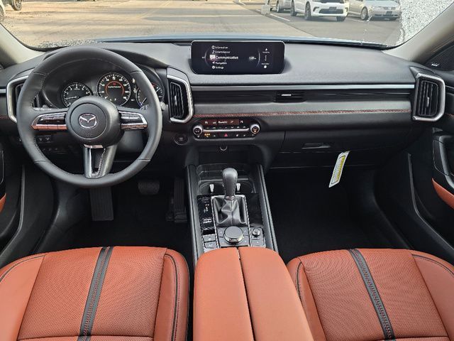 Stock Number: 4391Z, VIN Number: 7MMVABDY4SN394560, Style Name: AWD 2.5 Turbo Premium 4Dr SUV, Make: Mazda, Model: CX-50, Model Year: 2025, Type: SUV, Vehicle Trim: 2.5 Turbo Premium Package, Interior Color: Terracotta, Exterior Color: Polymetal Gray Metallic, Body Type: SUV, MPG Automatic City: 23, MPG Automatic Highway: 29, Engine Description: 2.5 L, Fuel Type: Gasoline, Fuel Induction: DI, Valves Per Cylinder: 4, Aspiration: Turbocharged, 4WD Type: On Demand, Transmission: Automatic, Wheels Rims: Painted Aluminum Alloy, Wheels Spare Rim Type: Steel, Drive Train Type: AWD, Independent Suspension: Four-Wheel, Stabilizer Bar: Front, Clock, Compass, External Temp, Heads up Display, Low Fuel Level, Tachometer, Front Wipers: Speed Sensitive, Variable Intermittent, Rain Sensing, Privacy Glass, Rear Defogger, Rear Wiper: Intermittent, With Washer, Sunroof: One-Touch Open/Close, Anti-Trapping, Tilt/Slide, Power Panoramic, Power Sunshade, Antenna Type: Diversity, Mast, Audio System: AM/FM, HD Radio, Voice Operated, Touch Screen Display, Premium Brand: Bose, Speakers: 11, Drivers: Heated, Drivers Height: Power, Drivers Lumbar: Power, Drivers Power: 8, Drivers Ventilated, Passenger: Heated, Passenger Height: Power, Passenger Power: 6, Passenger Ventilated, Seating Capacity: 5, Front Seat Type: Bucket, Upholstery: Leather, Center Armrest, Folding: Split, One-Touch Fold Flat, Heated, Center Console: Front Console With Armrest And Storage, Cupholders: Front, Rear, Overhead Console: Front, Power Outlets: 12V Cargo Area, 12V Front, USB-C Front, USB-C Rear, Seatback Storage, Steering Adjustment: Tilt And Telescopic, Steering Power: Variable/Speed-Proportional, Steering Wheel Control: Audio, Cruise Control, Phone, Multi-Function, Paddle Shifter, Voice Control, Universal Remote Transmitter: Homelink - Garage Door Opener, Auto Dimming Mirrors, Power Mirrors, Power Retractable Mirrors, Reverse Tilt Mirror, Power Door Locks: Anti-Lockout, Auto-Locking, Windows: Power Windows, Navigation System: Touch Screen Display, Voice Operated, Memory Card, Memory Features Number of Drivers: 2 Driver, Air Conditioning: Automatic Climate Control, Sun Sensor Climate Control, Air Filtration, Trunk Lights, Dash Trim: Leatherette, Door Trim: Leatherette, Mats: Rear, Front, Reading Lights: Front, Rear, Shift Knob: Leather, Steering Wheel Trim: Leather, Vanity Mirrors: Dual Illuminating, Bumpers: Black, Chrome Accents, NHTSA Passenger Grade: Excellent, NHTSA Driver Grade: Excellent, NHTSA Side Impact Front Grade: Excellent, NHTSA Side Impact Back Grade: Excellent, NHTSA Roll Over Resistance Rating: Good, ABS: 4-Wheel, Anti Theft System: Vehicle Immobilizer, Brake Assist, Safety Locks, Cornering Lights, Daytime Running Light: LED, Headlights Auto Delay, Front Headrests: 2, Adjustable, Rear Headrests: 3, Adjustable, Safety Signal Mirrors, Safety Stability Control, Driver and Passenger Airbag, Side Airbag, Stability Control, Front Head Room: 38.6 Inches, Front Hip Room: 53.6 Inches, Front Shoulder Room: 55.9 Inches, Front Leg Room: 41.7 Inches, Rear Head Room: 37.5 Inches, Rear Hip Room: 52.1 Inches, Rear Leg Room: 39.8 Inches, Rear Shoulder Room: 53.6 Inches, Luggage Capacity: 31.4 Cu.Ft., Maximum Seating: 5, Length: 185.8 Inches, Width: 80.8 Inches, Height: 63.9 Inches, Wheelbase: 110.8 Inches, Ground Clearance: 8.6 Inches, Max Gross Vehicle Weight: 4976 Lbs., Curb Weight: 3915 Lbs.