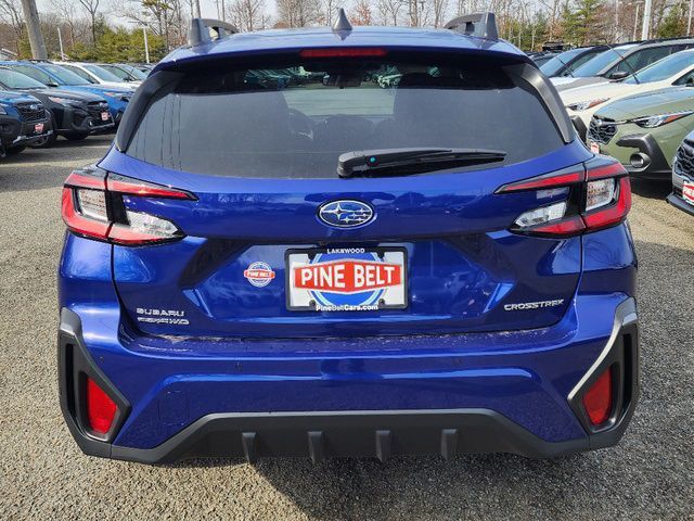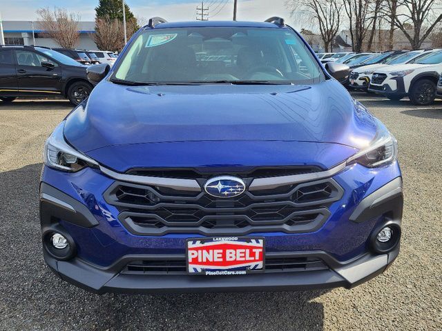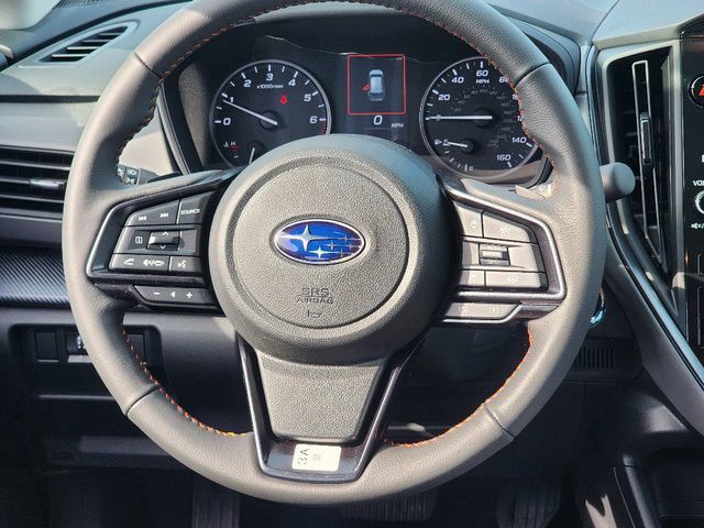 Stock Number: 1963Z, VIN Number: 4S4GUHM66S3719525, Style Name: AWD Limited 4Dr Crossover, Make: Subaru, Model: Crosstrek, Model Year: 2025, Type: Wagon, Vehicle Trim: Limited, Interior Color: Black With Orange Stitching, Exterior Color: Sapphire Blue Pearl, Body Type: Wagon, MPG Automatic City: 27, MPG Automatic Highway: 33, Engine Description: 2.5L 4-Cylinder DOHC 16V, Fuel Type: Gasoline, Fuel Induction: DI, Valves Per Cylinder: 4, Aspiration: Naturally Aspirated, 4WD Type: Full Time, Transmission: Lineartronic CVT, Wheels Rims: Painted Aluminum Alloy, Wheels Spare Rim Type: Steel, Drive Train Type: AWD, Independent Suspension: Four-Wheel, Stabilizer Bar: Front And Rear, Clock, External Temp, Low Fuel Level, Tachometer, Front Wipers: Variable Intermittent, Privacy Glass, Rear Defogger, Rear Wiper: Intermittent, Auto-On In Reverse, With Washer, Antenna Type: Diversity, Mast, Audio System: AM/FM, HD Radio, Voice Operated, Touch Screen Display, Speakers: 6, Drivers: Heated, Drivers Height: Power, Drivers Lumbar: Power, Drivers Power: 10, Passenger: Heated, Seating Capacity: 5, Front Seat Type: Bucket, Upholstery: Leather-Trimmed, Center Armrest, Folding: Split, Center Console: Front Console With Armrest And Storage, Illuminated, Organizer Tray, Cupholders: Front, Rear, Overhead Console: Front, Power Outlets: Two 12V Front, USB Front, USB-C Front, USB Rear, USB-C Rear, Seatback Storage, Steering Adjustment: Tilt And Telescopic, Steering Power: Variable/Speed-Proportional, Steering Wheel Control: Audio, Cruise Control, Phone, Multi-Function, Paddle Shifter, Voice Control, Power Mirrors, Power Door Locks: Anti-Lockout, Auto-Locking, Windows: Power Windows, Satellite Communication: Voice Guided Directions, Air Conditioning: Automatic Climate Control, Air Filtration, Trunk Lights, Center Console Trim: Leatherette, Dash Trim: Simulated Carbon Fiber, Door Trim: Simulated Carbon Fiber, Leatherette, Mats: Rear, Front, Reading Lights: Front, Rear, Shift Knob: Leather, Steering Wheel Trim: Leather, Vanity Mirrors: Dual Illuminating, Bumpers: Black, NHTSA Passenger Grade: Excellent, NHTSA Driver Grade: Excellent, NHTSA Side Impact Front Grade: Excellent, NHTSA Side Impact Back Grade: Excellent, NHTSA Roll Over Resistance Rating: Good, ABS: 4-Wheel, Anti Theft System: Alarm, Vehicle Immobilizer, Brake Assist, Safety Locks, Cornering Lights, Daytime Running Light, Fog Lights: LED, Headlights Auto Delay, Front Headrests: 2, Adjustable, Rear Headrests: 3, Adjustable, Safety Signal Mirrors, Safety Stability Control, Driver and Passenger Airbag, Side Airbag, Stability Control, Front Head Room: 39.8 Inches, Front Hip Room: 55.1 Inches, Front Shoulder Room: 56.8 Inches, Front Leg Room: 42.9 Inches, Rear Head Room: 38.0 Inches, Rear Hip Room: 53.2 Inches, Rear Leg Room: 36.5 Inches, Rear Shoulder Room: 55.3 Inches, Luggage Capacity: 19.9 Cu.Ft., Maximum Seating: 5, Length: 176.4 Inches, Width: 79.4 Inches, Height: 63.0 Inches, Wheelbase: 105.1 Inches, Ground Clearance: 8.7 Inches, Max Gross Vehicle Weight: 4817 Lbs., Curb Weight: 3349 Lbs.