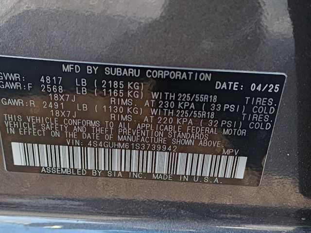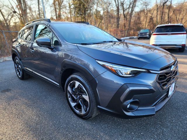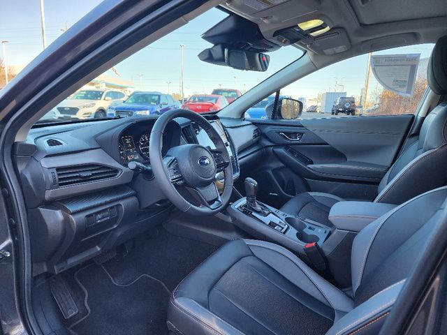 Stock Number: R739942, VIN Number: 4S4GUHM61S3739942, Style Name: AWD Limited 4Dr Crossover, Make: Subaru, Model: Crosstrek, Model Year: 2025, Type: Wagon, Vehicle Trim: Limited, Interior Color: Black With Orange Stitching, Exterior Color: Gray, Body Type: Wagon, Engine Description: 2.5L H4, Fuel Type: Gasoline, Fuel Induction: DI, Valves Per Cylinder: 4, Aspiration: Naturally Aspirated, 4WD Type: Full Time, Transmission: Lineartronic CVT, Wheels Rims: Painted Aluminum Alloy, Wheels Spare Rim Type: Steel, Drive Train Type: AWD, Independent Suspension: Four-Wheel, Stabilizer Bar: Front And Rear, Clock, External Temp, Low Fuel Level, Tachometer, Front Wipers: Variable Intermittent, Privacy Glass, Rear Defogger, Rear Wiper: Intermittent, Auto-On In Reverse, With Washer, Antenna Type: Diversity, Mast, Audio System: AM/FM, HD Radio, Voice Operated, Touch Screen Display, Speakers: 6, Drivers: Heated, Drivers Height: Power, Drivers Lumbar: Power, Drivers Power: 10, Passenger: Heated, Seating Capacity: 5, Front Seat Type: Bucket, Upholstery: Leather-Trimmed, Center Armrest, Folding: Split, Center Console: Front Console With Armrest And Storage, Illuminated, Organizer Tray, Cupholders: Front, Rear, Overhead Console: Front, Power Outlets: Two 12V Front, USB Front, USB-C Front, USB Rear, USB-C Rear, Seatback Storage, Steering Adjustment: Tilt And Telescopic, Steering Power: Variable/Speed-Proportional, Steering Wheel Control: Audio, Cruise Control, Phone, Multi-Function, Paddle Shifter, Voice Control, Power Mirrors, Power Door Locks: Anti-Lockout, Auto-Locking, Windows: Power Windows, Satellite Communication: Voice Guided Directions, Air Conditioning: Automatic Climate Control, Air Filtration, Trunk Lights, Center Console Trim: Leatherette, Dash Trim: Simulated Carbon Fiber, Door Trim: Simulated Carbon Fiber, Leatherette, Mats: Rear, Front, Reading Lights: Front, Rear, Shift Knob: Leather, Steering Wheel Trim: Leather, Vanity Mirrors: Dual Illuminating, Bumpers: Black, NHTSA Passenger Grade: Excellent, NHTSA Driver Grade: Excellent, NHTSA Side Impact Front Grade: Excellent, NHTSA Side Impact Back Grade: Excellent, NHTSA Roll Over Resistance Rating: Good, ABS: 4-Wheel, Anti Theft System: Alarm, Vehicle Immobilizer, Brake Assist, Safety Locks, Cornering Lights, Daytime Running Light, Fog Lights: LED, Headlights Auto Delay, Front Headrests: 2, Adjustable, Rear Headrests: 3, Adjustable, Safety Signal Mirrors, Safety Stability Control, Driver And Passenger Airbag, Side Airbag, Stability Control, Front Head Room: 39.8 Inches, Front Hip Room: 55.1 Inches, Front Shoulder Room: 56.8 Inches, Front Leg Room: 42.9 Inches, Rear Head Room: 38.0 Inches, Rear Hip Room: 53.2 Inches, Rear Leg Room: 36.5 Inches, Rear Shoulder Room: 55.3 Inches, Luggage Capacity: 19.9 Cu.Ft., Maximum Seating: 5, Length: 176.4 Inches, Width: 79.4 Inches, Height: 63.0 Inches, Wheelbase: 105.1 Inches, Ground Clearance: 8.7 Inches, Max Gross Vehicle Weight: 4817 Lbs., Curb Weight: 3349 Lbs.