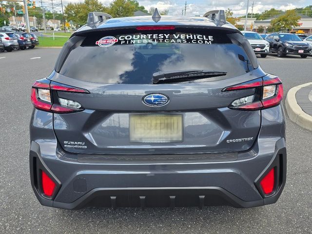 Stock Number: R302340, VIN Number: JF2GUHDC4SH302340, Make: Subaru, Model: Crosstrek, Model Year: 2025, Type: Wagon, Vehicle Trim: Premium, Exterior Color: Magnetite Gray Metallic, Body Type: Wagon, Interior Color: Gray, Engine Description: 2.5L 4-Cylinder DOHC 16V, Fuel Type: Gasoline, Fuel Induction: DI, Valves Per Cylinder: 4, Aspiration: Naturally Aspirated, 4WD Type: Full Time, Transmission: Lineartronic CVT, Wheels Rims: Painted Aluminum Alloy, Wheels Spare Rim Type: Steel, Drive Train Type: AWD, Independent Suspension: Four-Wheel, Stabilizer Bar: Front And Rear, Clock, External Temp, Low Fuel Level, Tachometer, Front Wipers: Variable Intermittent, Privacy Glass, Rear Defogger, Rear Wiper: Intermittent, Auto-On In Reverse, With Washer, Antenna Type: Diversity, Mast, Audio System: AM/FM, HD Radio, Voice Operated, Touch Screen Display, Speakers: 6, Drivers: Heated, Passenger: Heated, Seating Capacity: 5, Front Seat Type: Bucket, Center Armrest, Folding: Split, Center Console: Front Console With Armrest And Storage, Illuminated, Organizer Tray, Cupholders: Front, Rear, Overhead Console: Front, Power Outlets: Two 12V Front, USB Front, USB-C Front, USB Rear, USB-C Rear, Seatback Storage, Steering Adjustment: Tilt And Telescopic, Steering Power: Variable/Speed-Proportional, Steering Wheel Control: Audio, Cruise Control, Phone, Multi-Function, Paddle Shifter, Voice Control, Power Mirrors, Power Door Locks: Anti-Lockout, Auto-Locking, Windows: Power Windows, Satellite Communication: Voice Guided Directions, Air Conditioning: Automatic Climate Control, Air Filtration, Trunk Lights, Center Console Trim: Leatherette, Dash Trim: Simulated Carbon Fiber, Door Trim: Simulated Carbon Fiber, Leatherette, Mats: Rear, Front, Reading Lights: Front, Rear, Shift Knob: Leather, Steering Wheel Trim: Leather, Vanity Mirrors: Dual Illuminating, Bumpers: Black, ABS: 4-Wheel, Anti Theft System: Alarm, Vehicle Immobilizer, Brake Assist, Safety Locks, Cornering Lights, Daytime Running Light, Fog Lights: LED, Headlights Auto Delay, Front Headrests: 2, Adjustable, Rear Headrests: 3, Adjustable, Safety Signal Mirrors, Safety Stability Control, Driver And Passenger Airbag, Side Airbag, Stability Control, Front Head Room: 39.8 Inches, Front Hip Room: 55.1 Inches, Front Shoulder Room: 56.8 Inches, Front Leg Room: 42.9 Inches, Rear Head Room: 38.0 Inches, Rear Hip Room: 53.2 Inches, Rear Leg Room: 36.5 Inches, Rear Shoulder Room: 55.3 Inches, Maximum Seating: 5, Length: 176.4 Inches, Width: 79.4 Inches, Max Gross Vehicle Weight: 4817 Lbs.