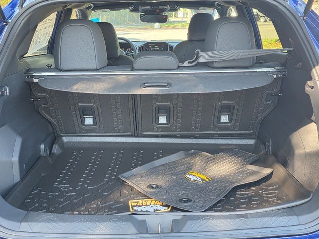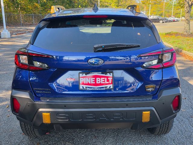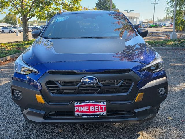 Stock Number: 4450Z, VIN Number: 4S4GUHU66S3783130, Style Name: AWD Wilderness 4Dr Crossover, Make: Subaru, Model: Crosstrek, Model Year: 2025, Type: Wagon, Vehicle Trim: Wilderness, Exterior Color: Geyser Blue Pearl, Body Type: Wagon, Engine Description: 2.5L 4-Cylinder DOHC 16V, Fuel Type: Gasoline, Fuel Induction: DI, Valves Per Cylinder: 4, Aspiration: Naturally Aspirated, 4WD Type: Full Time, Transmission: Lineartronic CVT, Wheels Rims: Painted Aluminum Alloy, Wheels Spare Rim Type: Steel, Drive Train Type: AWD, Independent Suspension: Four-Wheel, Stabilizer Bar: Front And Rear, Clock, External Temp, Low Fuel Level, Tachometer, Front Wipers: Variable Intermittent, Privacy Glass, Rear Defogger, Rear Wiper: Intermittent, Auto-On In Reverse, With Washer, Antenna Type: Diversity, Mast, Audio System: AM/FM, HD Radio, Voice Operated, Touch Screen Display, Speakers: 6, Drivers: Heated, Drivers Height: Manual, Passenger: Heated, Seating Capacity: 5, Front Seat Type: Bucket, Upholstery: Vinyl, Center Armrest, Folding: Split, Center Console: Front Console With Armrest And Storage, Illuminated, Organizer Tray, Cupholders: Front, Rear, Overhead Console: Front, Power Outlets: Two 12V Front, USB Front, USB-C Front, USB Rear, USB-C Rear, Seatback Storage, Steering Adjustment: Tilt And Telescopic, Steering Power: Variable/Speed-Proportional, Steering Wheel Control: Audio, Cruise Control, Phone, Multi-Function, Paddle Shifter, Voice Control, Power Mirrors, Power Door Locks: Anti-Lockout, Auto-Locking, Windows: Power Windows, Satellite Communication: Voice Guided Directions, Air Conditioning: Automatic Climate Control, Air Filtration, Trunk Lights, Center Console Trim: Leatherette, Dash Trim: Simulated Carbon Fiber, Door Trim: Simulated Carbon Fiber, Leatherette, Mats: Rear, Front, Reading Lights: Front, Rear, Shift Knob: Leather, Steering Wheel Trim: Leather, Vanity Mirrors: Dual Illuminating, Aux Transmission Cooler, Bumpers: Black, NHTSA Passenger Grade: Excellent, NHTSA Driver Grade: Excellent, NHTSA Side Impact Front Grade: Excellent, NHTSA Side Impact Back Grade: Excellent, ABS: 4-Wheel, Anti Theft System: Alarm, Vehicle Immobilizer, Brake Assist, Safety Locks, Cornering Lights, Daytime Running Light, Fog Lights: LED, Headlights Auto Delay, Front Headrests: 2, Adjustable, Rear Headrests: 3, Adjustable, Safety Signal Mirrors, Safety Stability Control, Driver and Passenger Airbag, Side Airbag, Stability Control, Front Head Room: 39.8 Inches, Front Hip Room: 55.1 Inches, Front Shoulder Room: 56.8 Inches, Front Leg Room: 42.9 Inches, Rear Head Room: 38.0 Inches, Rear Hip Room: 53.2 Inches, Rear Leg Room: 36.5 Inches, Rear Shoulder Room: 55.3 Inches, Luggage Capacity: 20.0 Cu.Ft., Maximum Seating: 5, Length: 176.4 Inches, Width: 79.4 Inches, Height: 63.6 Inches, Wheelbase: 104.9 Inches, Ground Clearance: 9.3 Inches, Max Gross Vehicle Weight: 4817 Lbs., Curb Weight: 3369 Lbs.