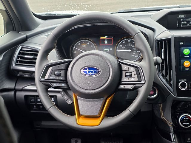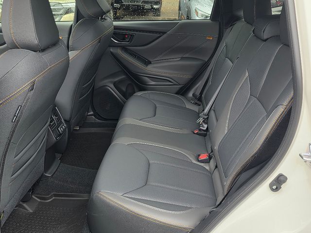 Stock Number: R405472, VIN Number: JF2SKAJC5SH405472, Style Name: AWD Wilderness 4Dr Crossover, Make: Subaru, Model: Forester, Model Year: 2025, Type: Wagon, Vehicle Trim: Wilderness, Exterior Color: Crystal White Pearl, Body Type: Wagon, Engine Description: 2.5L 4-Cylinder DOHC 16V, Fuel Type: Gasoline, Fuel Induction: DI, Valves Per Cylinder: 4, Aspiration: Naturally Aspirated, 4WD Type: Full Time, Differential Limited Slip: Rear, Transmission: Lineartronic CVT, Wheels Rims: Painted Aluminum Alloy, Wheels Spare Rim Type: Steel, Drive Train Type: AWD, Independent Suspension: Four-Wheel, Stabilizer Bar: Front And Rear, Clock, External Temp, Low Fuel Level, Tachometer, Front Wipers: Variable Intermittent, Privacy Glass, Rear Defogger, Rear Wiper: Intermittent, Auto-On In Reverse, With Washer, Sunroof: One-Touch Open/Close, Sliding Sunshade, Anti-Trapping, Power Panoramic, Antenna Type: Diversity, Mast, Audio System: AM/FM, HD Radio, Voice Operated, Touch Screen Display, Speakers: 6, Drivers: Heated, Drivers Height: Power, Drivers Lumbar: Power, Drivers Power: 10, Passenger: Heated, Seating Capacity: 5, Front Seat Type: Bucket, Upholstery: Vinyl, Center Armrest, Folding: Split, One-Touch Fold Flat, Center Console: Front Console With Armrest And Storage, Illuminated, Organizer Tray, Cupholders: Front, Rear, Overhead Console: Front, Power Outlets: 12V Cargo Area, 12V Rear, 12V Front, USB Front, USB-C Front, USB Rear, USB-C Rear, Seatback Storage, Steering Adjustment: Tilt And Telescopic, Steering Power: Variable/Speed-Proportional, Steering Wheel Control: Audio, Cruise Control, Phone, Multi-Function, Paddle Shifter, Voice Control, Power Mirrors, Power Door Locks: Anti-Lockout, Auto-Locking, Windows: Power Windows, Air Conditioning: Automatic Climate Control, Air Filtration, Trunk Lights, Center Console Trim: Leatherette, Dash Trim: Metallic, Door Trim: Leatherette, Mats: Rear, Front, Reading Lights: Front, Rear, Shift Knob: Simulated Leather, Steering Wheel Trim: Leather, Vanity Mirrors: Dual Illuminating, Bumpers: Black, Chrome Accents, ABS: 4-Wheel, Anti Theft System: Alarm, Vehicle Immobilizer, Brake Assist, Safety Locks, Cornering Lights, Daytime Running Light, Fog Lights: LED, Headlights Auto Delay, Front Headrests: 2, Adjustable, Rear Headrests: 3, Adjustable, Safety Signal Mirrors, Safety Stability Control, Driver and Passenger Airbag, Side Airbag, Stability Control, Front Head Room: 40.2 Inches, Front Hip Room: 54.5 Inches, Front Shoulder Room: 58.1 Inches, Front Leg Room: 43.3 Inches, Rear Head Room: 37.6 Inches, Rear Hip Room: 53.5 Inches, Rear Leg Room: 39.4 Inches, Rear Shoulder Room: 57.2 Inches, Luggage Capacity: 26.9 Cu.Ft., Maximum Seating: 5, Length: 182.7 Inches, Width: 81.3 Inches, Height: 68.9 Inches, Wheelbase: 104.9 Inches, Ground Clearance: 9.2 Inches, Curb Weight: 3620 Lbs., Interior Color: Gray