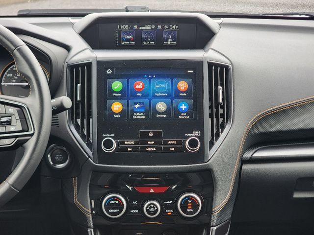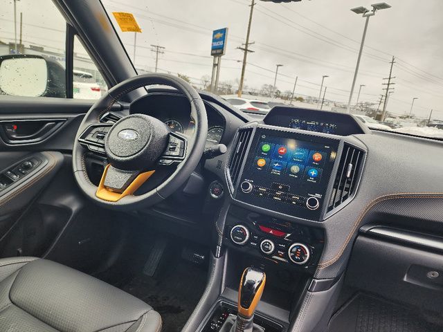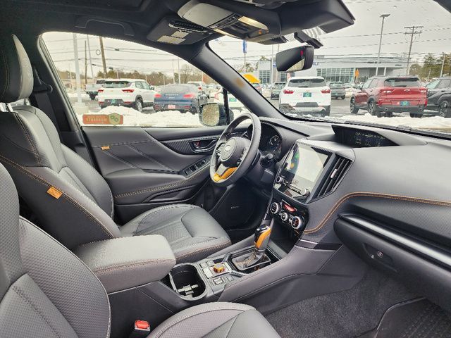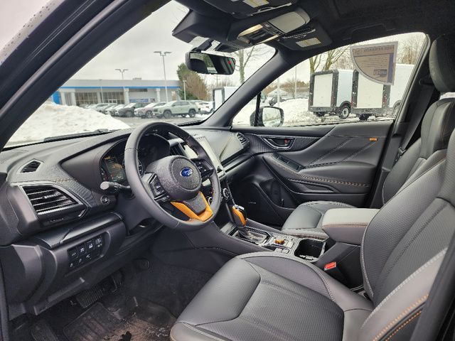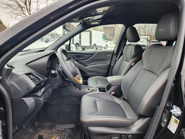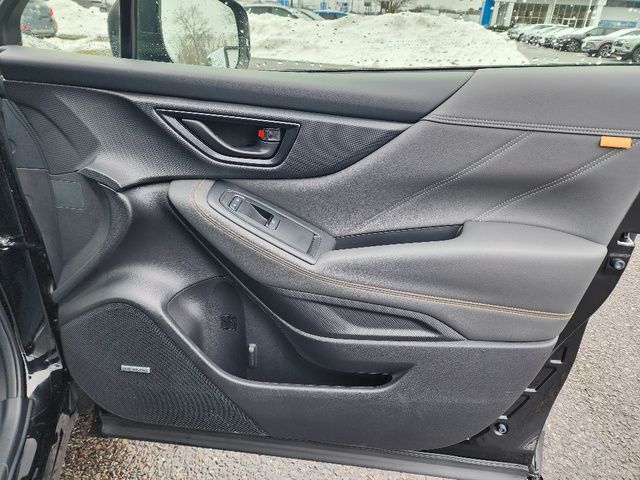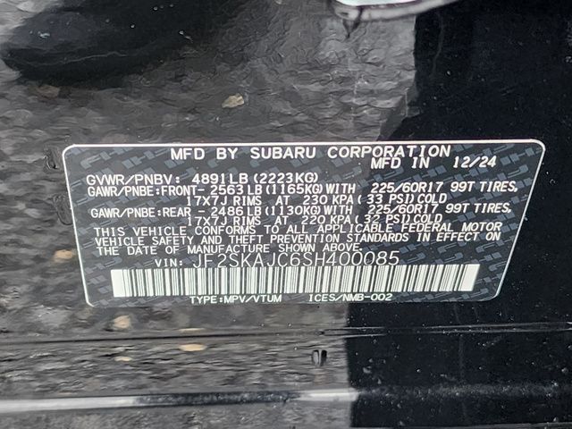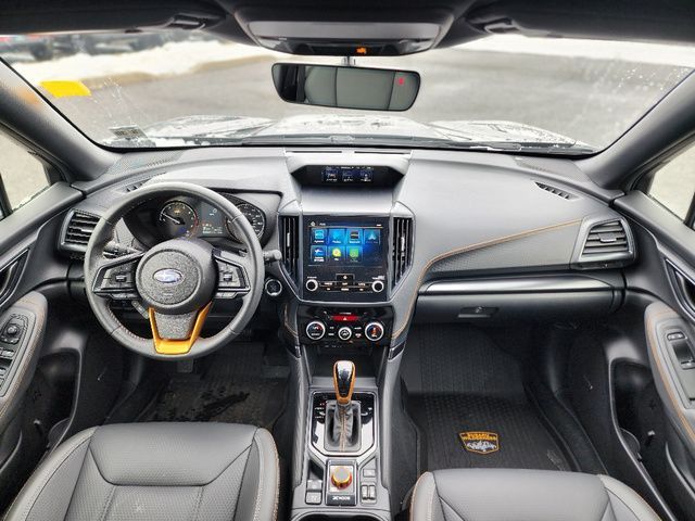 Stock Number: R400085, VIN Number: JF2SKAJC6SH400085, Style Name: AWD Wilderness 4Dr Crossover, Make: Subaru, Model: Forester, Model Year: 2025, Type: Wagon, Vehicle Trim: Wilderness, Exterior Color: Crystal Black Silica, Body Type: Wagon, Engine Description: 2.5L 4-Cylinder DOHC 16V, Fuel Type: Gasoline, Fuel Induction: DI, Valves Per Cylinder: 4, Aspiration: Naturally Aspirated, 4WD Type: Full Time, Differential Limited Slip: Rear, Transmission: Lineartronic CVT, Wheels Rims: Painted Aluminum Alloy, Wheels Spare Rim Type: Steel, Drive Train Type: AWD, Independent Suspension: Four-Wheel, Stabilizer Bar: Front And Rear, Clock, External Temp, Low Fuel Level, Tachometer, Front Wipers: Variable Intermittent, Privacy Glass, Rear Defogger, Rear Wiper: Intermittent, Auto-On In Reverse, With Washer, Sunroof: One-Touch Open/Close, Sliding Sunshade, Anti-Trapping, Power Panoramic, Antenna Type: Diversity, Mast, Audio System: AM/FM, HD Radio, Voice Operated, Touch Screen Display, Speakers: 6, Drivers: Heated, Drivers Height: Power, Drivers Lumbar: Power, Drivers Power: 10, Passenger: Heated, Seating Capacity: 5, Front Seat Type: Bucket, Upholstery: Vinyl, Center Armrest, Folding: Split, One-Touch Fold Flat, Center Console: Front Console With Armrest And Storage, Illuminated, Organizer Tray, Cupholders: Front, Rear, Overhead Console: Front, Power Outlets: 12V Cargo Area, 12V Rear, 12V Front, USB Front, USB-C Front, USB Rear, USB-C Rear, Seatback Storage, Steering Adjustment: Tilt And Telescopic, Steering Power: Variable/Speed-Proportional, Steering Wheel Control: Audio, Cruise Control, Phone, Multi-Function, Paddle Shifter, Voice Control, Power Mirrors, Power Door Locks: Anti-Lockout, Auto-Locking, Windows: Power Windows, Air Conditioning: Automatic Climate Control, Air Filtration, Trunk Lights, Center Console Trim: Leatherette, Dash Trim: Metallic, Door Trim: Leatherette, Mats: Rear, Front, Reading Lights: Front, Rear, Shift Knob: Simulated Leather, Steering Wheel Trim: Leather, Vanity Mirrors: Dual Illuminating, Bumpers: Black, Chrome Accents, ABS: 4-Wheel, Anti Theft System: Alarm, Vehicle Immobilizer, Brake Assist, Safety Locks, Cornering Lights, Daytime Running Light, Fog Lights: LED, Headlights Auto Delay, Front Headrests: 2, Adjustable, Rear Headrests: 3, Adjustable, Safety Signal Mirrors, Safety Stability Control, Driver and Passenger Airbag, Side Airbag, Stability Control, Front Head Room: 40.2 Inches, Front Hip Room: 54.5 Inches, Front Shoulder Room: 58.1 Inches, Front Leg Room: 43.3 Inches, Rear Head Room: 37.6 Inches, Rear Hip Room: 53.5 Inches, Rear Leg Room: 39.4 Inches, Rear Shoulder Room: 57.2 Inches, Luggage Capacity: 26.9 Cu.Ft., Maximum Seating: 5, Length: 182.7 Inches, Width: 81.3 Inches, Height: 68.9 Inches, Wheelbase: 104.9 Inches, Ground Clearance: 9.2 Inches, Curb Weight: 3620 Lbs., Interior Color: Gray