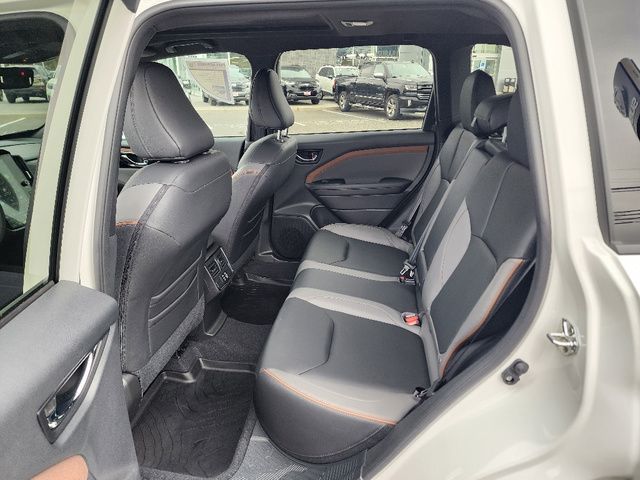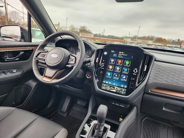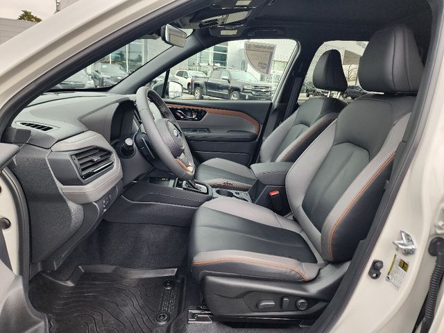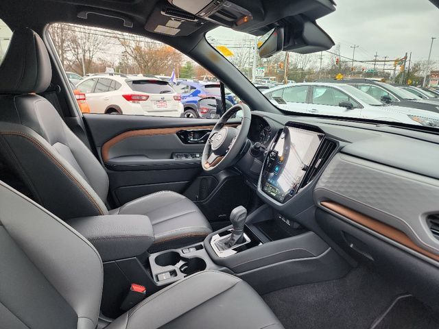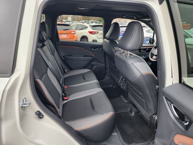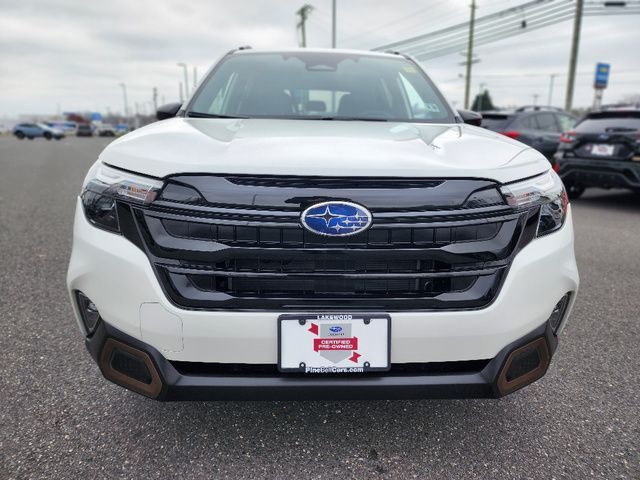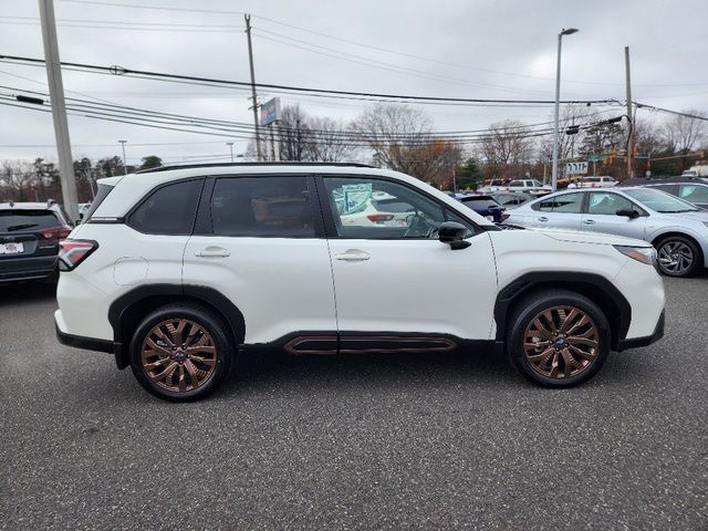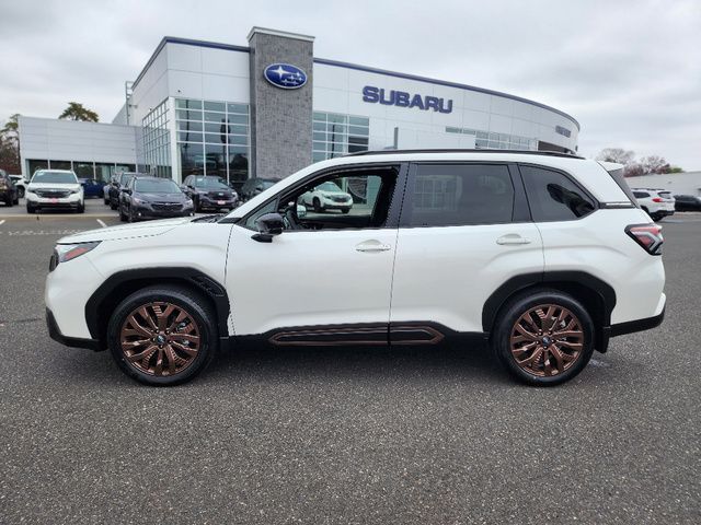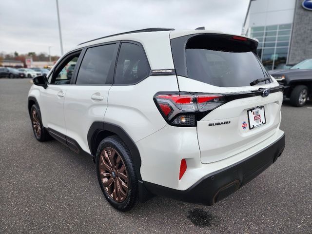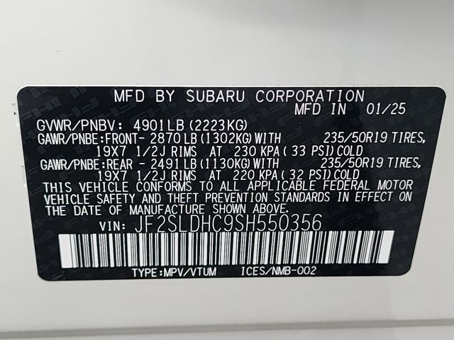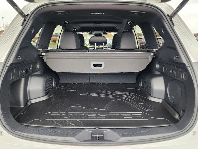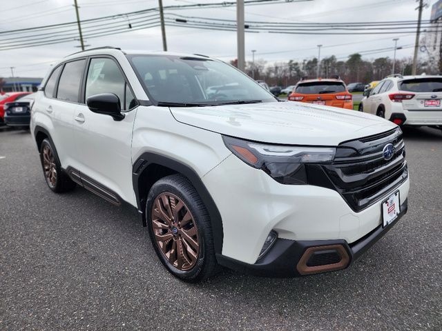 Stock Number: R550356, VIN Number: JF2SLDHC9SH550356, Style Name: AWD Sport 4Dr Crossover, Make: Subaru, Model: Forester, Model Year: 2025, Type: Wagon, Vehicle Trim: Sport, Exterior Color: Crystal White Pearl, Body Type: Wagon, Interior Color: Gray, MPG Automatic City: 25, MPG Automatic Highway: 32, Engine Description: 2.5L H4, Fuel Type: Gasoline, Fuel Induction: DI, Valves Per Cylinder: 4, Aspiration: Naturally Aspirated, 4WD Type: Full Time, Transmission: Lineartronic CVT, Wheels Rims: Painted Aluminum Alloy, Wheels Spare Rim Type: Steel, Drive Train Type: AWD, Independent Suspension: Four-Wheel, Stabilizer Bar: Front And Rear, Clock, External Temp, Low Fuel Level, Tachometer, Front Wipers: Variable Intermittent, Privacy Glass, Rear Defogger, Rear Wiper: Intermittent, Auto-On In Reverse, With Washer, Sunroof: One-Touch Open/Close, Sliding Sunshade, Anti-Trapping, Power Panoramic, Antenna Type: Diversity, Mast, Audio System: AM/FM, HD Radio, Voice Operated, Touch Screen Display, Speakers: 6, Drivers: Heated, Drivers Height: Power, Drivers Lumbar: Power, Drivers Power: 10, Passenger: Heated, Seating Capacity: 5, Front Seat Type: Bucket, Upholstery: Leatherette, Center Armrest, Folding: Split, Flat, Center Console: Front Console With Armrest And Storage, Illuminated, Organizer Tray, Cupholders: Front, Rear, Overhead Console: Front, Power Outlets: 12V Cargo Area, 12V Front, USB Front, USB-C Front, USB Rear, USB-C Rear, Seatback Storage, Steering Adjustment: Tilt And Telescopic, Steering Power: Variable/Speed-Proportional, Steering Wheel Control: Audio, Cruise Control, Phone, Multi-Function, Paddle Shifter, Voice Control, Power Mirrors, Power Door Locks: Anti-Lockout, Auto-Locking, Windows: Power Windows, Air Conditioning: Automatic Climate Control, Air Filtration, Trunk Lights, Center Console Trim: Leatherette, Dash Trim: Leatherette, Door Trim: Leatherette, Mats: Rear, Front, Reading Lights: Front, Rear, Shift Knob: Simulated Leather, Steering Wheel Trim: Leather, Vanity Mirrors: Dual Illuminating, Bumpers: Body-Color, ABS: 4-Wheel, Anti Theft System: Alarm, Vehicle Immobilizer, Brake Assist, Safety Locks, Cornering Lights, Daytime Running Light, Fog Lights: LED, Headlights Auto Delay, Front Headrests: 2, Adjustable, Rear Headrests: 3, Adjustable, Safety Signal Mirrors, Safety Stability Control, Driver And Passenger Airbag, Side Airbag, Stability Control, Front Head Room: 40.0 Inches, Front Hip Room: 54.7 Inches, Front Shoulder Room: 57.7 Inches, Front Leg Room: 43.3 Inches, Rear Head Room: 37.7 Inches, Rear Hip Room: 53.7 Inches, Rear Leg Room: 39.4 Inches, Rear Shoulder Room: 56.7 Inches, Luggage Capacity: 27.5 Cu.Ft., Maximum Seating: 5, Length: 183.3 Inches, Width: 81.2 Inches, Height: 68.1 Inches, Wheelbase: 105.1 Inches, Ground Clearance: 8.7 Inches, Curb Weight: 3611 Lbs.