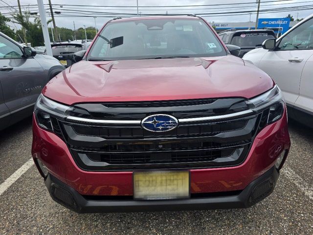 Stock Number: 3347Z, VIN Number: JF2SLSTD0SH409745, Style Name: AWD Touring Hybrid 4Dr Crossover, Make: Subaru, Model: Forester, Model Year: 2025, Type: Wagon, Vehicle Trim: Touring, Interior Color: Touring Brown, Exterior Color: Crimson Red Pearl, Body Type: Wagon, MPG Automatic City: 35, MPG Automatic Highway: 34, Engine Description: 2.5L 4-Cylinder DOHC 16V, Fuel Type: Hybrid-Electric, Fuel Induction: DI, Valves Per Cylinder: 4, Aspiration: Naturally Aspirated, 4WD Type: Full Time, Transmission: Lineartronic CVT, Wheels Rims: Painted Aluminum Alloy, Drive Train Type: AWD, Independent Suspension: Four-Wheel, Stabilizer Bar: Front And Rear, Clock, Compass, External Temp, Heads up Display, Low Fuel Level, Tachometer, Front Wipers: Variable Intermittent, Rain Sensing, Privacy Glass, Rear Defogger, Rear Wiper: Intermittent, Auto-On In Reverse, With Washer, Sunroof: One-Touch Open/Close, Sliding Sunshade, Anti-Trapping, Power Panoramic, Antenna Type: Diversity, Mast, Audio System: AM/FM, HD Radio, Voice Operated, Touch Screen Display, Premium Brand: Harman/Kardon, Speakers: 10, Drivers: Heated, Drivers Height: Power, Drivers Lumbar: Power, Drivers Power: 10, Drivers Ventilated, Passenger: Heated, Passenger Height: Power, Passenger Power: 8, Passenger Ventilated, Seating Capacity: 5, Front Seat Type: Bucket, Upholstery: Leather-Trimmed, Center Armrest, Folding: Split, One-Touch Fold Flat, Heated, Center Console: Front Console With Armrest And Storage, Illuminated, Organizer Tray, Cupholders: Front, Rear, Overhead Console: Front, Power Outlets: 12V Cargo Area, 12V Front, USB Front, USB-C Front, USB Rear, USB-C Rear, Seatback Storage, Steering Adjustment: Tilt And Telescopic, Steering Power: Variable/Speed-Proportional, Steering Wheel Control: Audio, Cruise Control, Phone, Multi-Function, Paddle Shifter, Voice Control, Auto Dimming Mirrors, Power Mirrors, Reverse Tilt Mirror, Power Door Locks: Anti-Lockout, Auto-Locking, Windows: Power Windows, Navigation System: Touch Screen Display, Voice Operated, Memory Card, Satellite Communication: Voice Guided Directions, Memory Features Exterior Mirrors, Memory Features Number of Drivers: 2 Driver, Air Conditioning: Automatic Climate Control, Air Filtration, Trunk Lights, Center Console Trim: Leatherette, Dash Trim: Leatherette, Door Trim: Leatherette, Mats: Rear, Front, Reading Lights: Front, Rear, Shift Knob: Leather, Steering Wheel Trim: Leatherette, Vanity Mirrors: Dual Illuminating, Bumpers: Body-Color, NHTSA Passenger Grade: Excellent, NHTSA Driver Grade: Excellent, NHTSA Side Impact Front Grade: Excellent, NHTSA Side Impact Back Grade: Excellent, NHTSA Roll Over Resistance Rating: Good, ABS: 4-Wheel, Anti Theft System: Alarm, Vehicle Immobilizer, Brake Assist, Safety Locks, Cornering Lights, Daytime Running Light, Fog Lights: LED, Headlights Auto Delay, Front Headrests: 2, Adjustable, Rear Headrests: 3, Adjustable, Safety Signal Mirrors, Safety Stability Control, Driver and Passenger Airbag, Side Airbag, Stability Control, Front Head Room: 40.0 Inches, Front Hip Room: 54.7 Inches, Front Shoulder Room: 57.7 Inches, Front Leg Room: 43.3 Inches, Rear Head Room: 37.7 Inches, Rear Hip Room: 53.7 Inches, Rear Leg Room: 39.4 Inches, Rear Shoulder Room: 56.7 Inches, Luggage Capacity: 27.5 Cu.Ft., Maximum Seating: 5, Length: 183.3 Inches, Width: 81.2 Inches, Height: 68.1 Inches, Wheelbase: 105.1 Inches, Ground Clearance: 8.7 Inches, Curb Weight: 3946 Lbs.