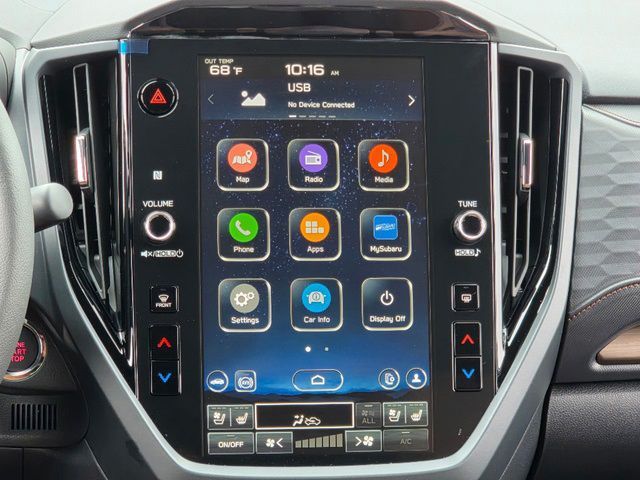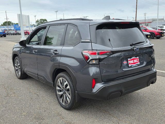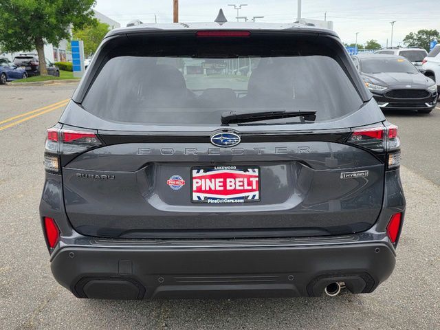 Stock Number: 3566Z, VIN Number: JF2SLSTD1SH416946, Style Name: AWD Touring Hybrid 4Dr Crossover, Make: Subaru, Model: Forester, Model Year: 2025, Type: Wagon, Vehicle Trim: Touring, Interior Color: Touring Brown, Exterior Color: Gray, Body Type: Wagon, MPG Automatic City: 35, MPG Automatic Highway: 34, Engine Description: 2.5L 4-Cylinder DOHC 16V, Fuel Type: Hybrid-Electric, Fuel Induction: DI, Valves Per Cylinder: 4, Aspiration: Naturally Aspirated, 4WD Type: Full Time, Transmission: Lineartronic CVT, Wheels Rims: Painted Aluminum Alloy, Drive Train Type: AWD, Independent Suspension: Four-Wheel, Stabilizer Bar: Front And Rear, Clock, Compass, External Temp, Heads up Display, Low Fuel Level, Tachometer, Front Wipers: Variable Intermittent, Rain Sensing, Privacy Glass, Rear Defogger, Rear Wiper: Intermittent, Auto-On In Reverse, With Washer, Sunroof: One-Touch Open/Close, Sliding Sunshade, Anti-Trapping, Power Panoramic, Antenna Type: Diversity, Mast, Audio System: AM/FM, HD Radio, Voice Operated, Touch Screen Display, Premium Brand: Harman/Kardon, Speakers: 10, Drivers: Heated, Drivers Height: Power, Drivers Lumbar: Power, Drivers Power: 10, Drivers Ventilated, Passenger: Heated, Passenger Height: Power, Passenger Power: 8, Passenger Ventilated, Seating Capacity: 5, Front Seat Type: Bucket, Upholstery: Leather-Trimmed, Center Armrest, Folding: Split, One-Touch Fold Flat, Heated, Center Console: Front Console With Armrest And Storage, Illuminated, Organizer Tray, Cupholders: Front, Rear, Overhead Console: Front, Power Outlets: 12V Cargo Area, 12V Front, USB Front, USB-C Front, USB Rear, USB-C Rear, Seatback Storage, Steering Adjustment: Tilt And Telescopic, Steering Power: Variable/Speed-Proportional, Steering Wheel Control: Audio, Cruise Control, Phone, Multi-Function, Paddle Shifter, Voice Control, Auto Dimming Mirrors, Power Mirrors, Reverse Tilt Mirror, Power Door Locks: Anti-Lockout, Auto-Locking, Windows: Power Windows, Navigation System: Touch Screen Display, Voice Operated, Memory Card, Satellite Communication: Voice Guided Directions, Memory Features Exterior Mirrors, Memory Features Number of Drivers: 2 Driver, Air Conditioning: Automatic Climate Control, Air Filtration, Trunk Lights, Center Console Trim: Leatherette, Dash Trim: Leatherette, Door Trim: Leatherette, Mats: Rear, Front, Reading Lights: Front, Rear, Shift Knob: Leather, Steering Wheel Trim: Leatherette, Vanity Mirrors: Dual Illuminating, Bumpers: Body-Color, NHTSA Passenger Grade: Excellent, NHTSA Driver Grade: Excellent, NHTSA Side Impact Front Grade: Excellent, NHTSA Side Impact Back Grade: Excellent, NHTSA Roll Over Resistance Rating: Good, ABS: 4-Wheel, Anti Theft System: Alarm, Vehicle Immobilizer, Brake Assist, Safety Locks, Cornering Lights, Daytime Running Light, Fog Lights: LED, Headlights Auto Delay, Front Headrests: 2, Adjustable, Rear Headrests: 3, Adjustable, Safety Signal Mirrors, Safety Stability Control, Driver and Passenger Airbag, Side Airbag, Stability Control, Front Head Room: 40.0 Inches, Front Hip Room: 54.7 Inches, Front Shoulder Room: 57.7 Inches, Front Leg Room: 43.3 Inches, Rear Head Room: 37.7 Inches, Rear Hip Room: 53.7 Inches, Rear Leg Room: 39.4 Inches, Rear Shoulder Room: 56.7 Inches, Luggage Capacity: 27.5 Cu.Ft., Maximum Seating: 5, Length: 183.3 Inches, Width: 81.2 Inches, Height: 68.1 Inches, Wheelbase: 105.1 Inches, Ground Clearance: 8.7 Inches, Curb Weight: 3946 Lbs.